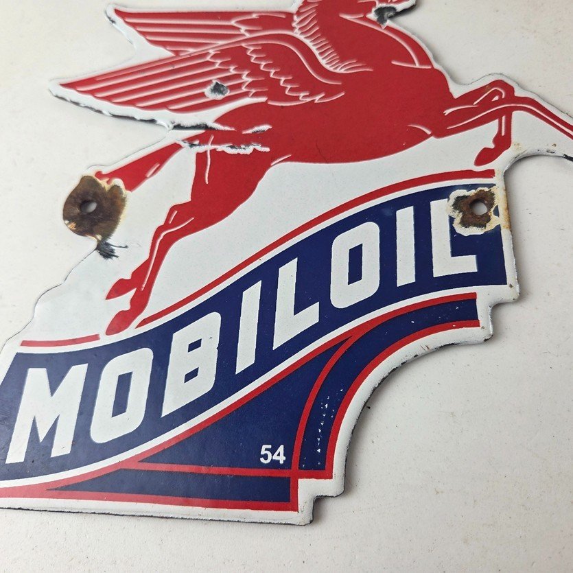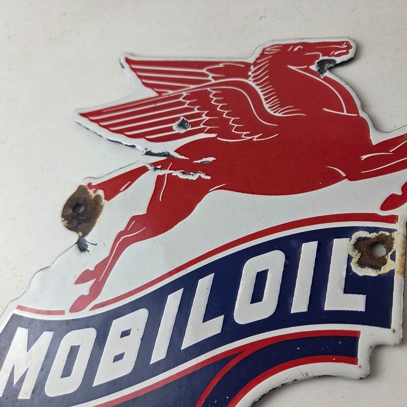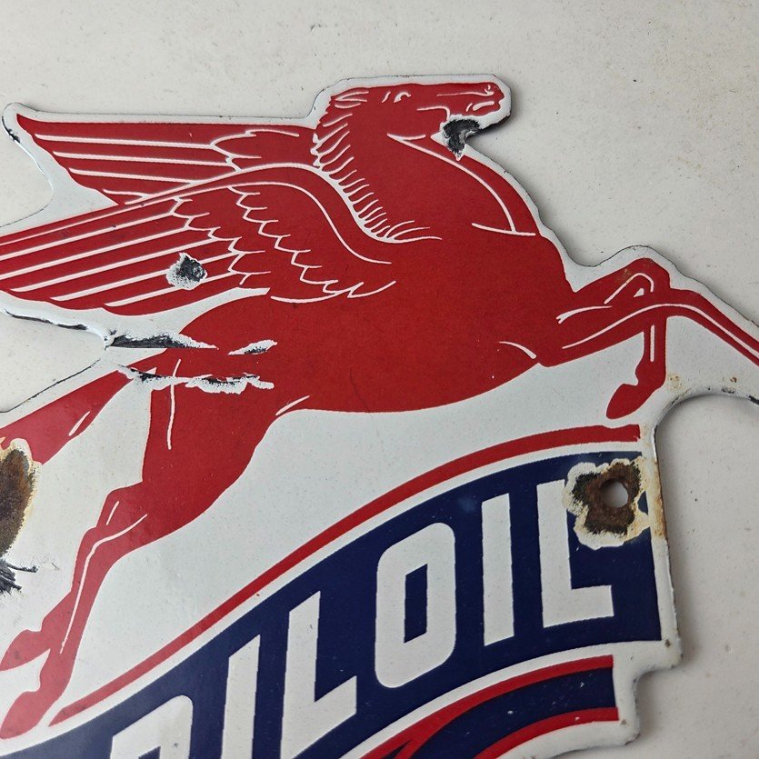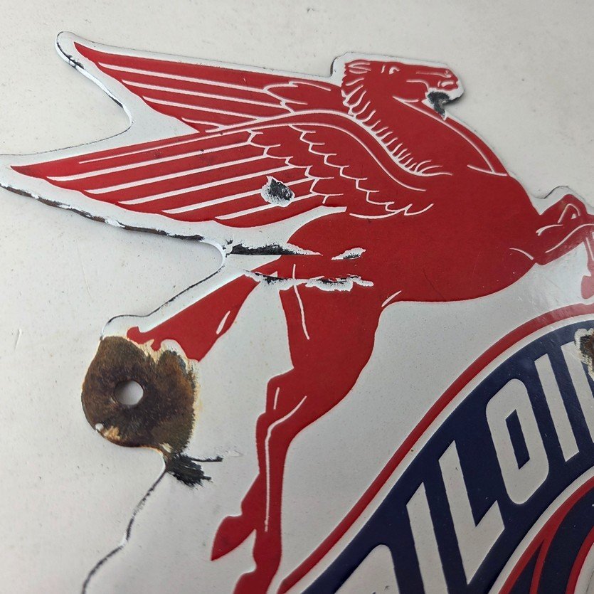 Vintage Mobil Gasoline Sign – Pegasus Motor Oil Gas Pump Porcelain Sign