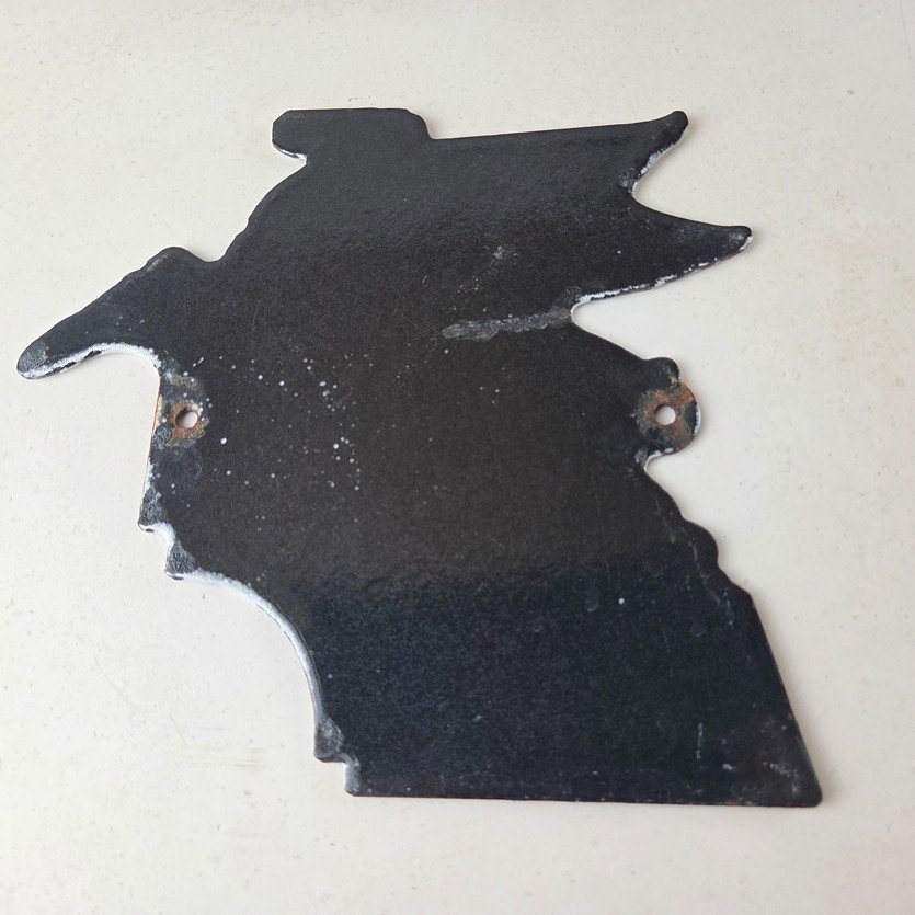 This vintage Mobil Gasoline sign is a must-have for any collector of gas and oil memorabilia. The sign features the iconic Pegasus / Peggy advertising graphic and is made of porcelain on both sides. Measuring large in size, 7 3/4″ by 8″, it is perfect for display in a man cave or garage.