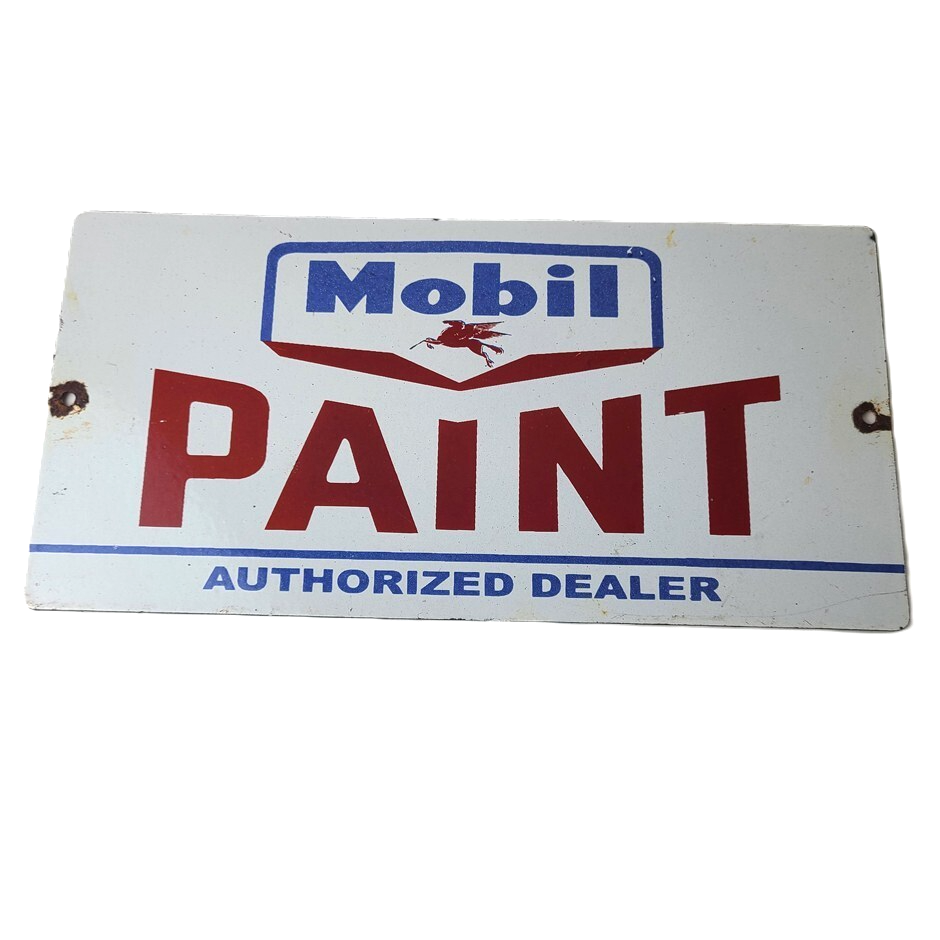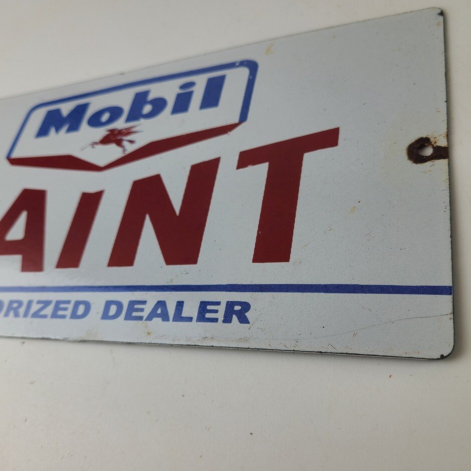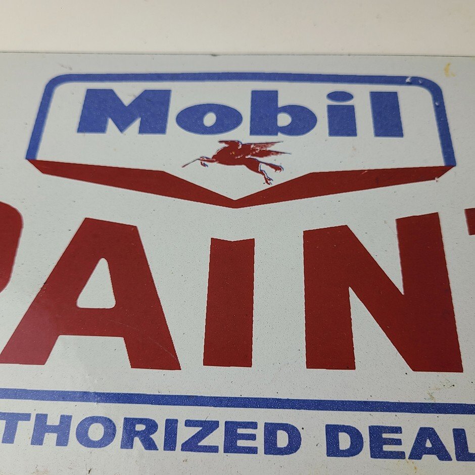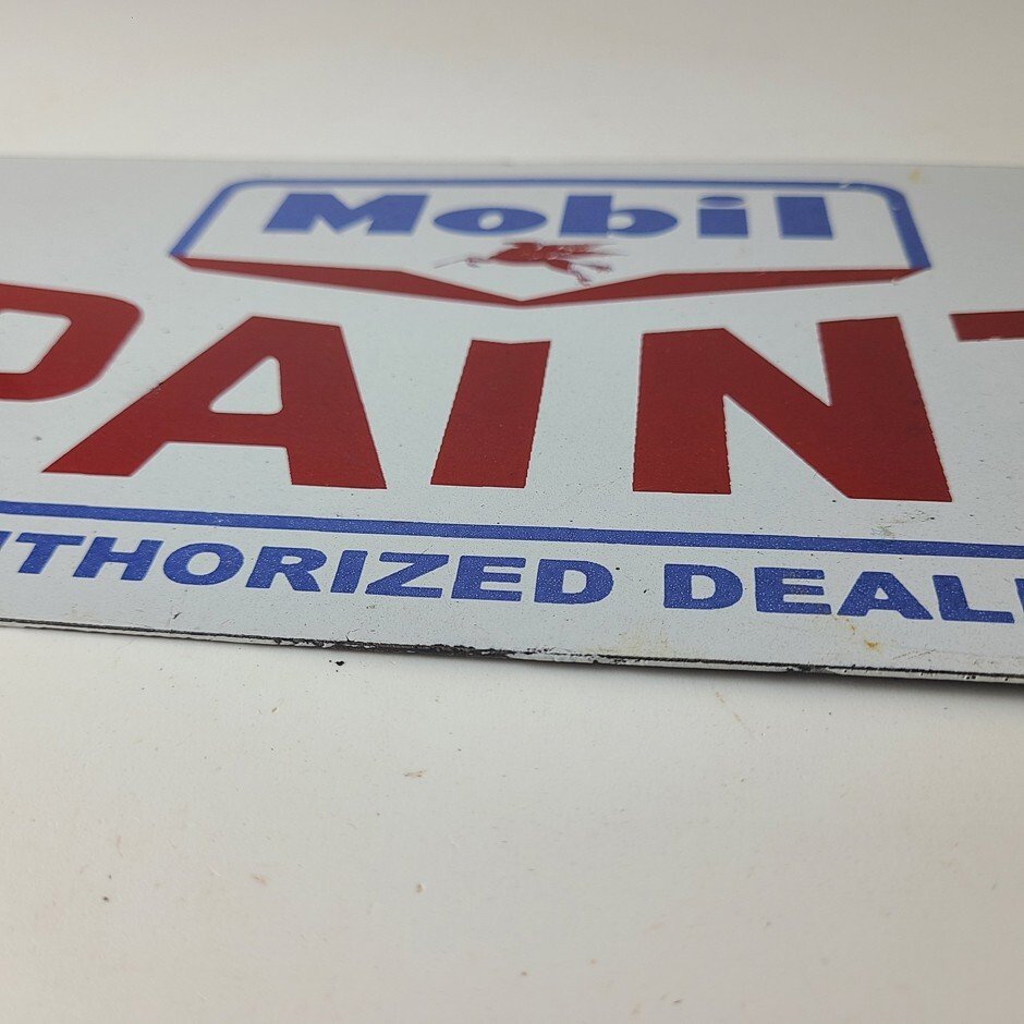 This vintage Mobil oil porcelain sign features the iconic Mobil Pegasus in the center and is made of durable porcelain, ensuring it will withstand the test of time. The sign measures 12″ x 6″ and boasts vibrant red and blue colors that will catch the eye of any collector or admirer.