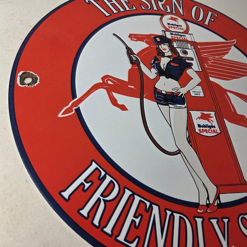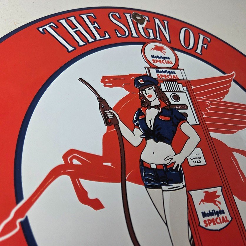 - Vintage Mobil porcelain sign.