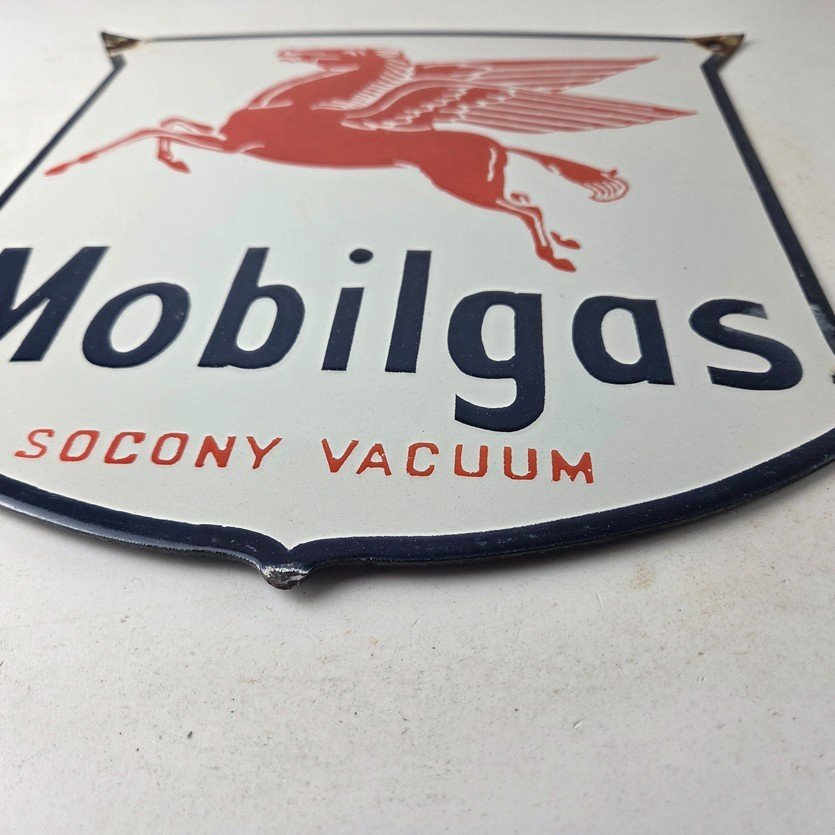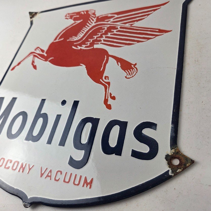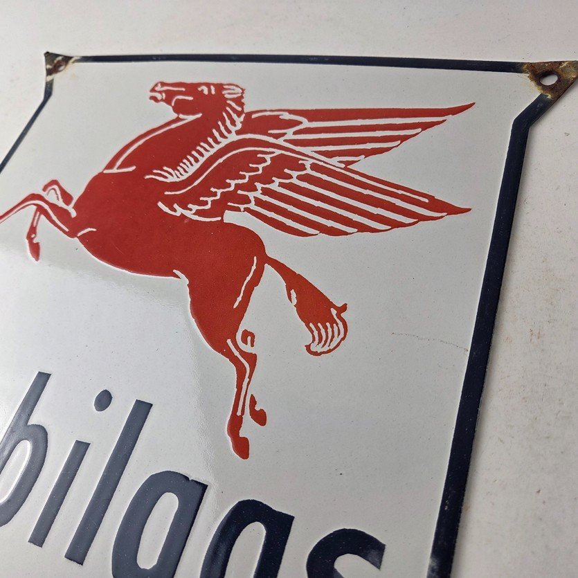 Vintage Mobilgas Sign – Gasoline Advertising Gas Pump Station Porcelain Sign