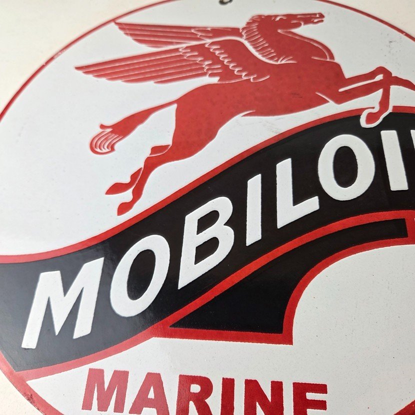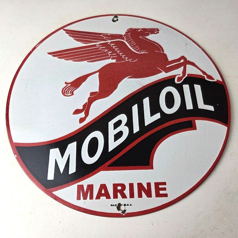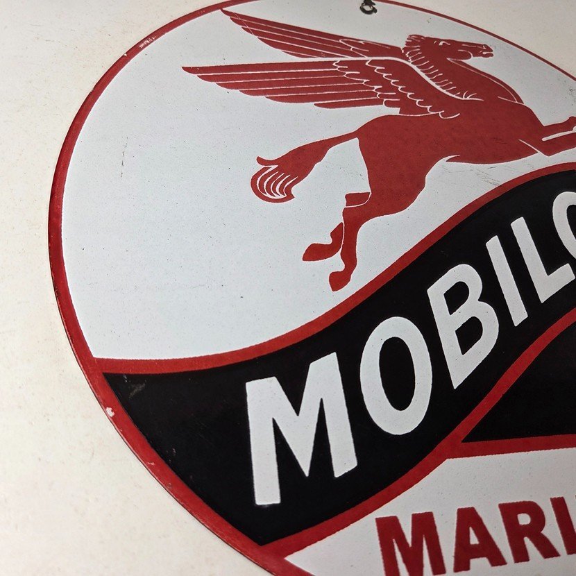 Vintage Mobiloil Porcelain Sign – Marine Pegasus Oil Advertising Sign