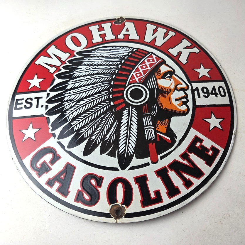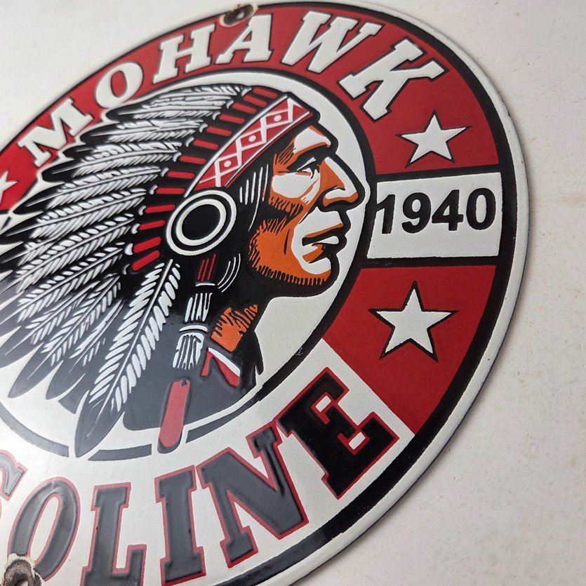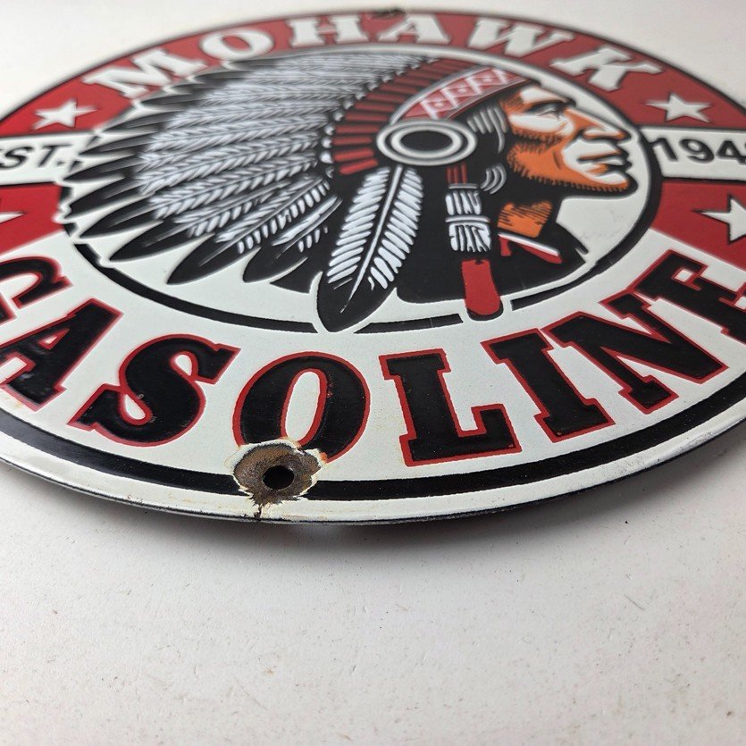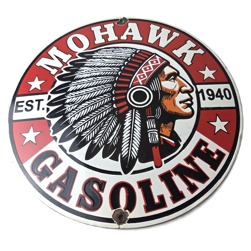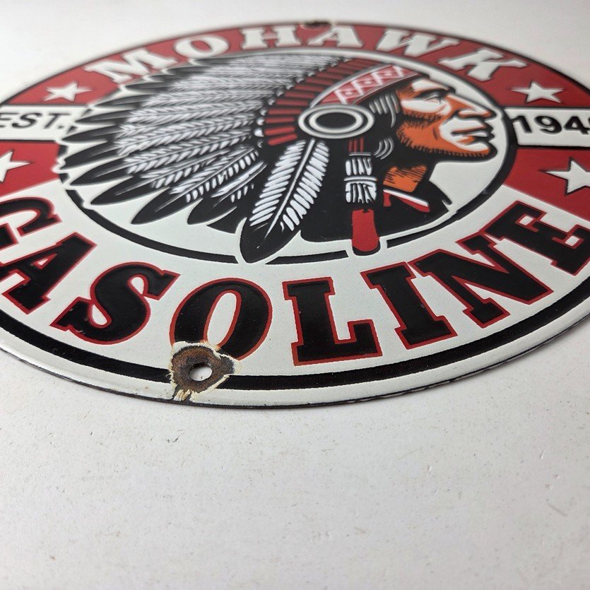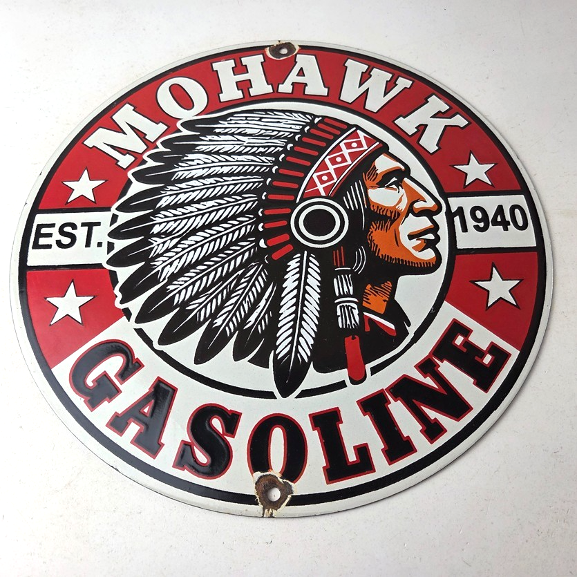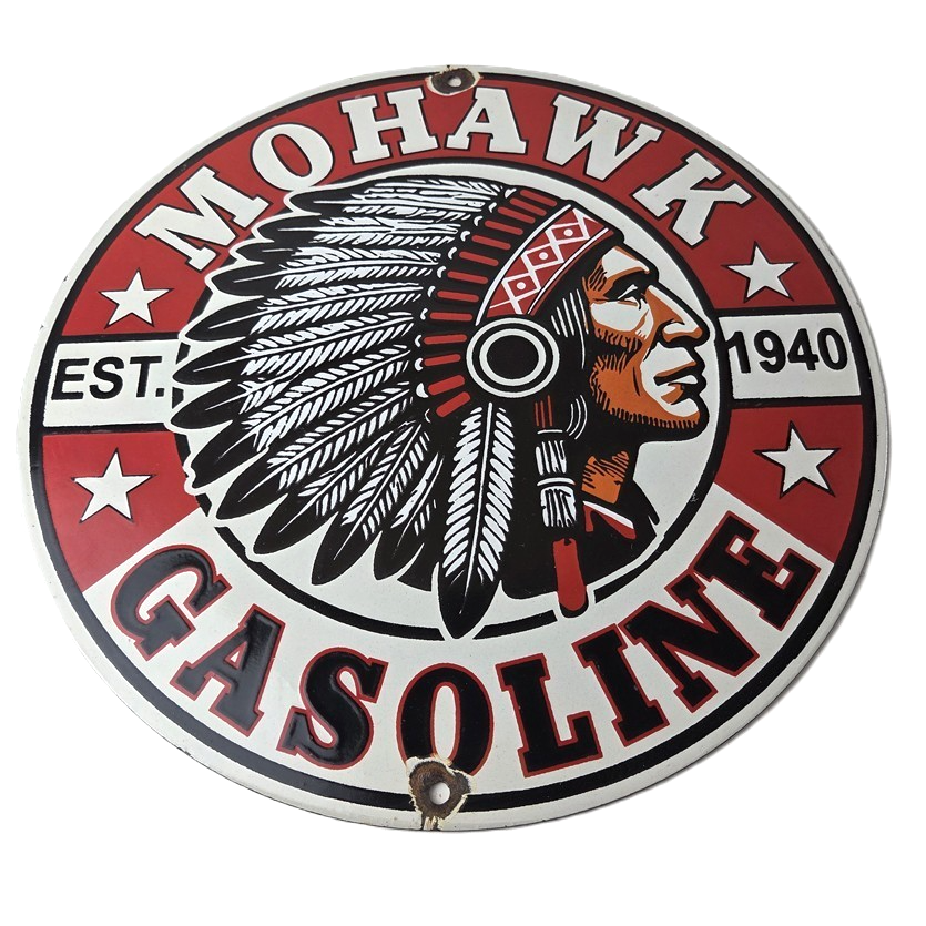 - Vintage Mohawk Gasoline porcelain sign.