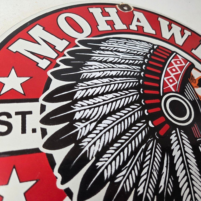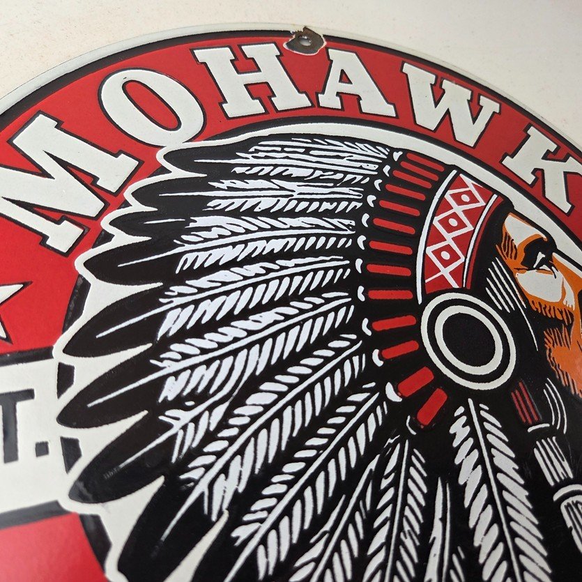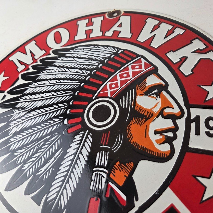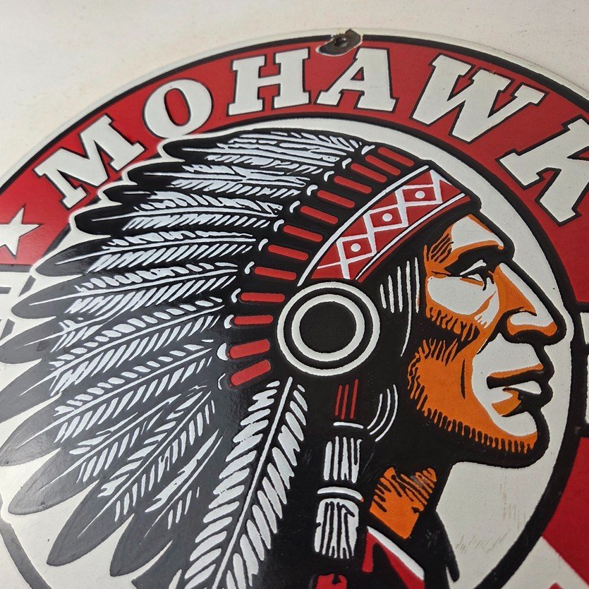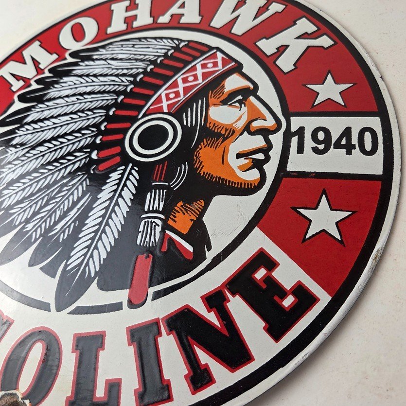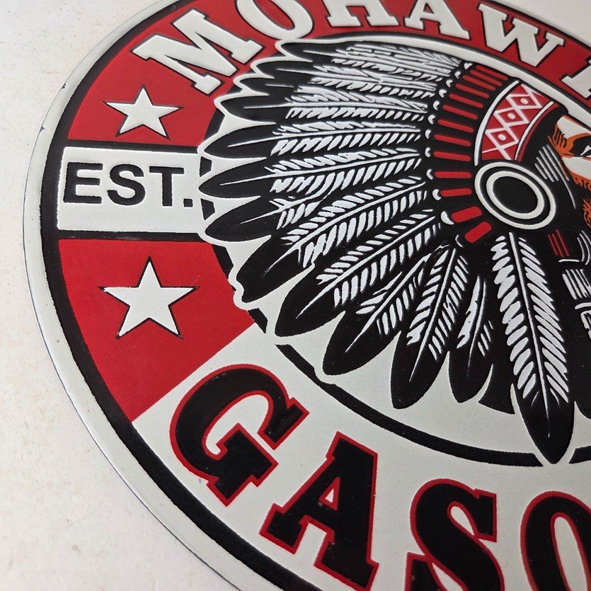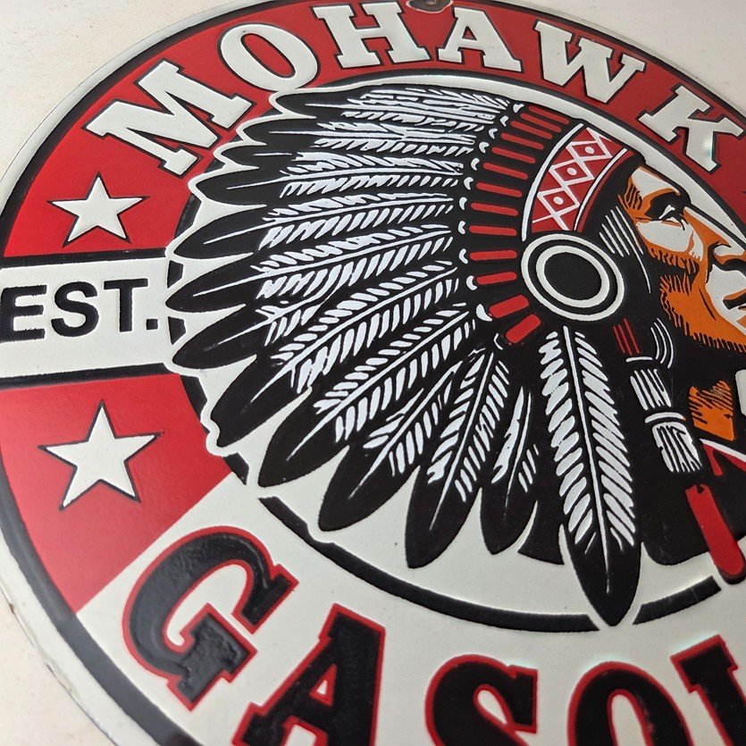 - Vintage Mohawk Gasoline porcelain sign.