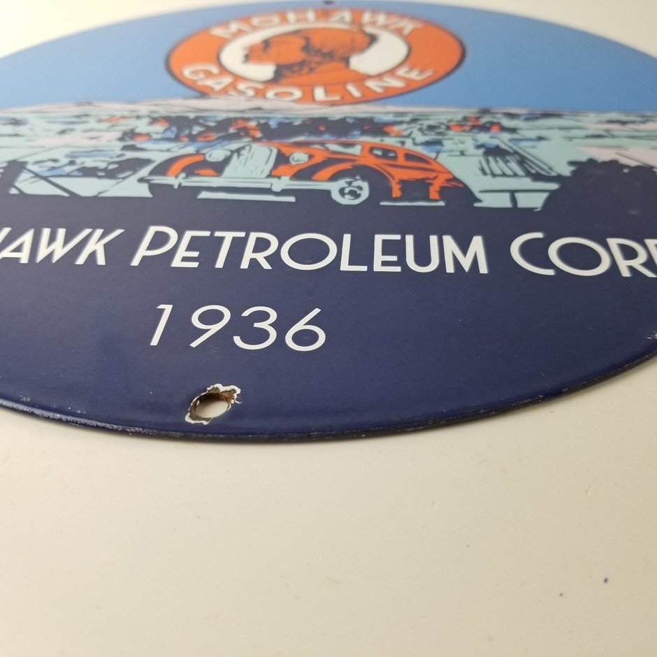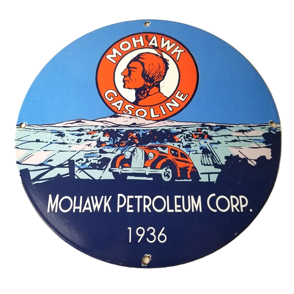 Vintage Mohawk Gasoline Sign – Porcelain American Indian Gas Motor Oil Pump Sign
