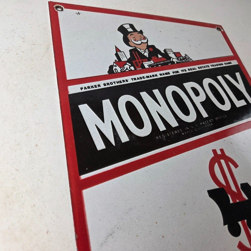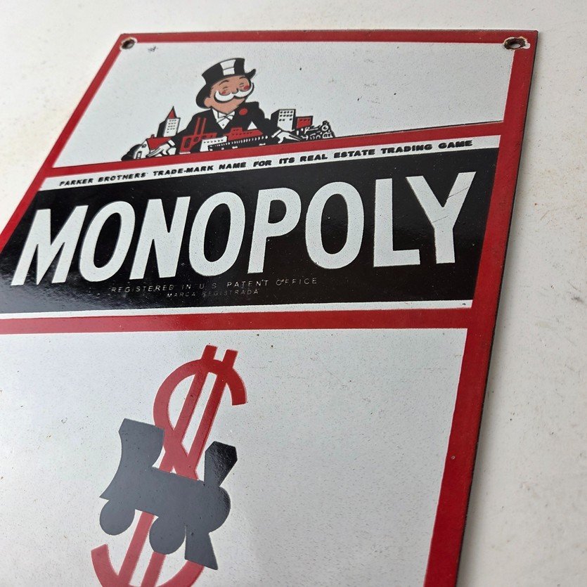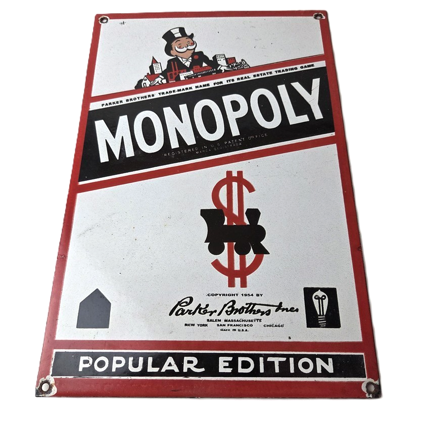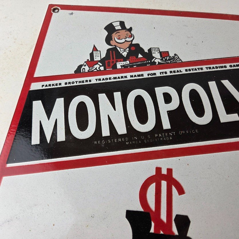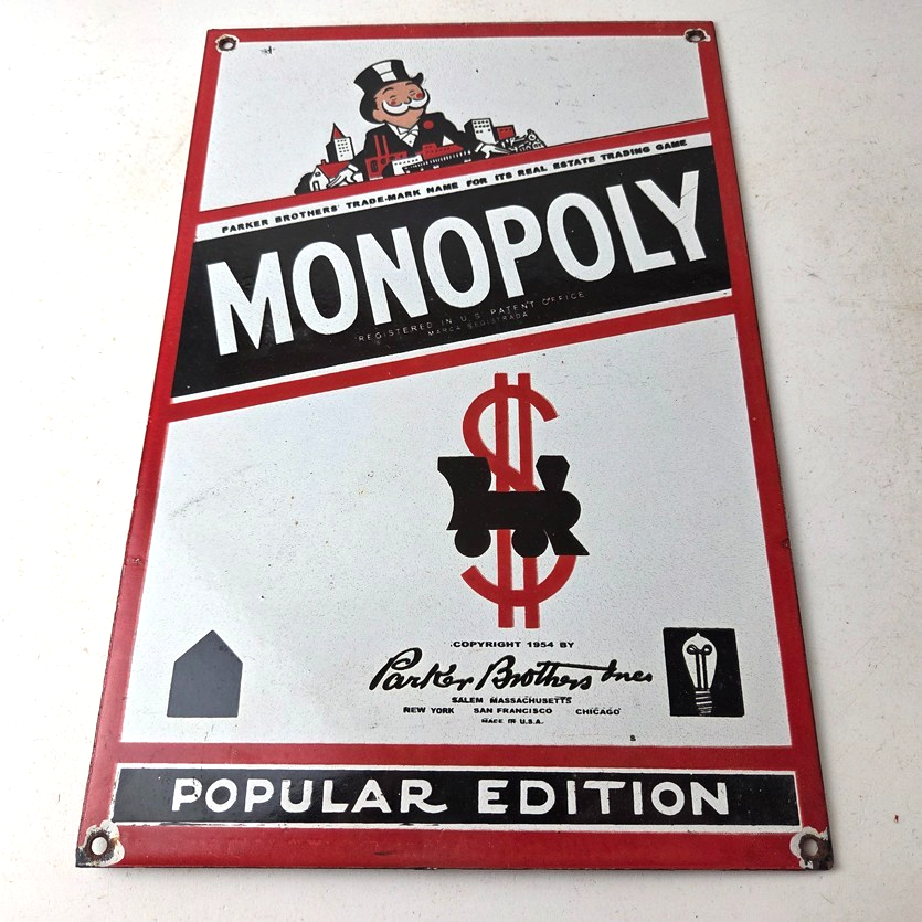 Vintage Monopoly Sign – Board Game Porcelain Gas Pump Monopoly Man Sign