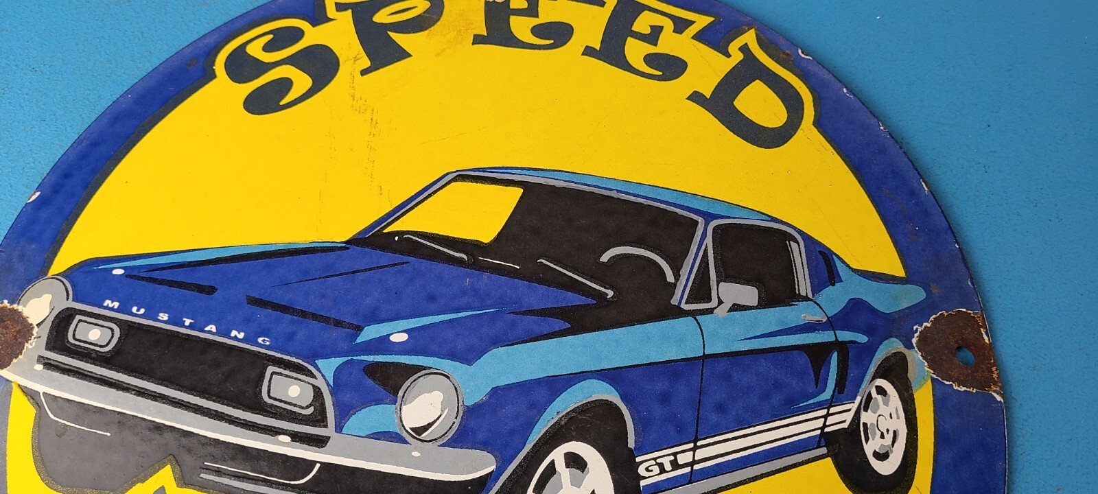 Vintage Moon Eyes Sign – Speed Drag Race Ford Mustang Porcelain Gas Pump Sign