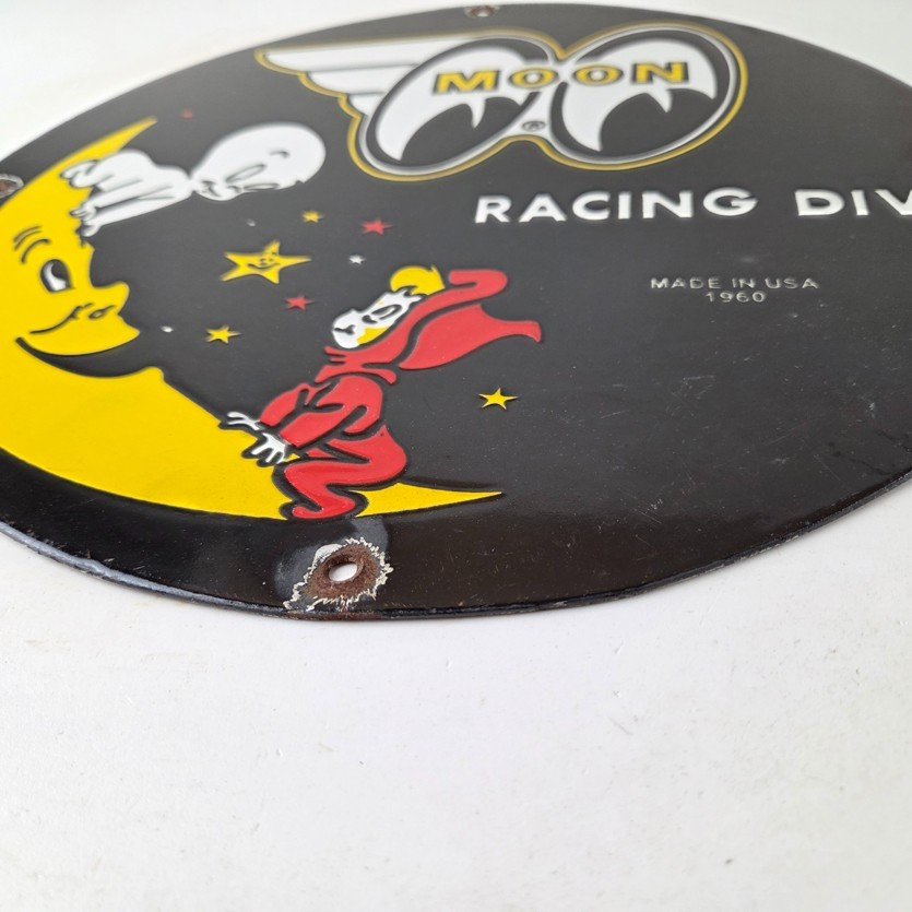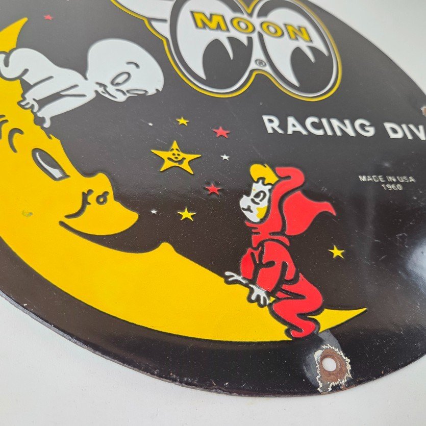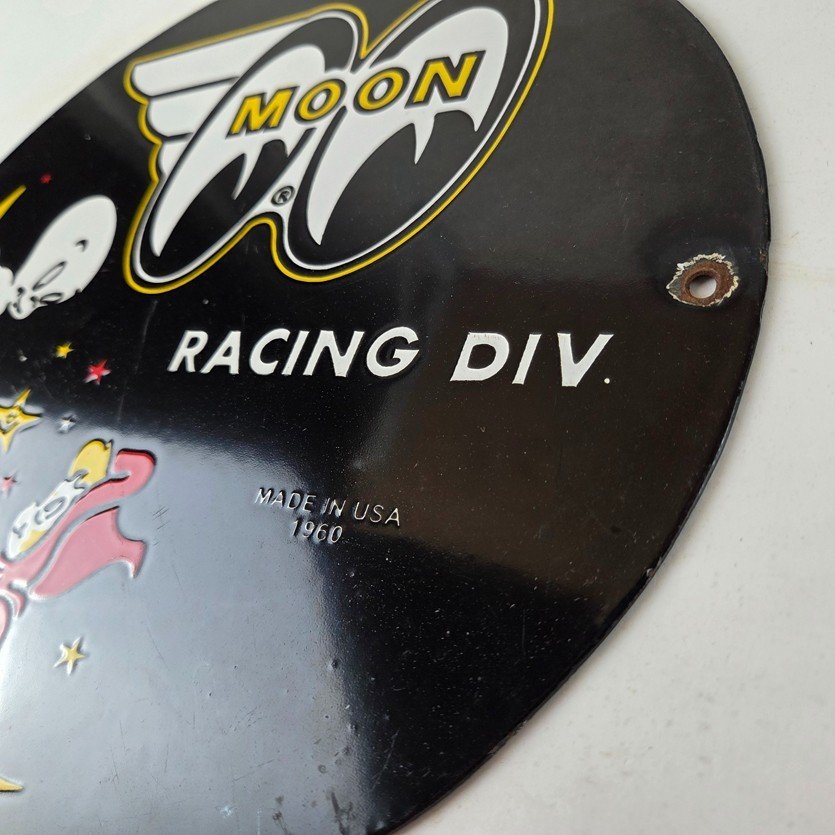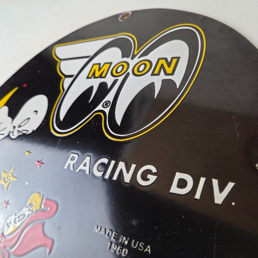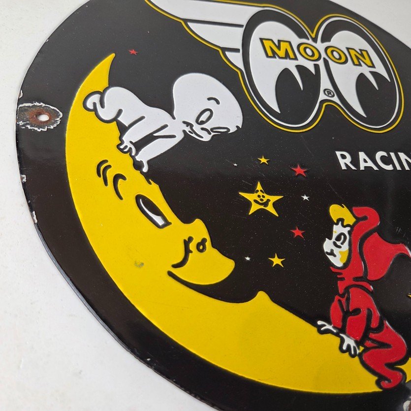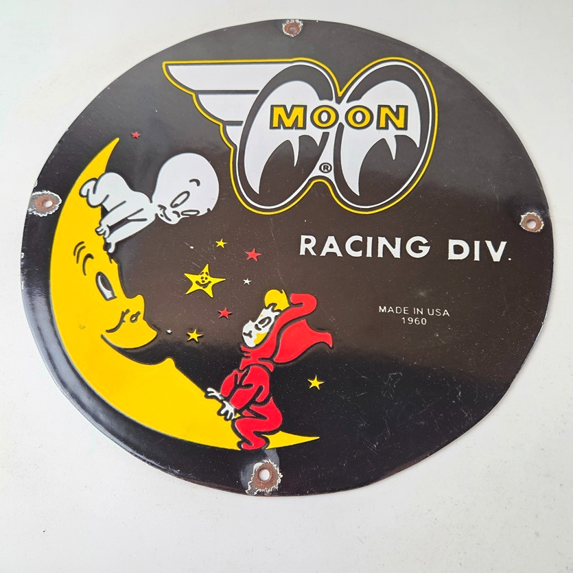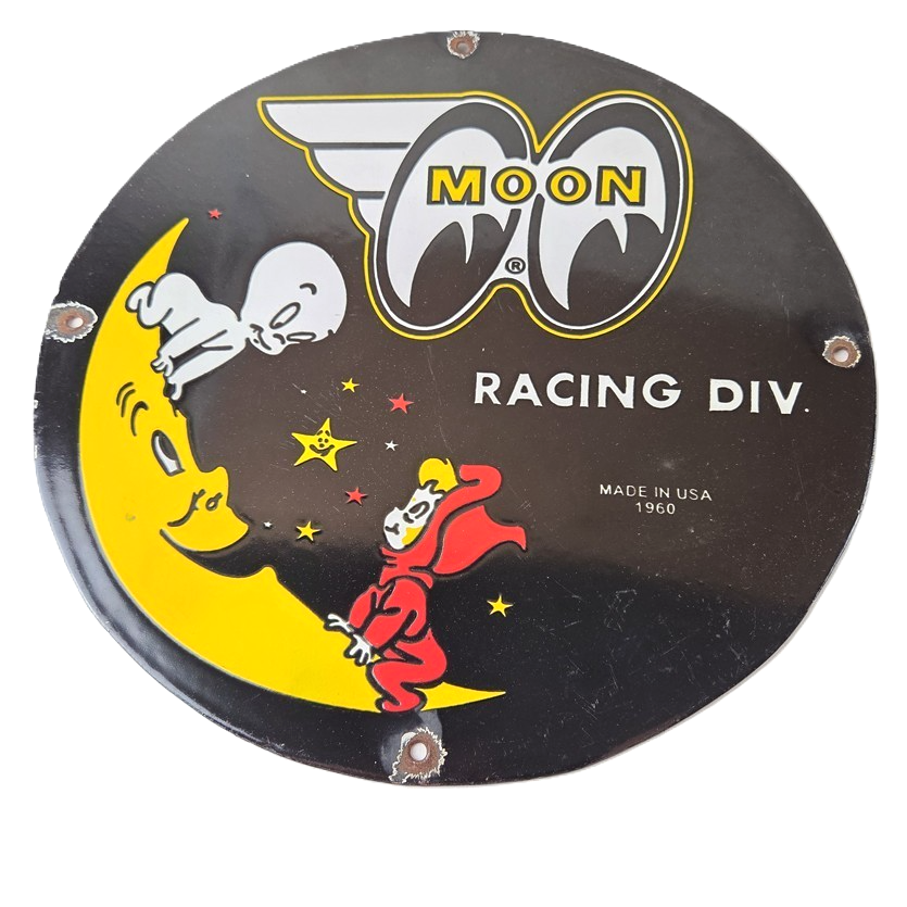 Vintage Moon Eyes Sign – Speed Equipment Casper Auto Porcelain Gas Pump Sign
