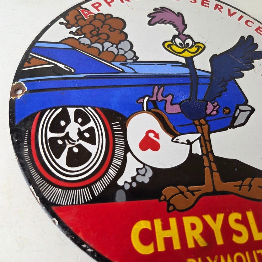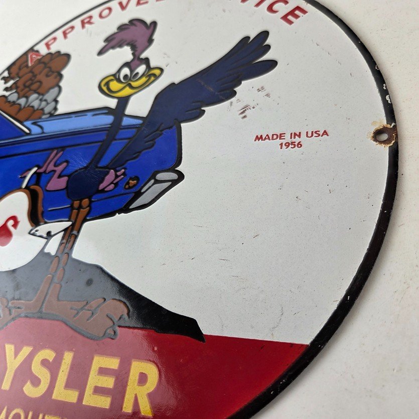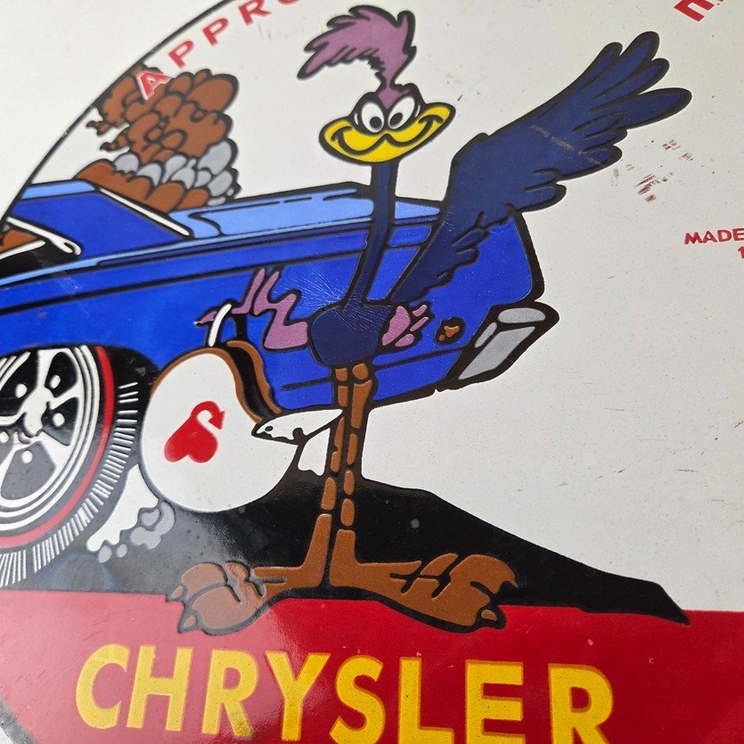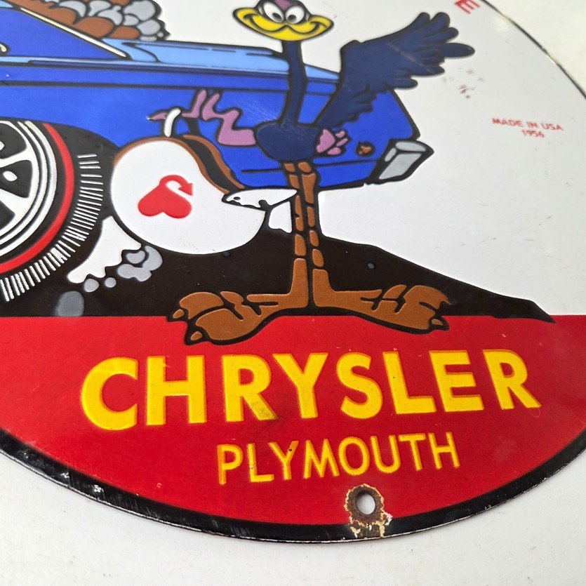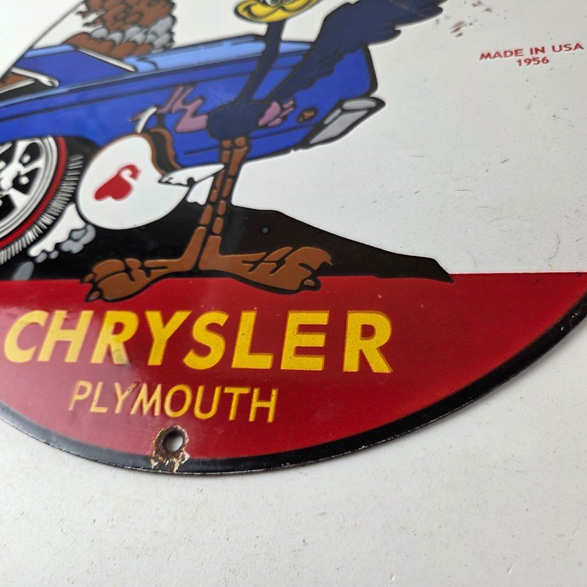 Vintage Road Runner Mopar Plymouth Porcelain Sign.