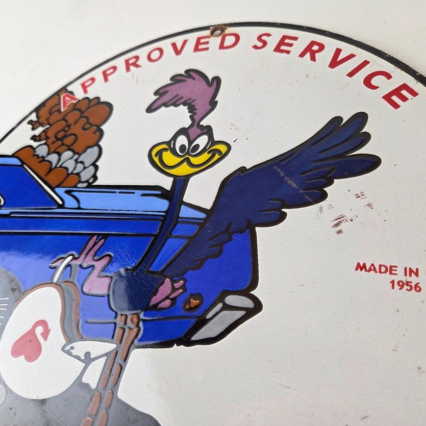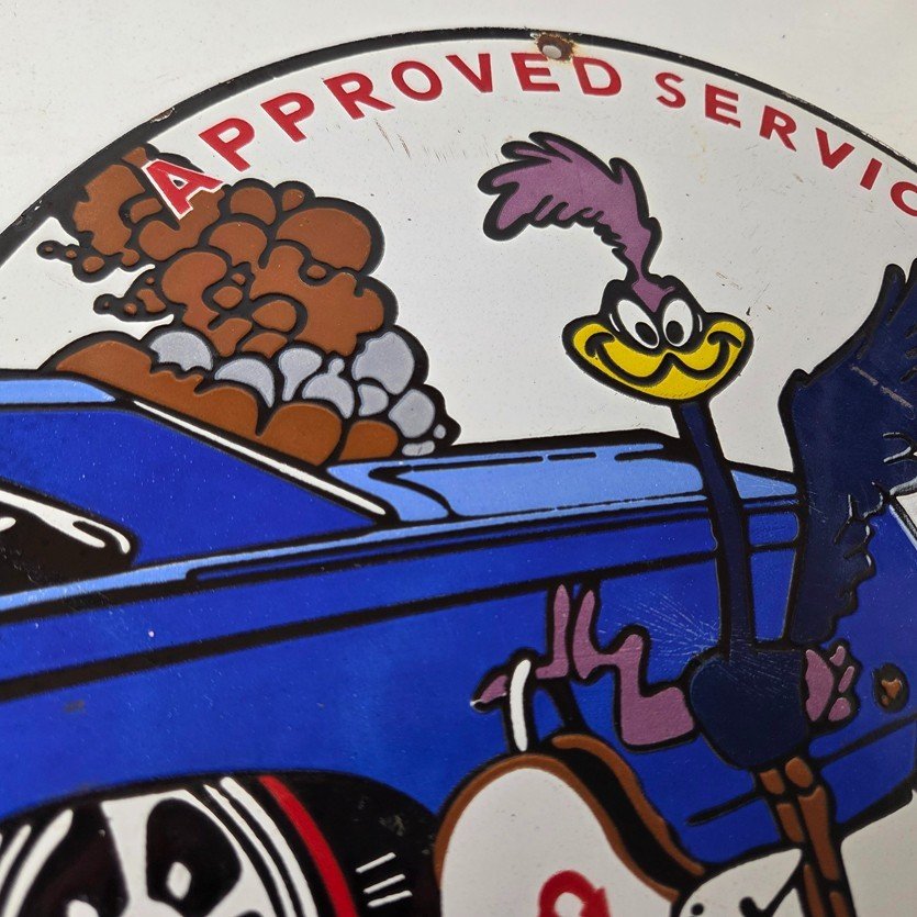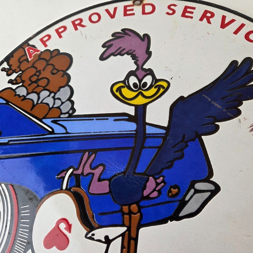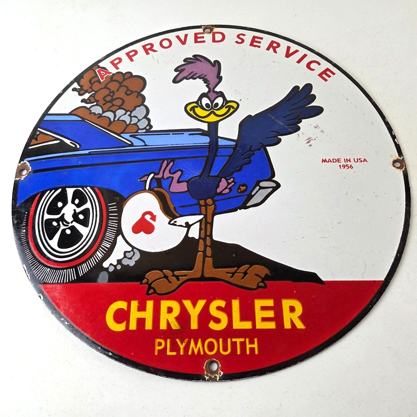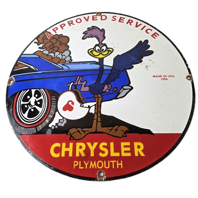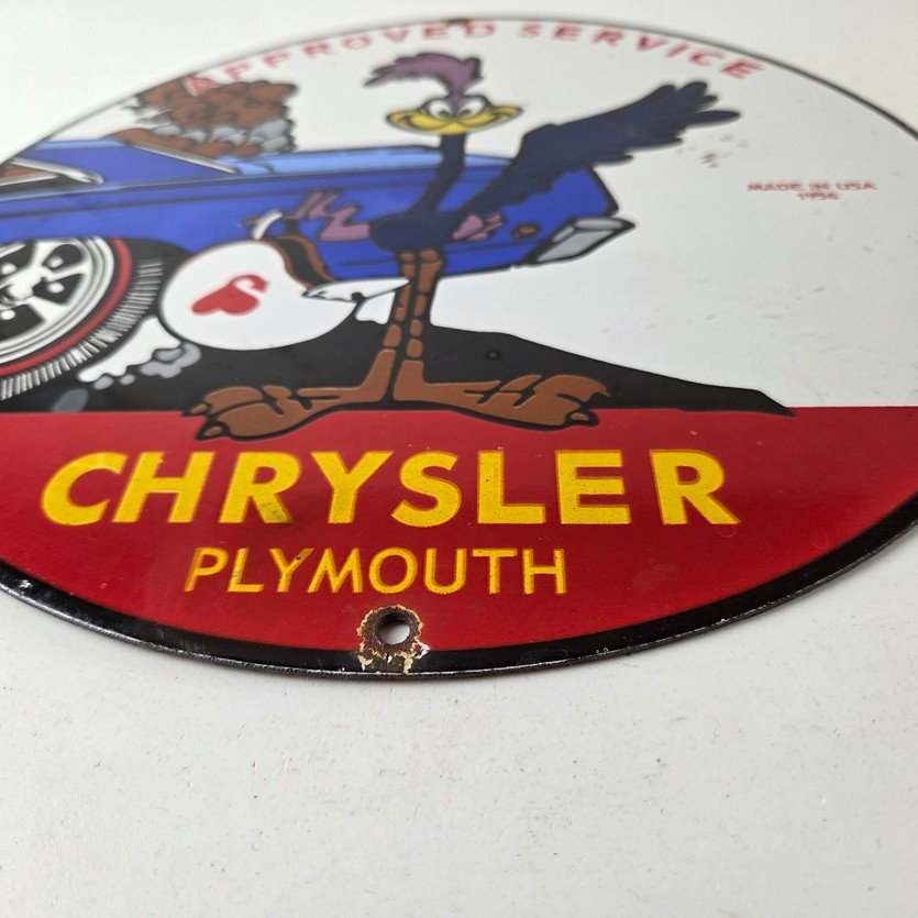 Vintage Road Runner Mopar Plymouth Porcelain Sign.