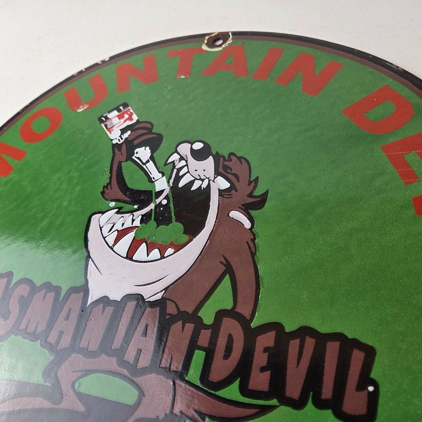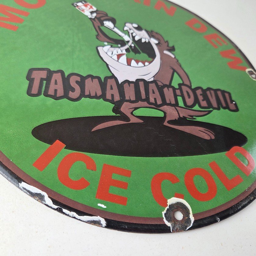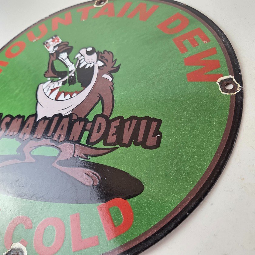 Vintage Mountain Dew Sign – Ice Cold Gas Service Pump Soda Bottle Porcelain Sign