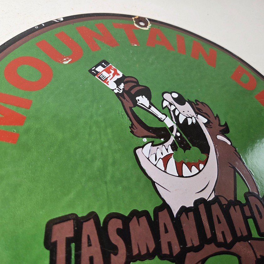 For sale is a vintage Mountain Dew soda porcelain sign.