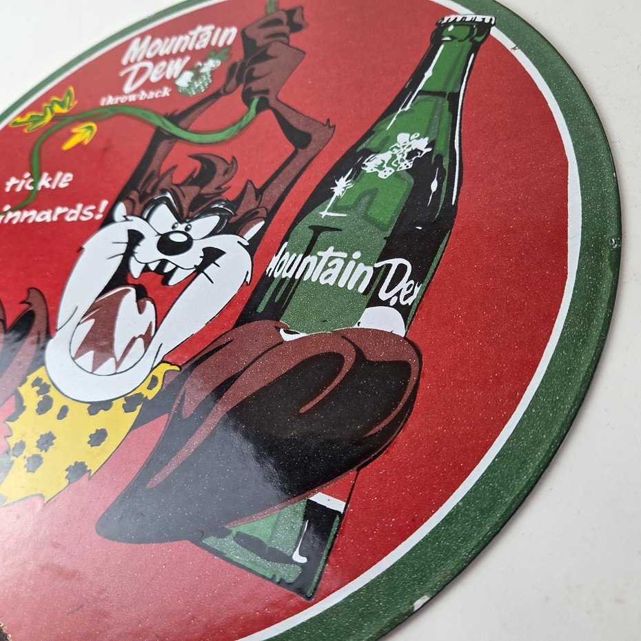 For sale is a vintage Mountain Dew soda porcelain sign.