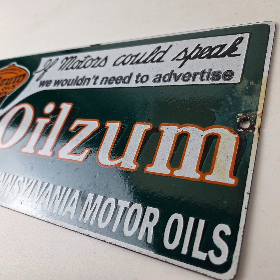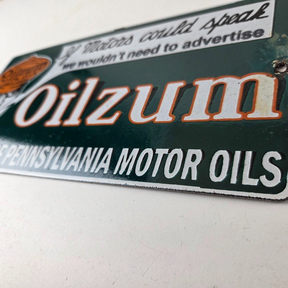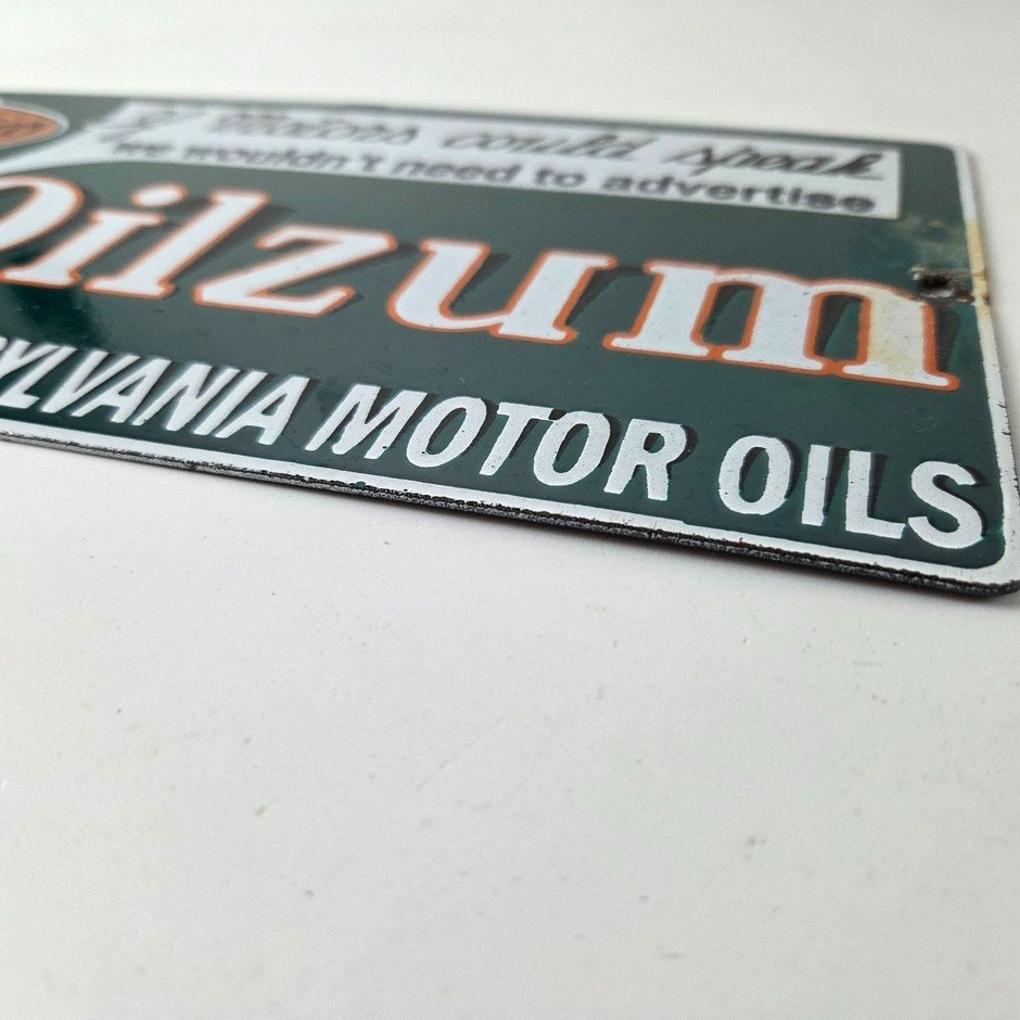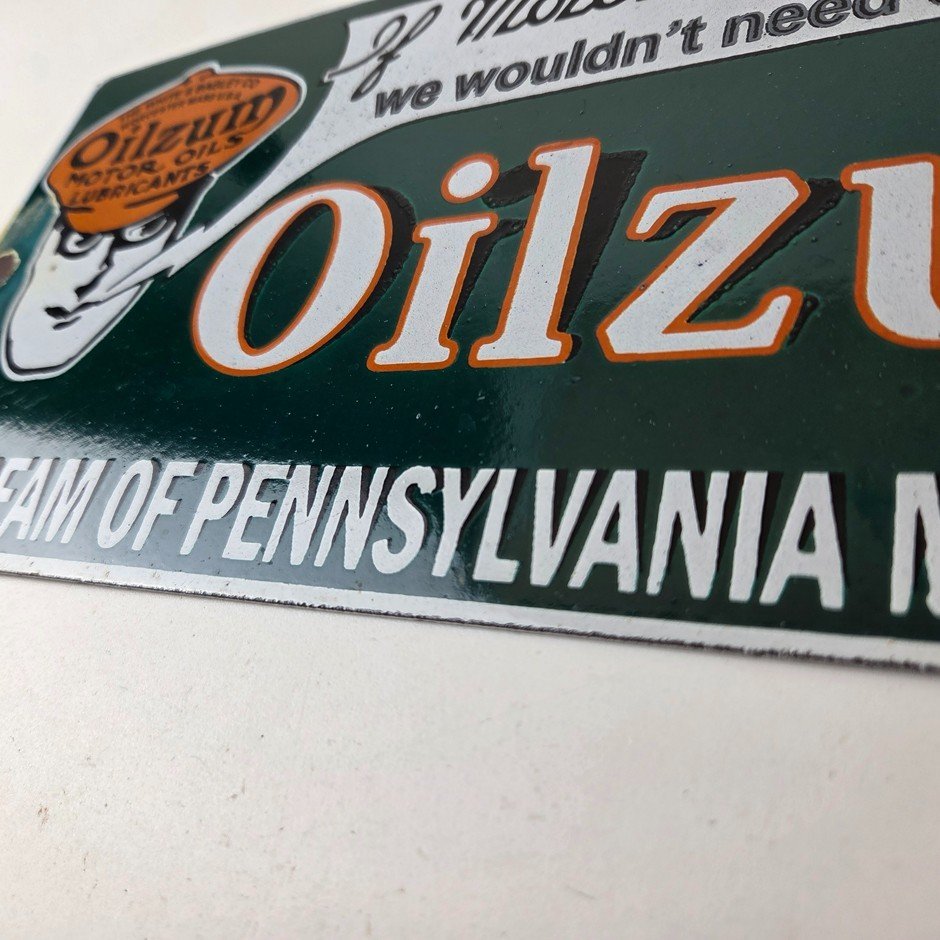 Vintage Oilzum Motor Oils Sign – Gasoline Lubrication Porcelain Gas Pump Sign