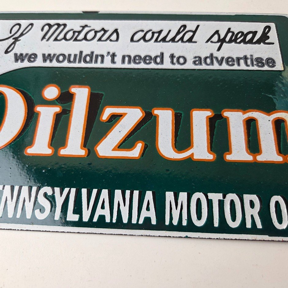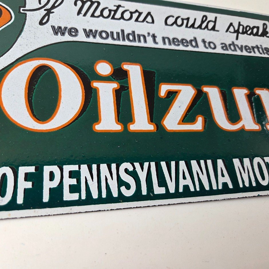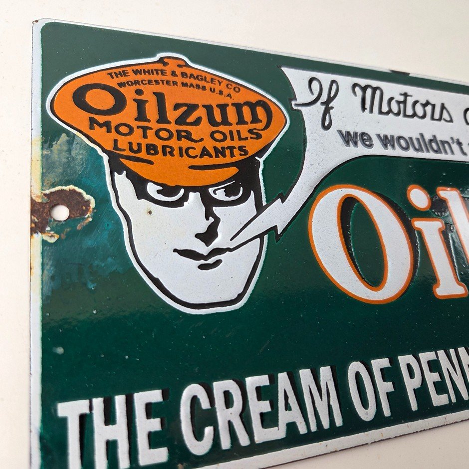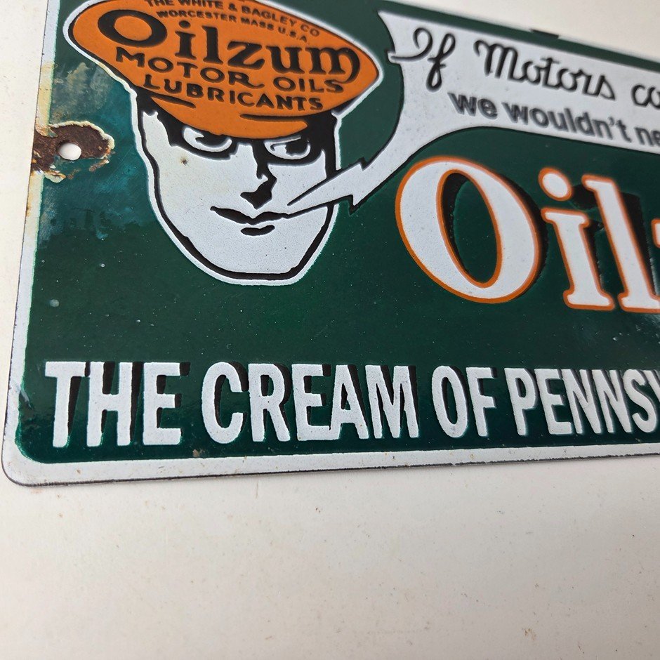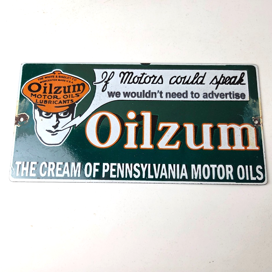 Vintage Oilzum Motor Oils Sign – Gasoline Lubrication Porcelain Gas Pump Sign