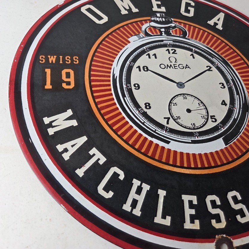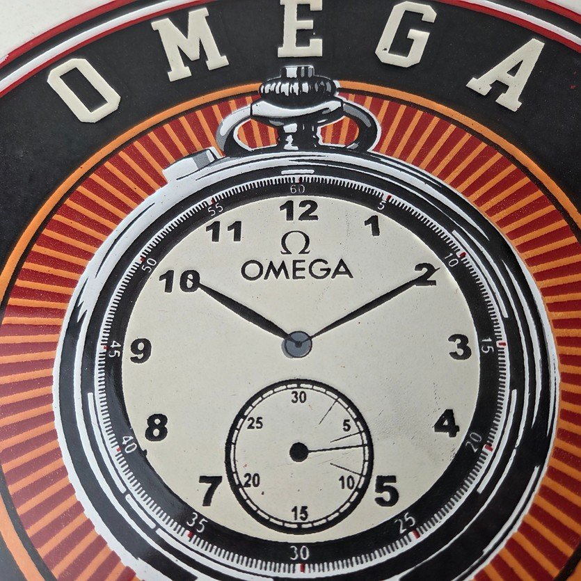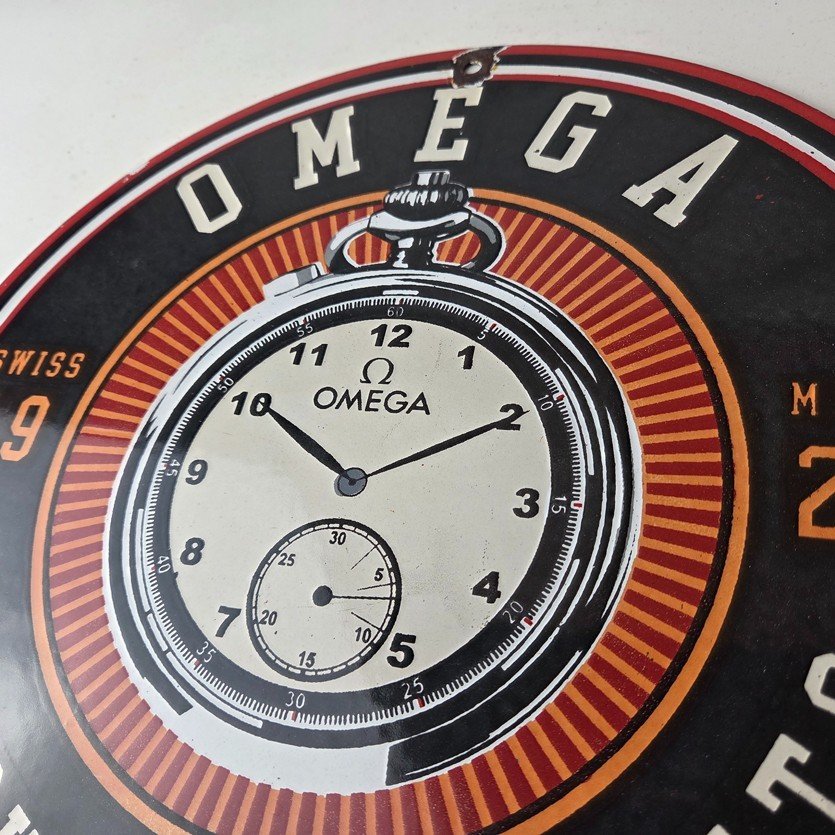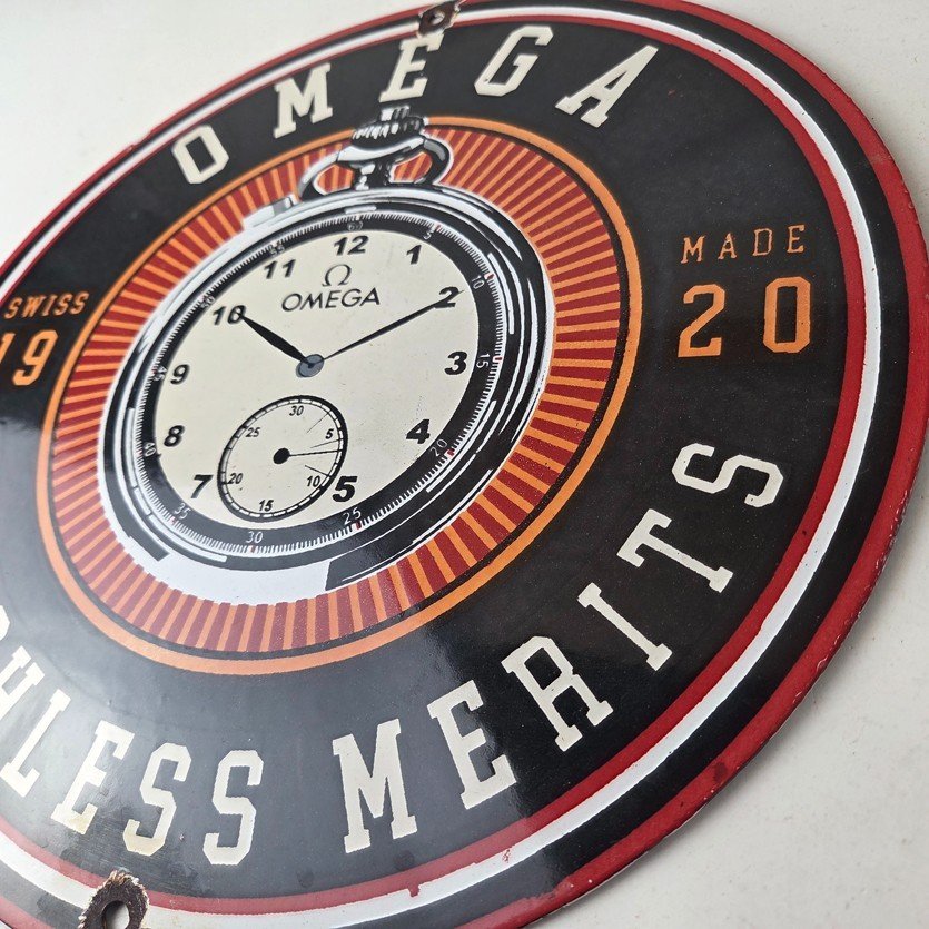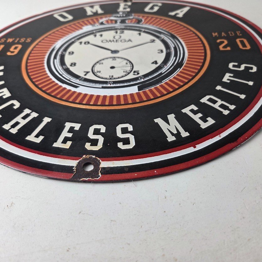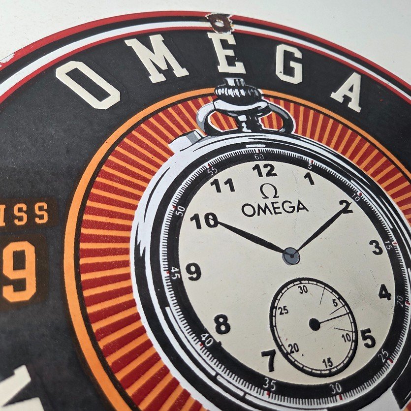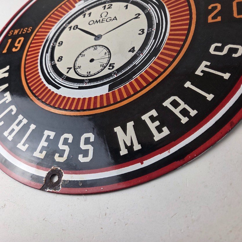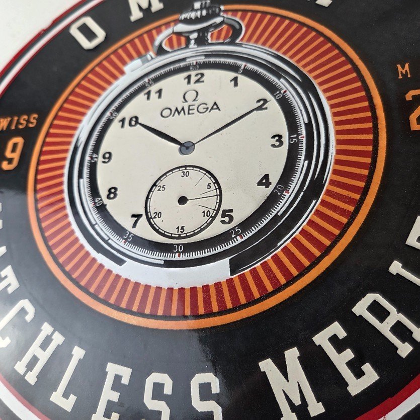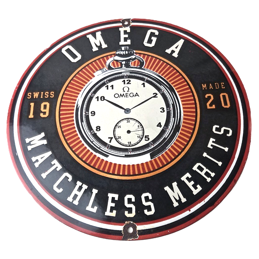 Vintage Omega Watches Sign – Matchless Merits Store Display Gas Porcelain Sign