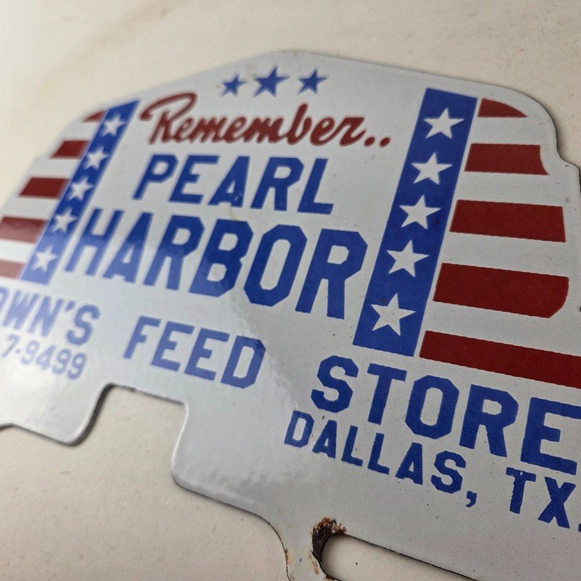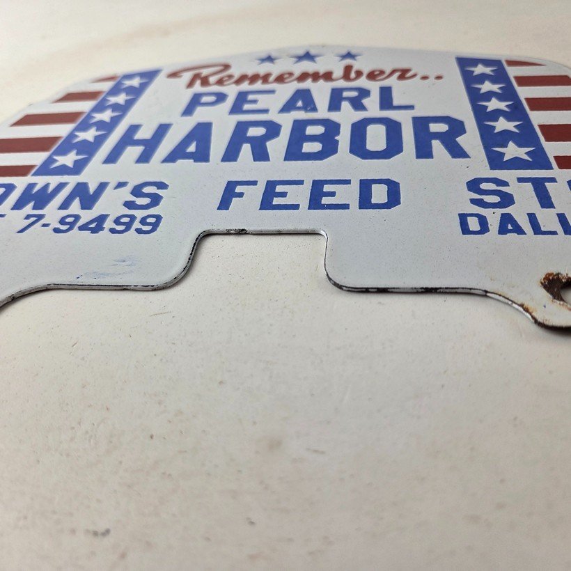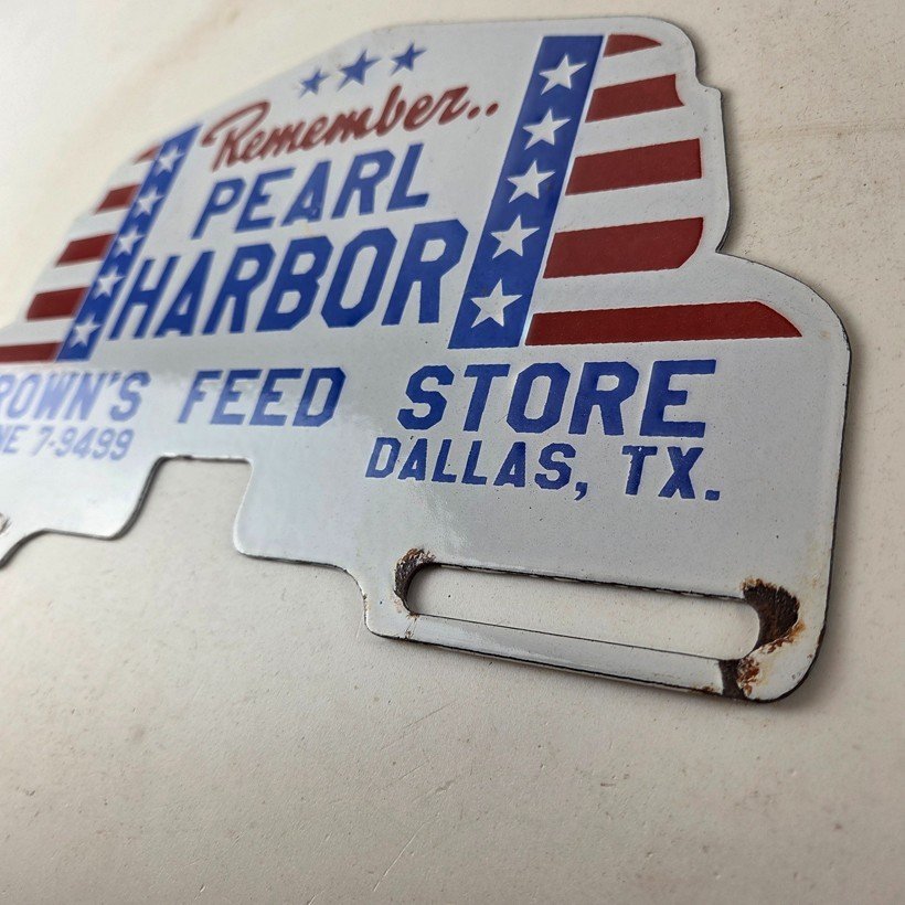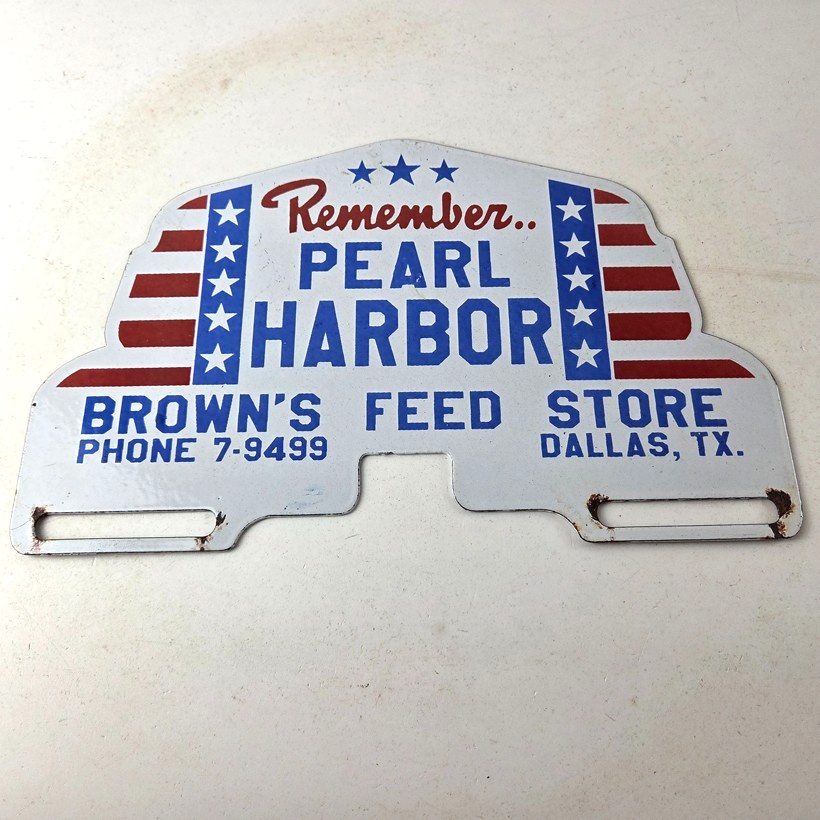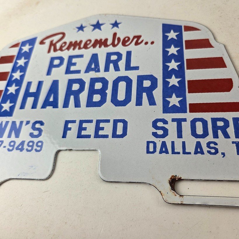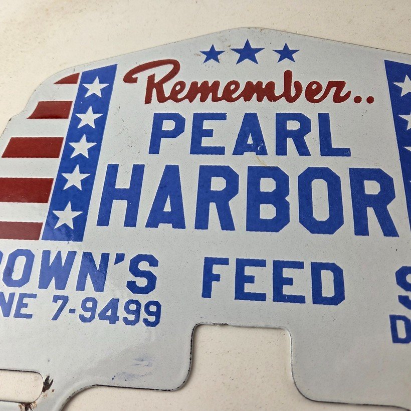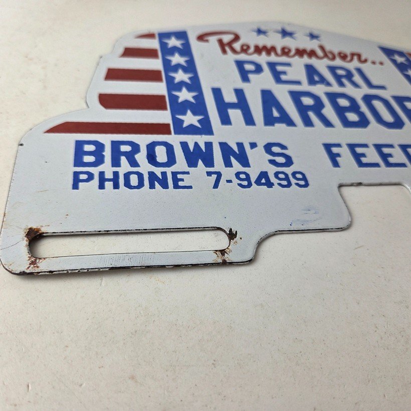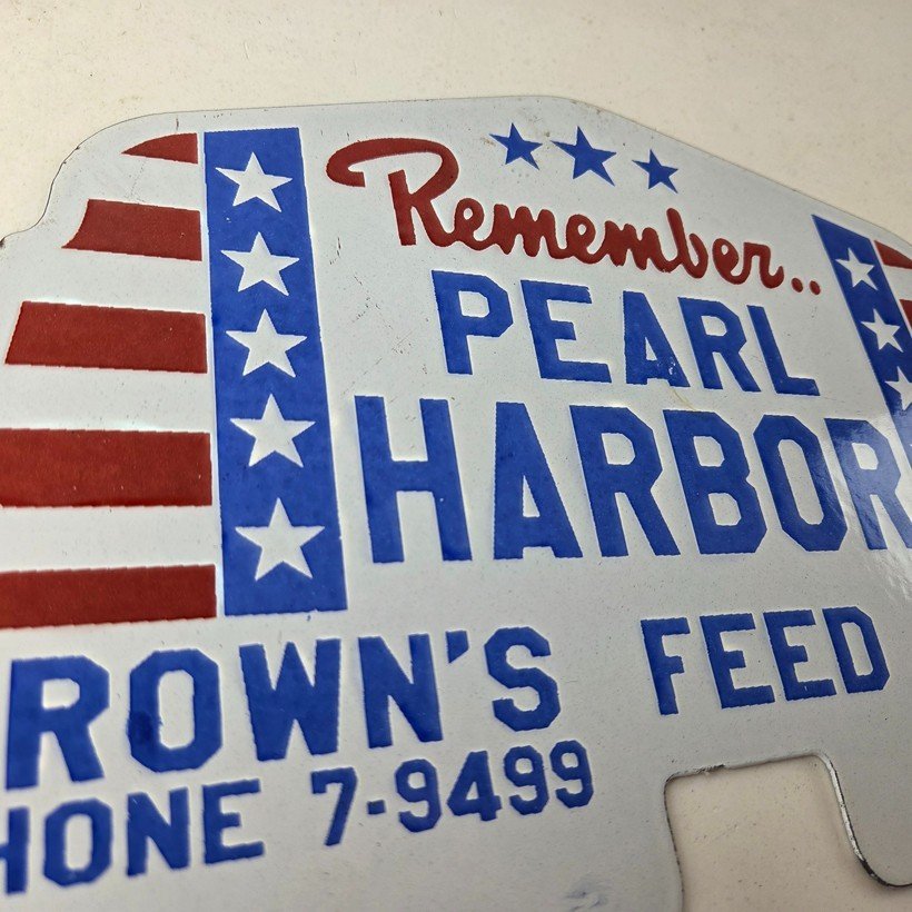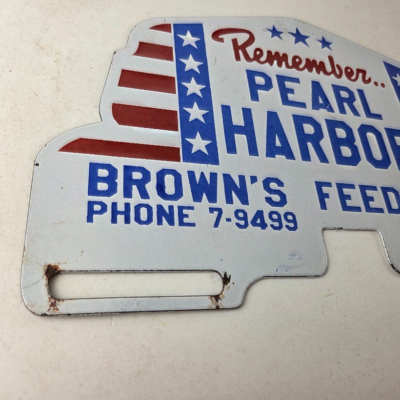 Vintage Pearl Harbor License Plate Topper – Feed Sign Ad on Automobile Topper