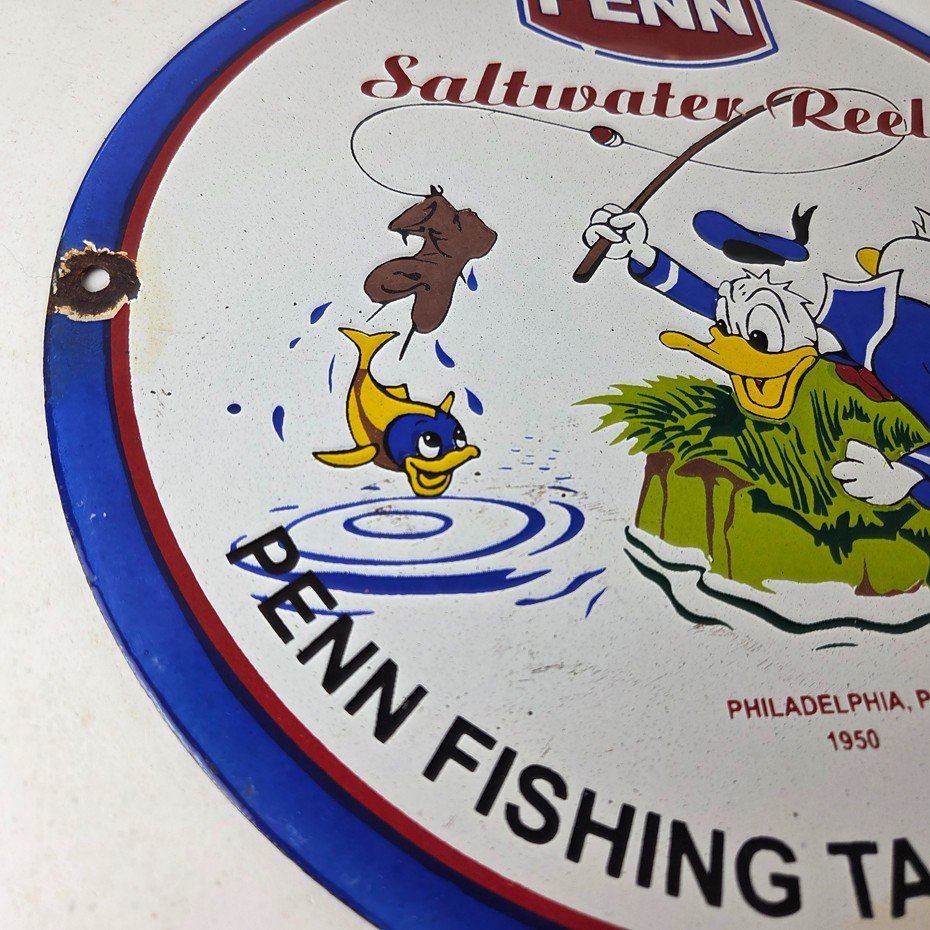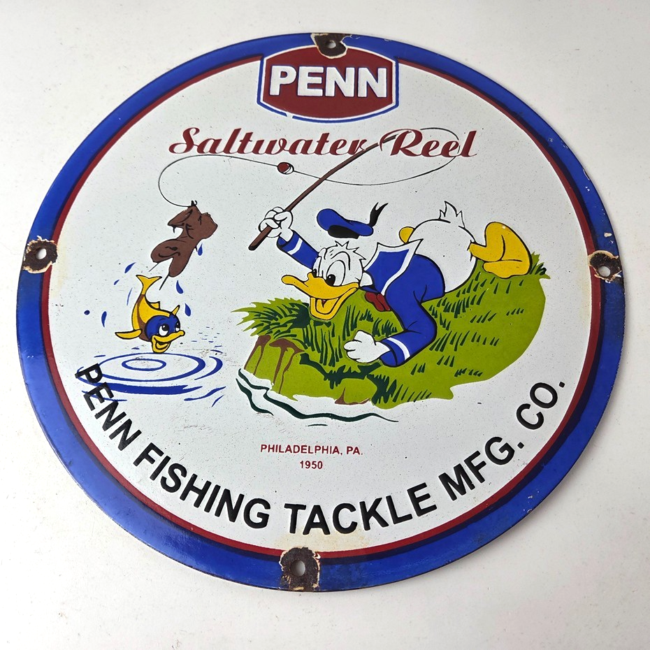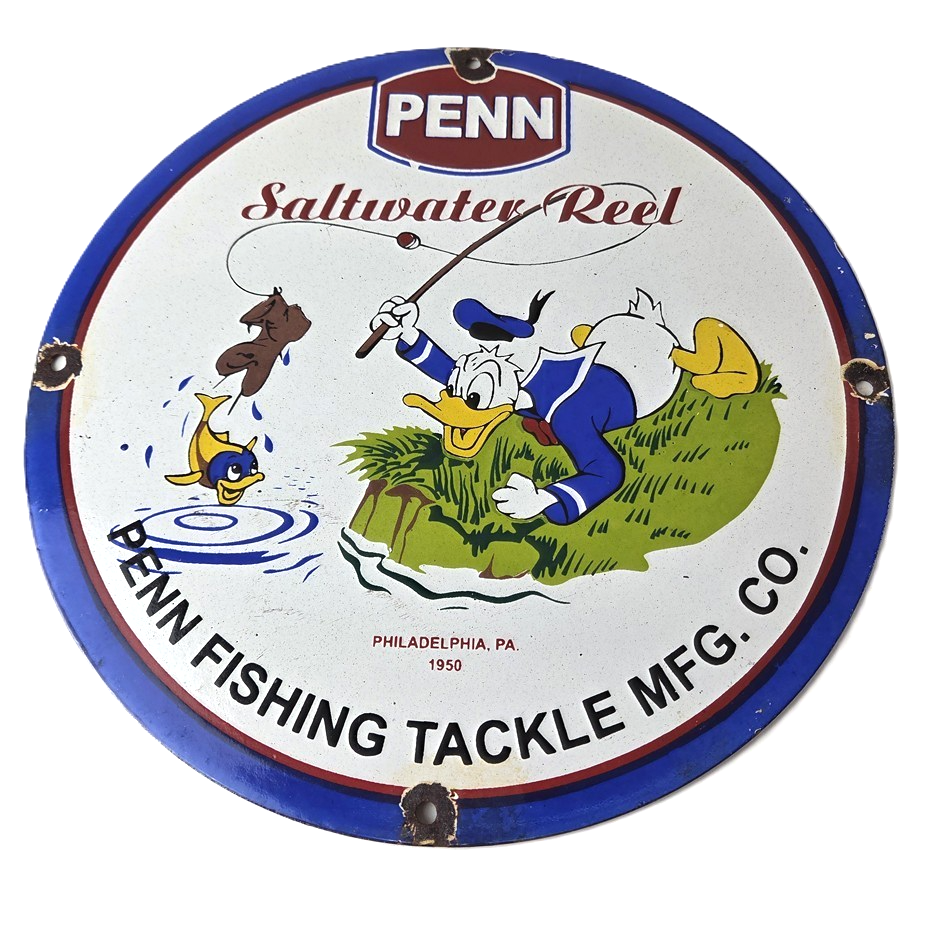 Vintage Penn Saltwater Reels Porcelain Sign.