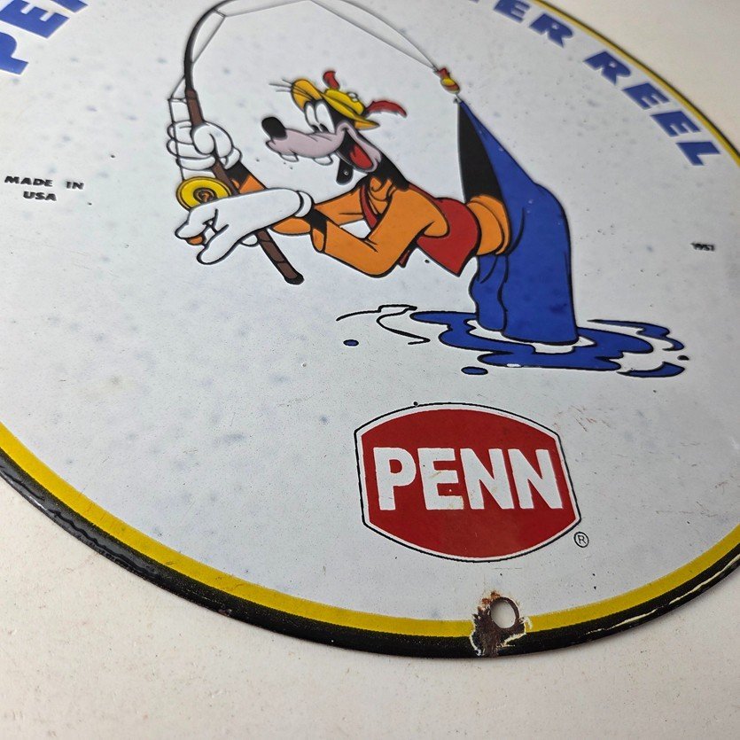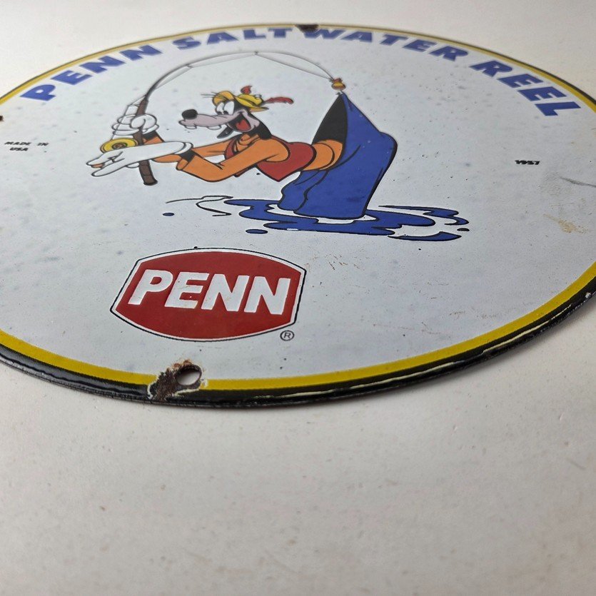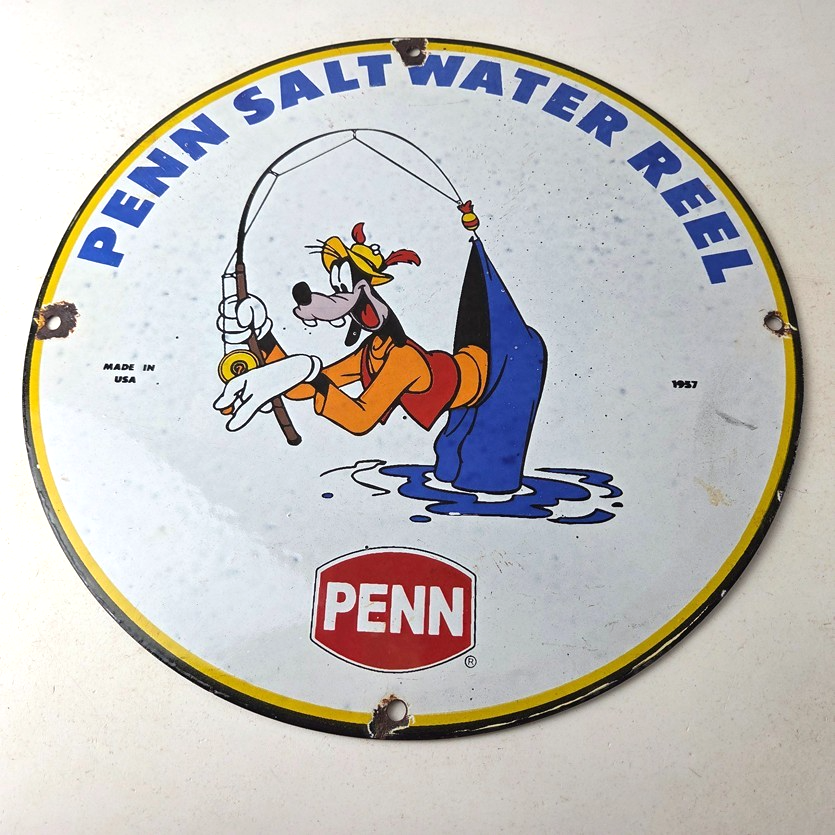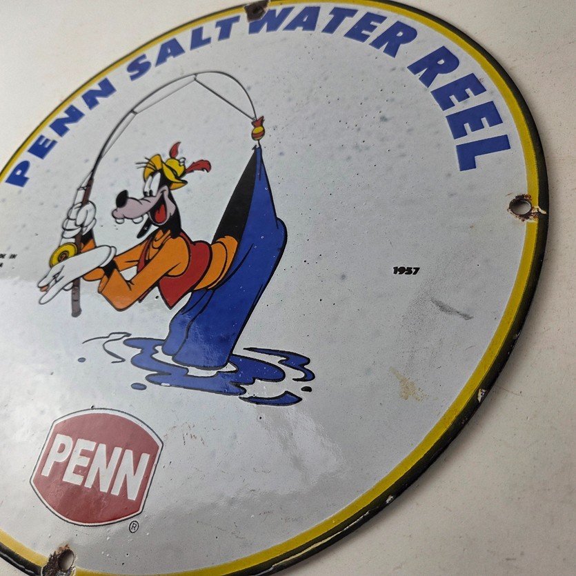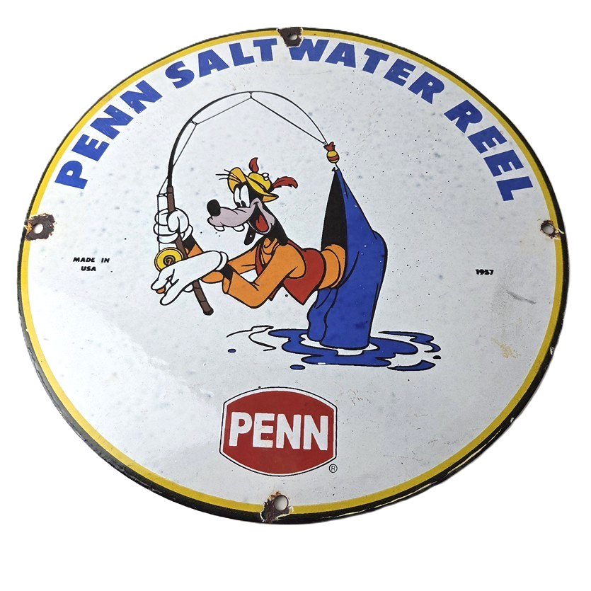 Vintage Penn Fishing Reels Sign – Porcelain Tackle Rods Saltwater Gas Pump Sign