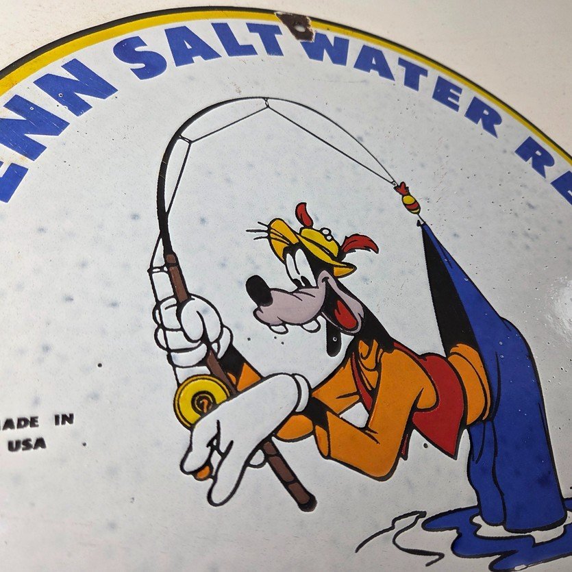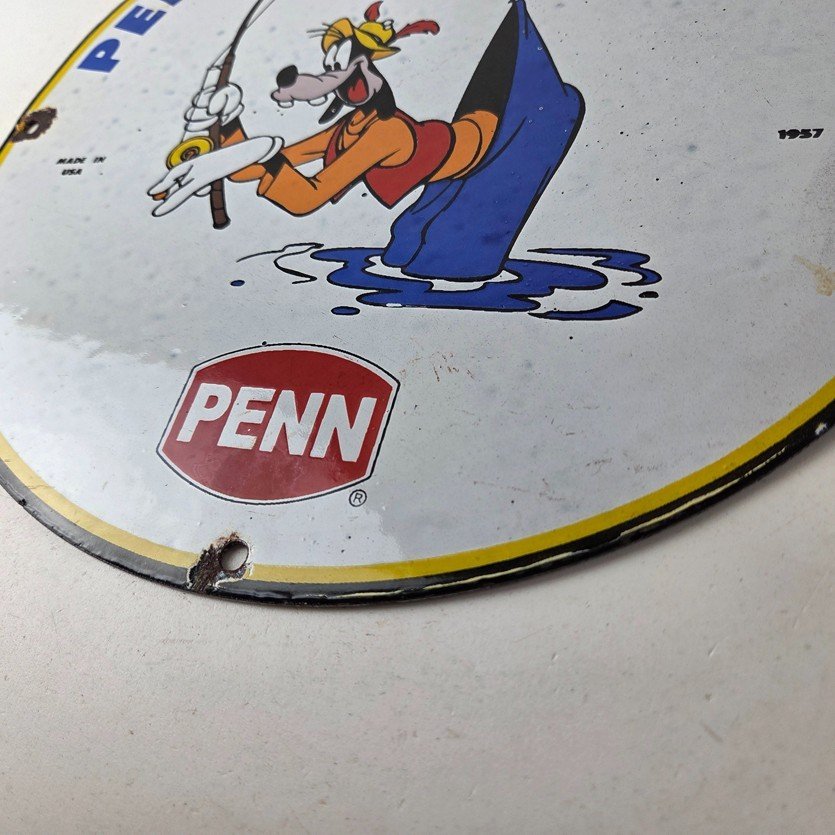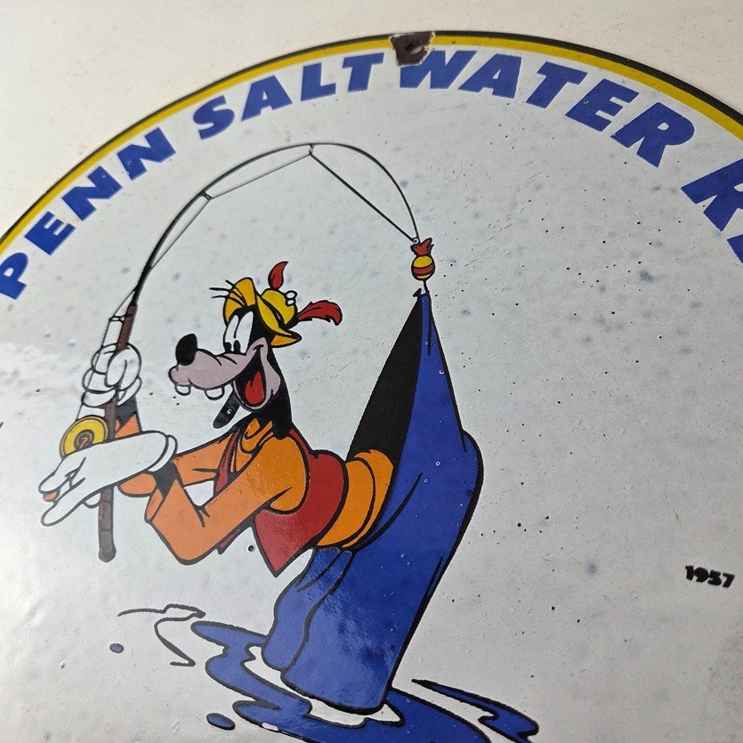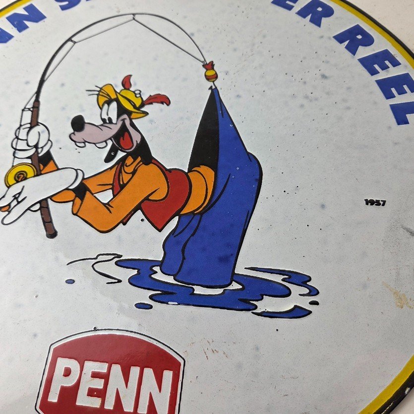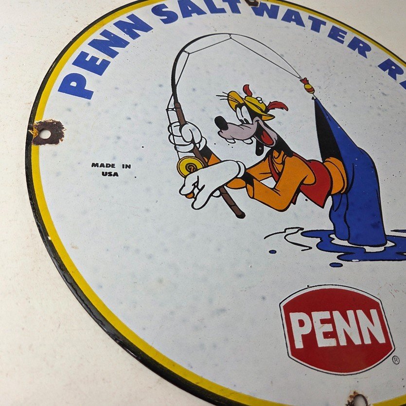 Vintage Penn Fishing Reels Sign – Porcelain Tackle Rods Saltwater Gas Pump Sign