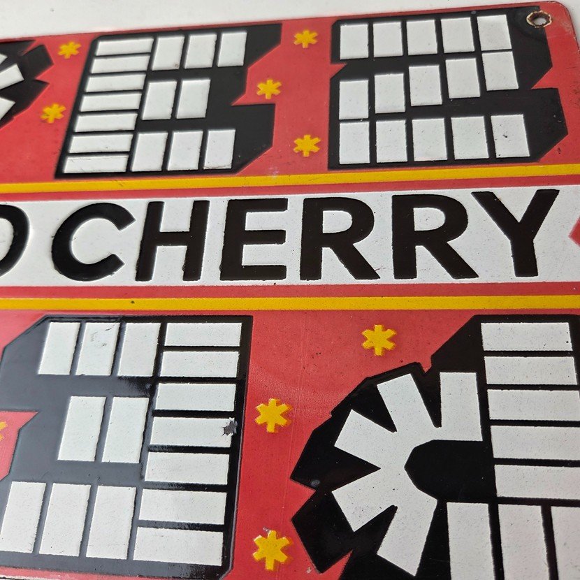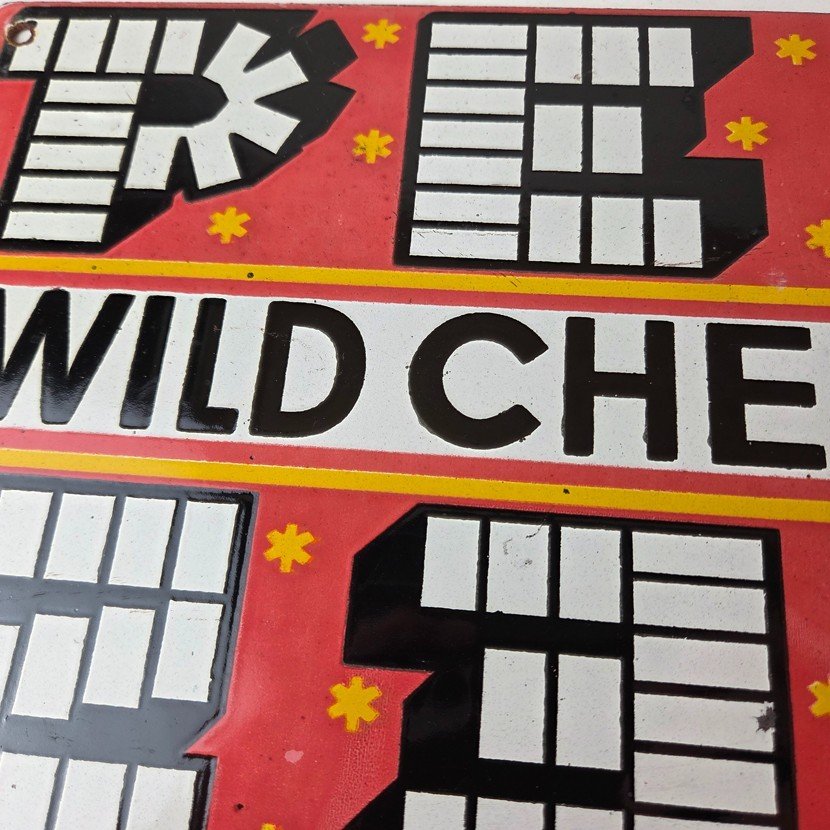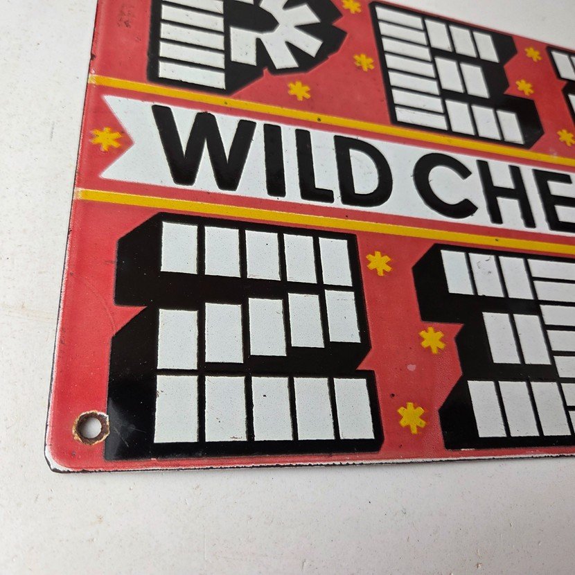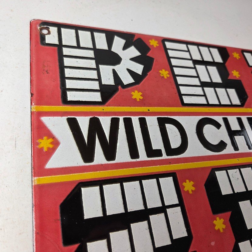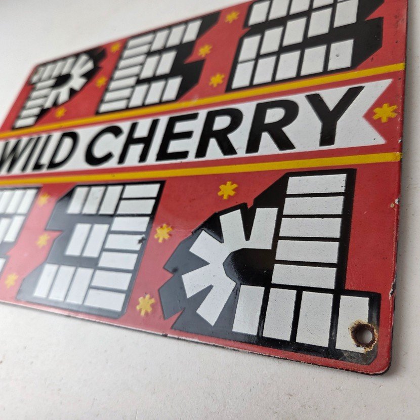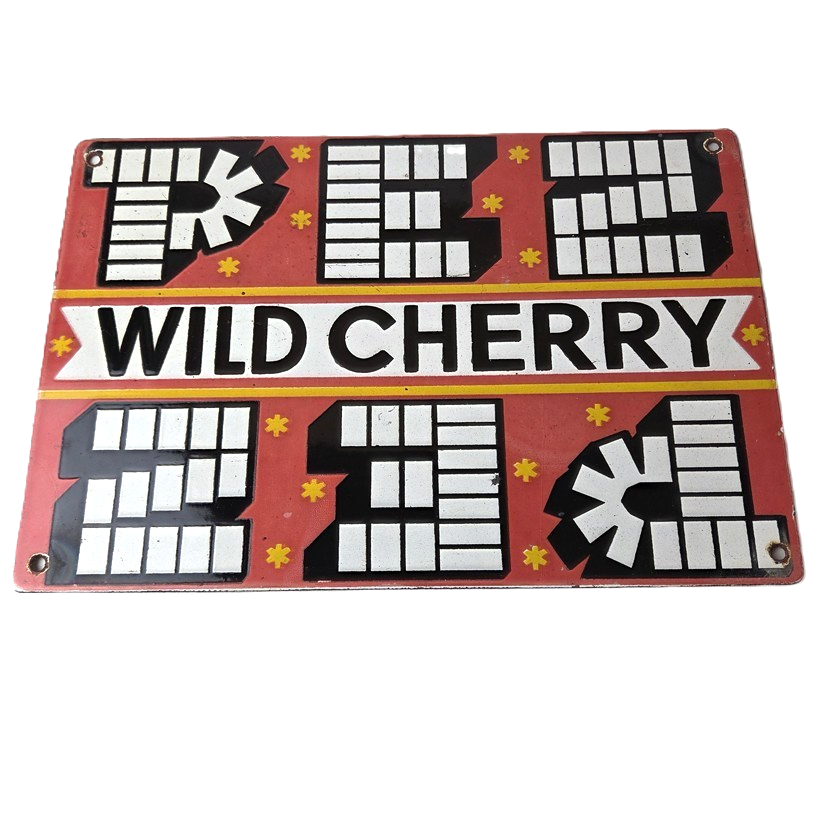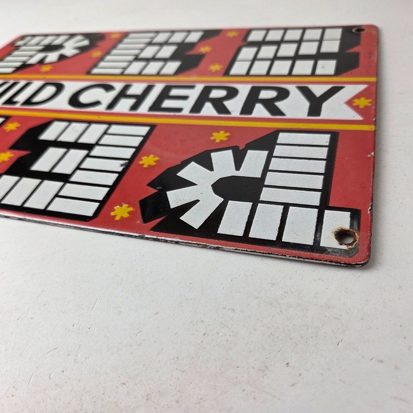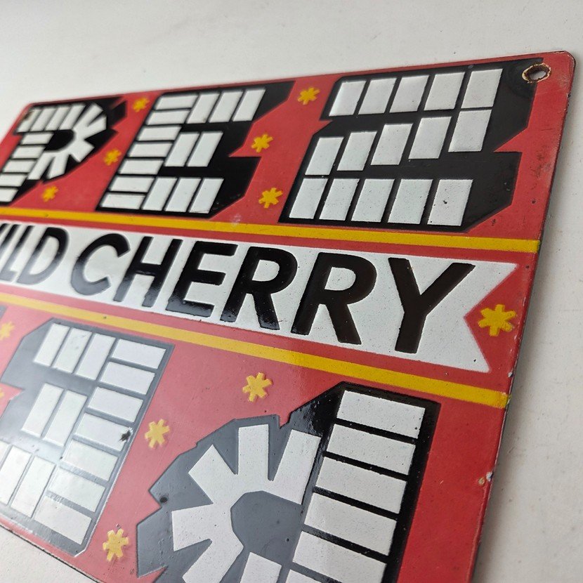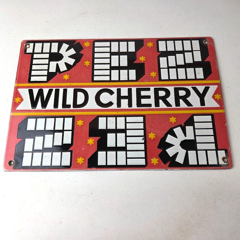 Vintage PEZ Wild Cherry Sign – Porcelain Candy Dispenser Man Cave Pump Sign