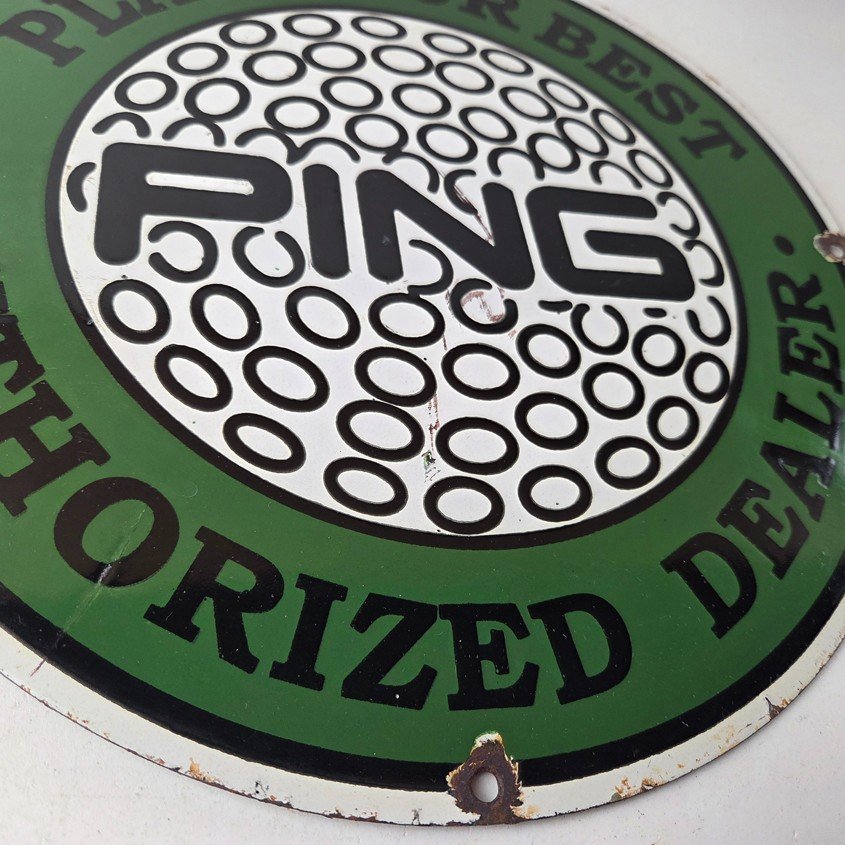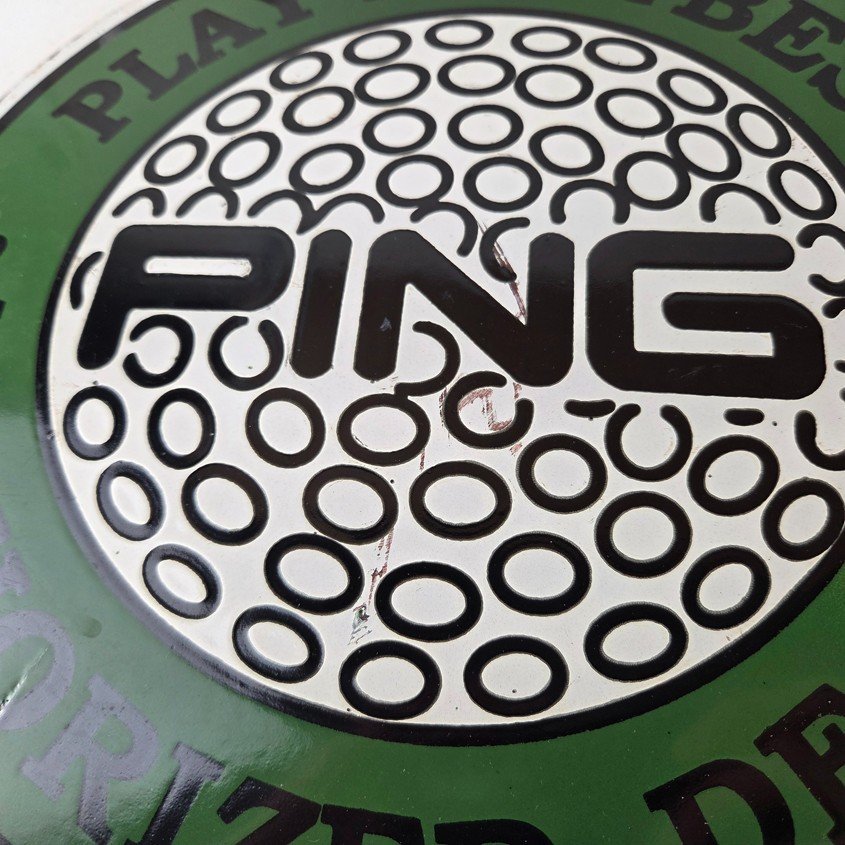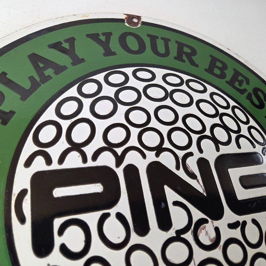 Vintage Ping Golf Sign – Play Your Best Golfing Dealer Porcelain Gas Pump Sign