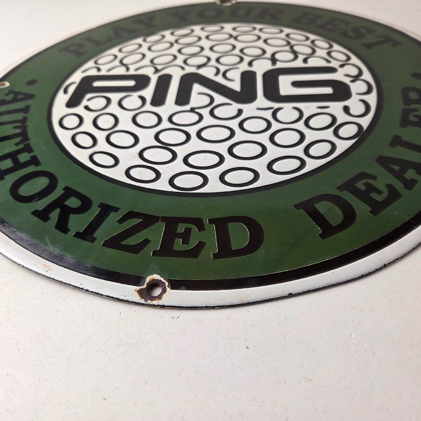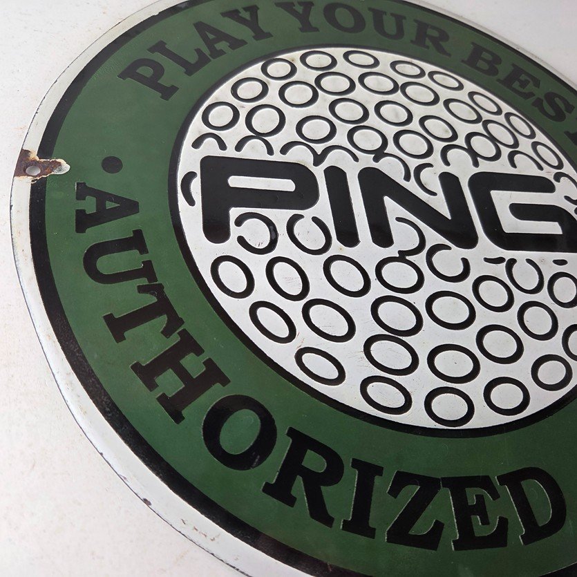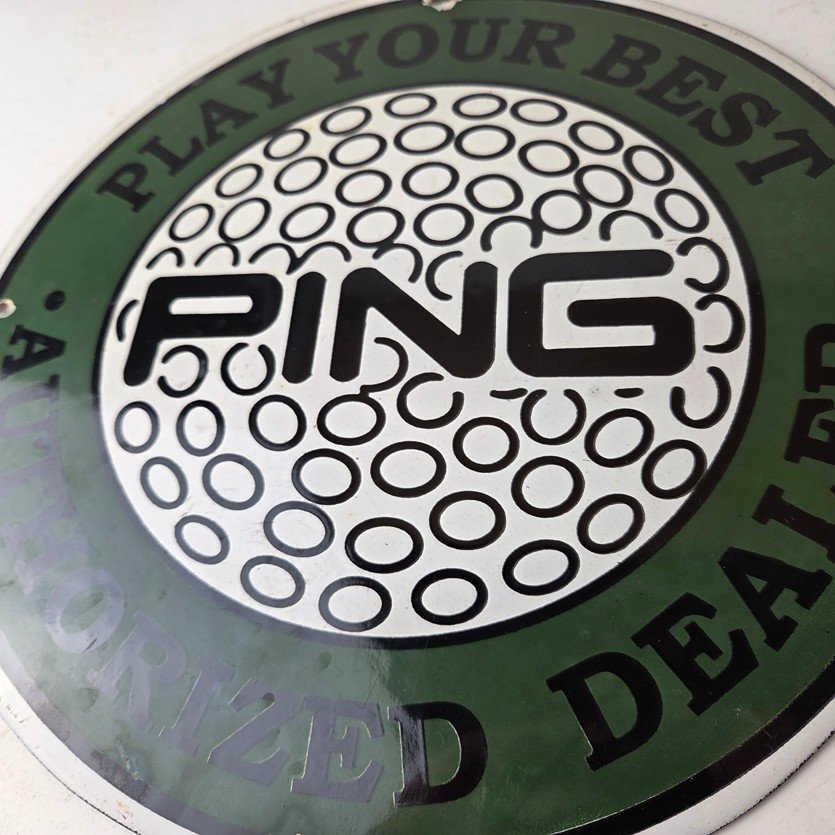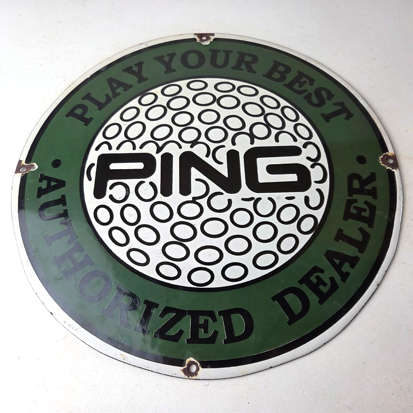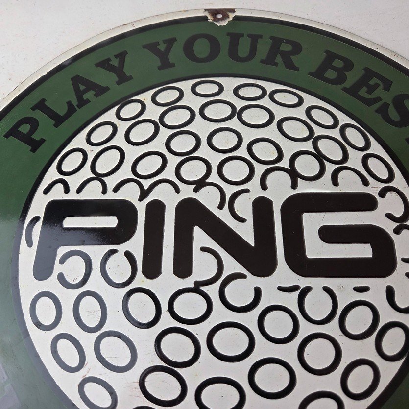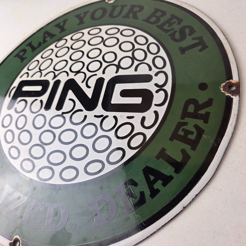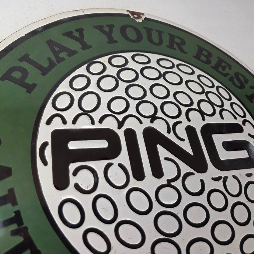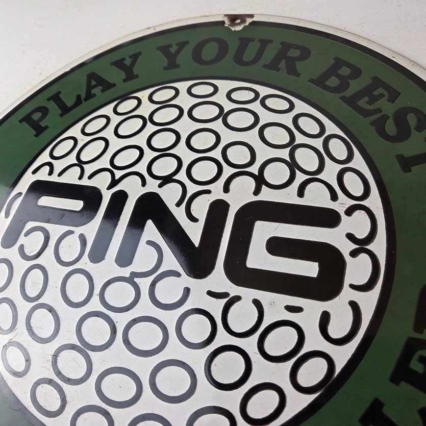Vintage Ping Golf Sign – Play Your Best Golfing Dealer Porcelain Gas Pump Sign