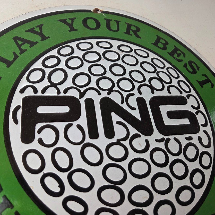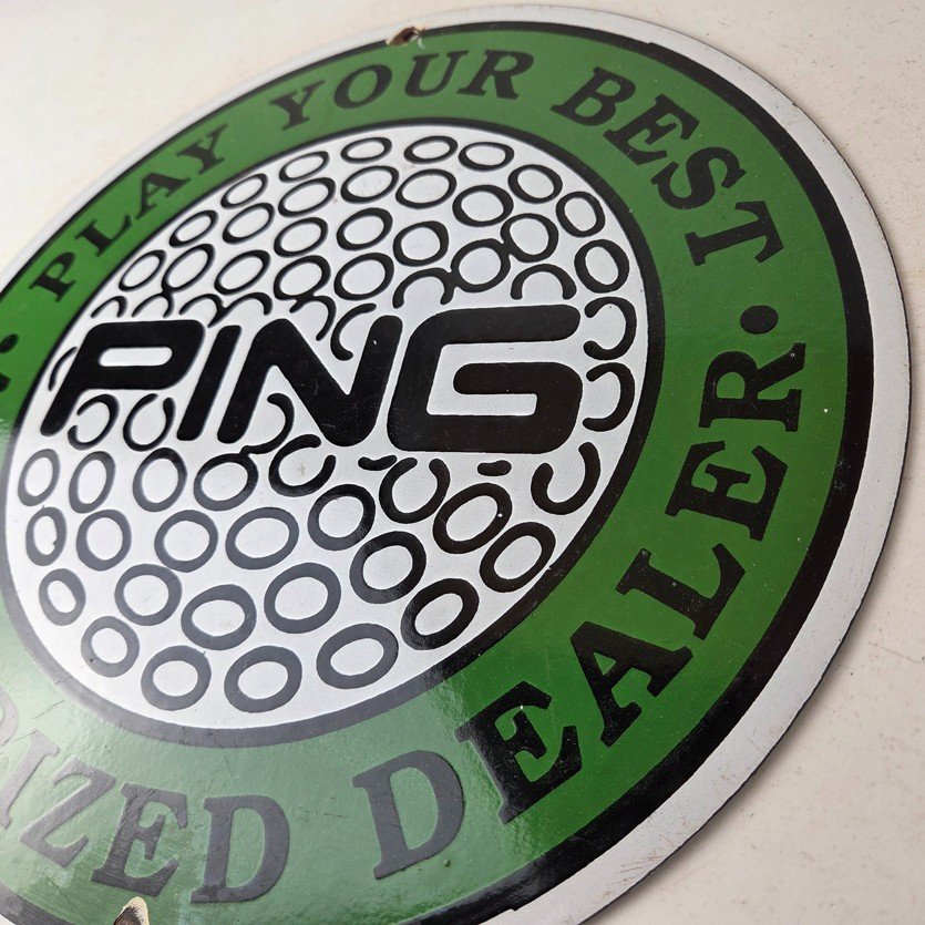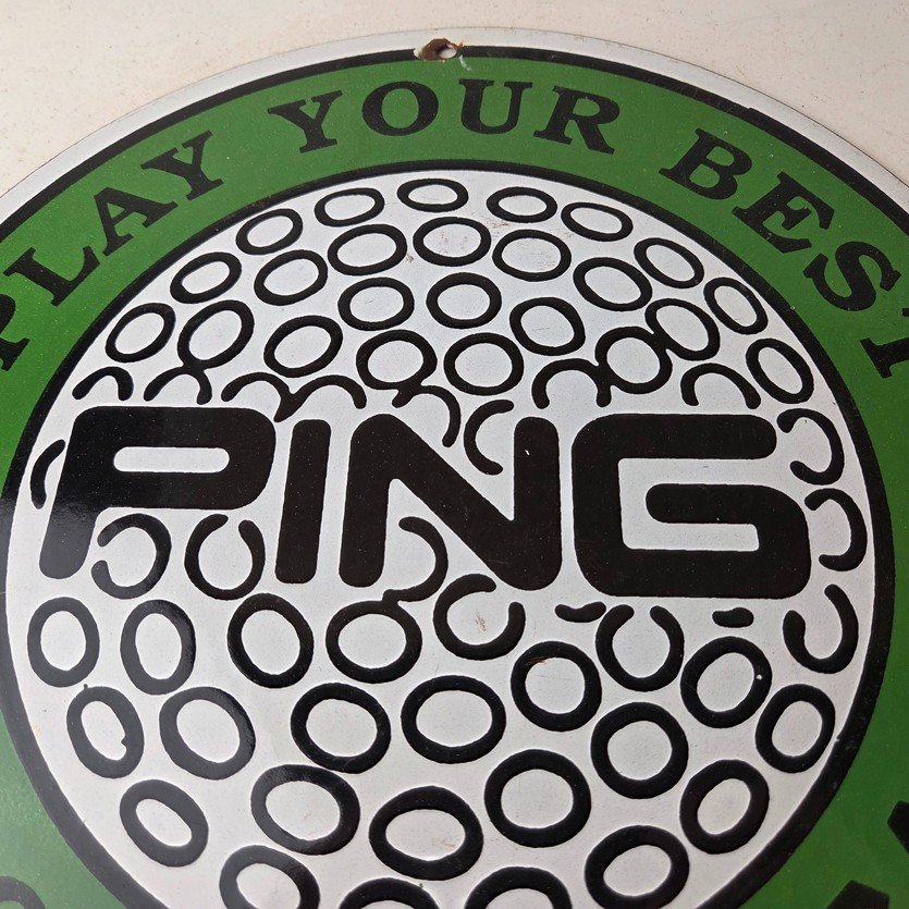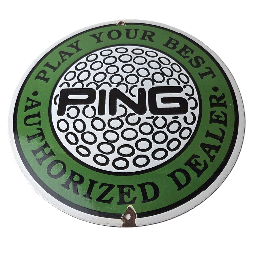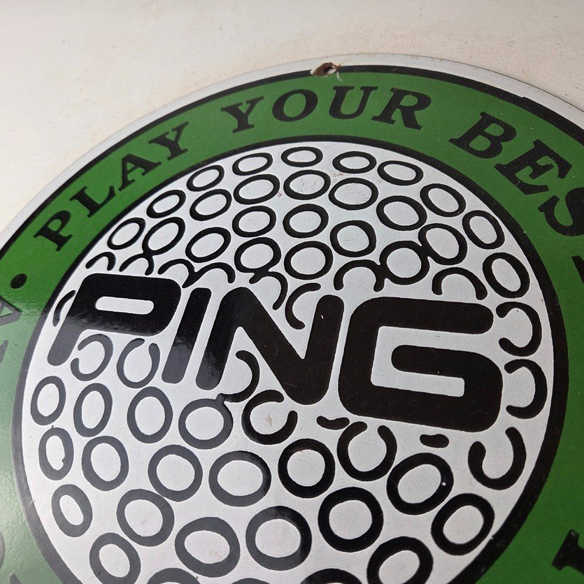Vintage Ping Golf Sign – Play Your Best Golfing Dealer Porcelain Gas Pump Sign