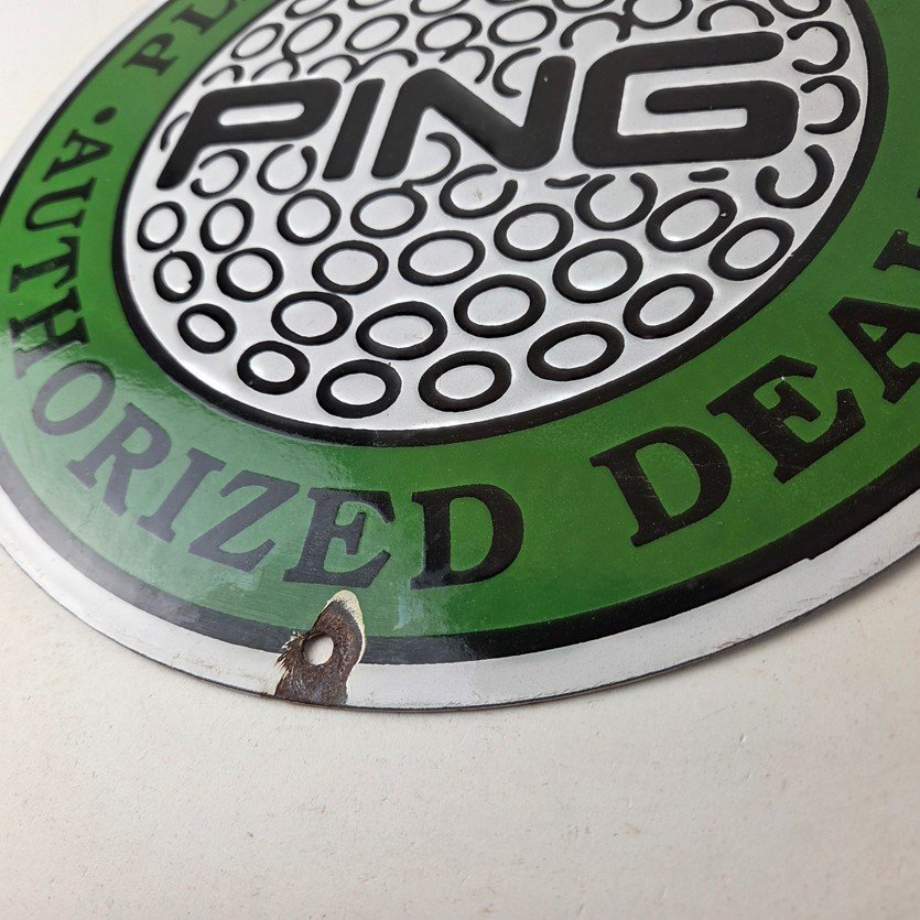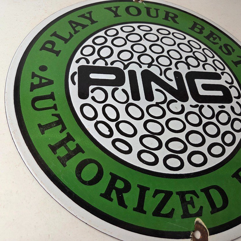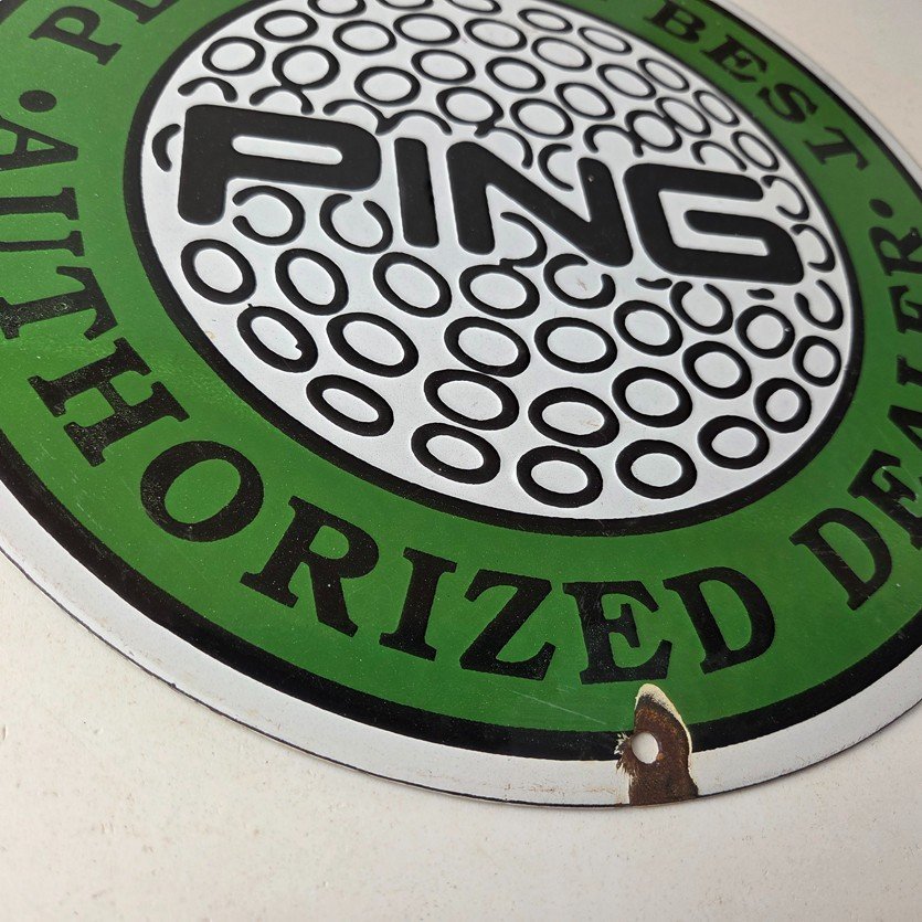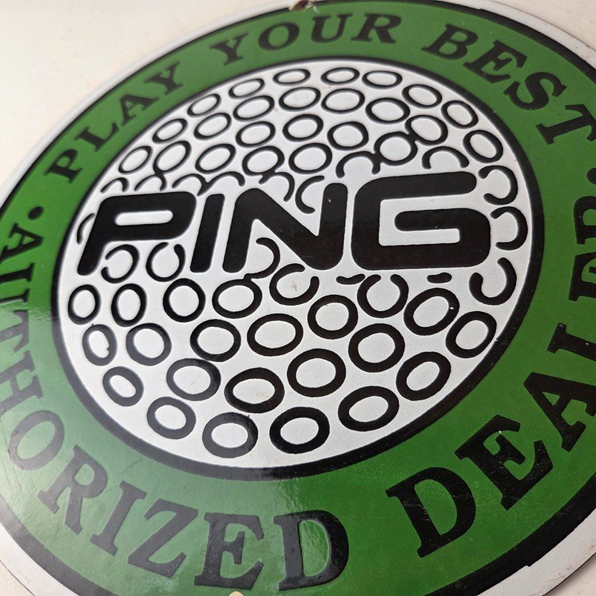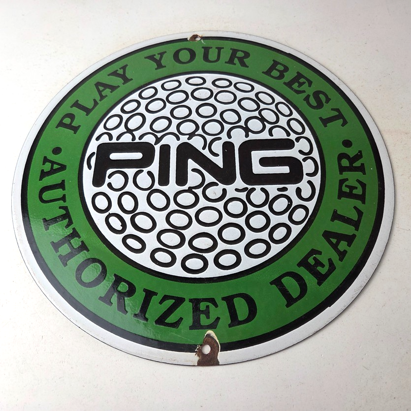 Vintage Ping Golf Sign – Play Your Best Golfing Dealer Porcelain Gas Pump Sign