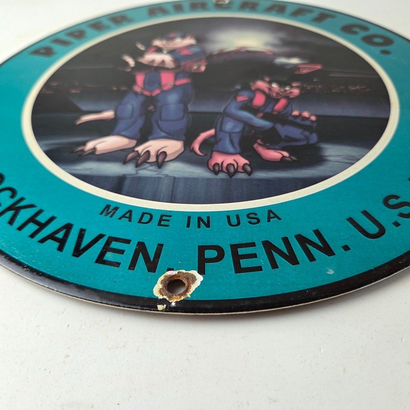 This vintage Piper Aircraft Co. porcelain sign is a must-have for collectors and aviation & gasoline enthusiasts alike. With its eye-catching vibrant color and Piper Aircraft brand, it’s a perfect addition to any collection. Measuring 11 3/4″, this porcelain sign has excellent lettering with the Piper logo in the center.