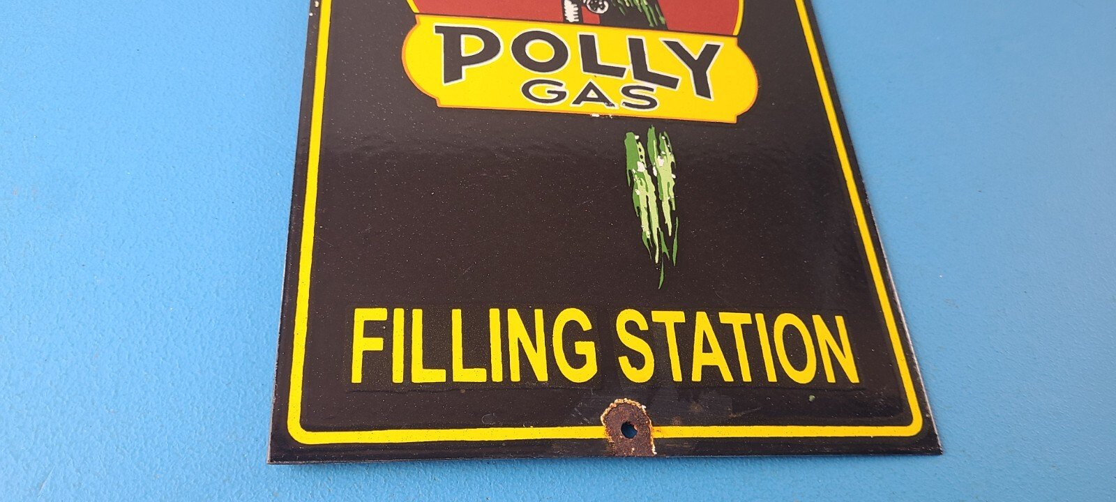 Vintage Polly Gasoline Porcelain Sign.