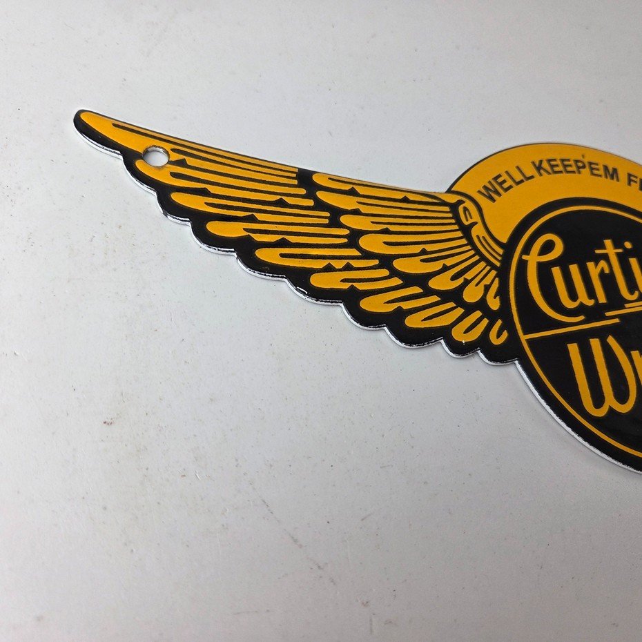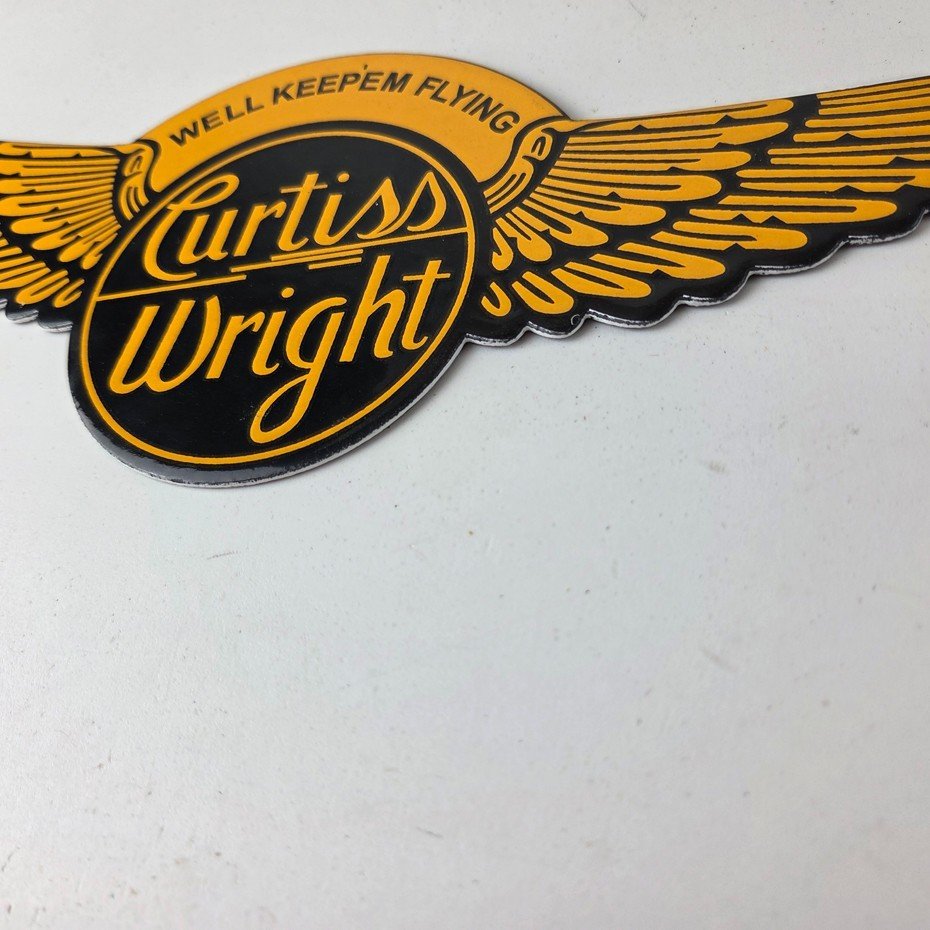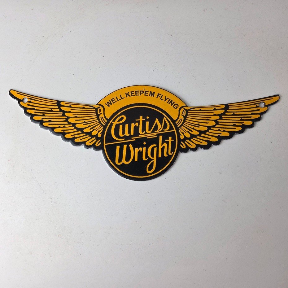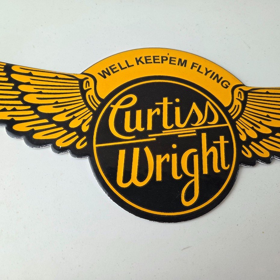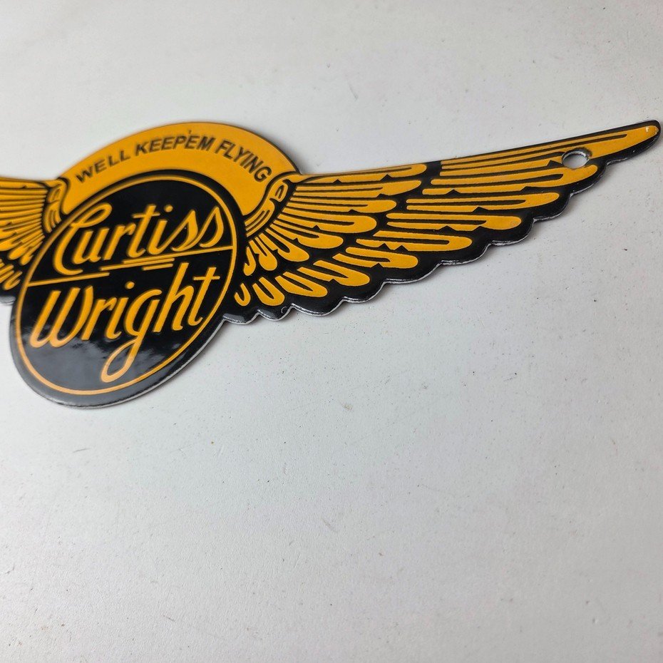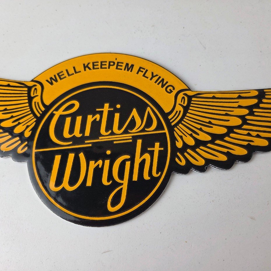 - Vintage Curtiss Wright porcelain sign.