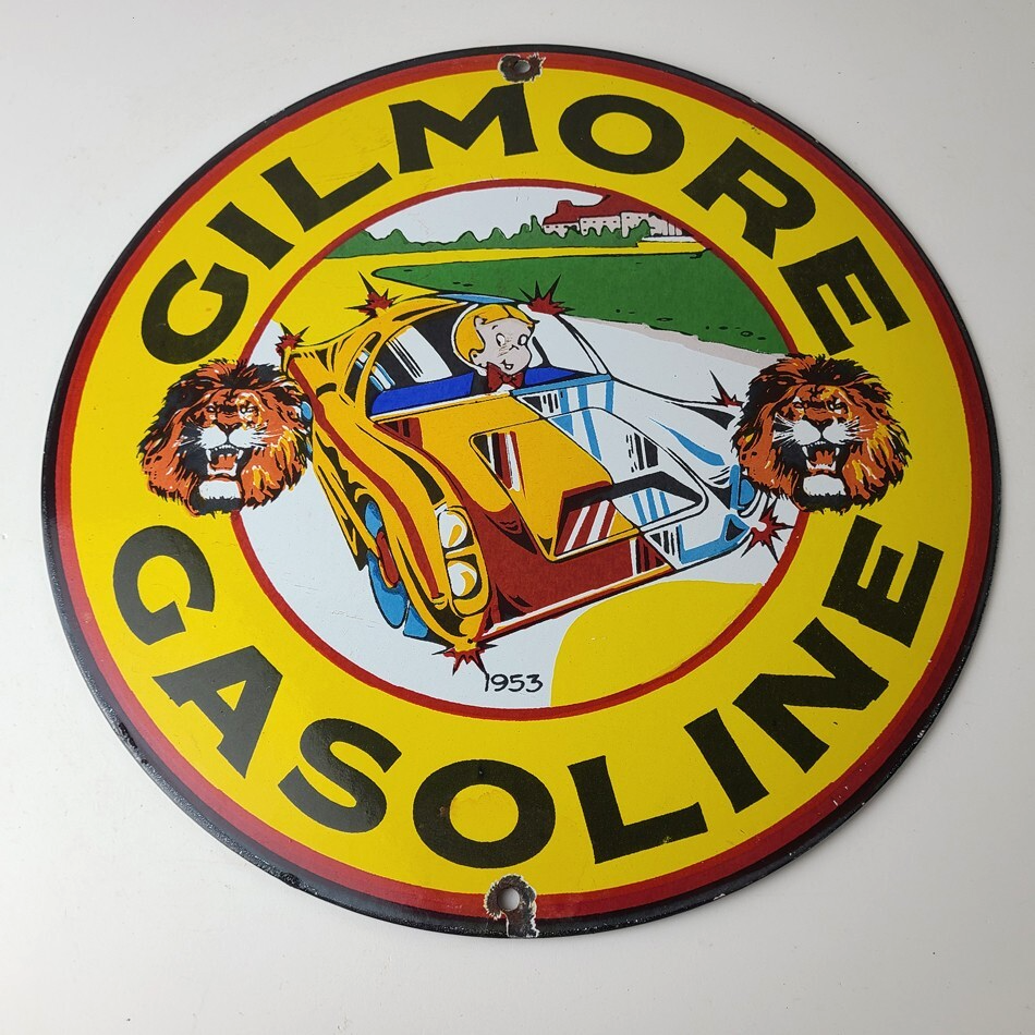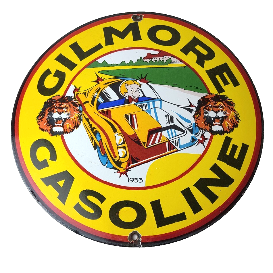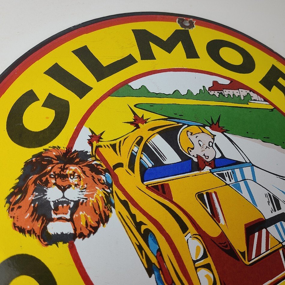 Vintage Gilmore Gasoline Pump Plate Sign.