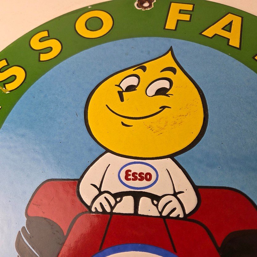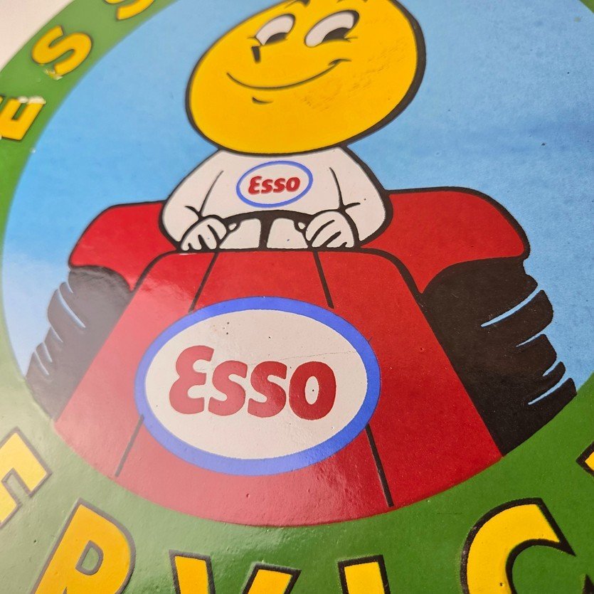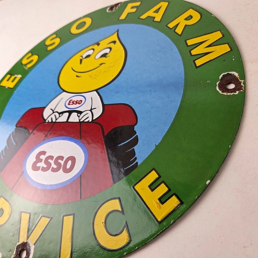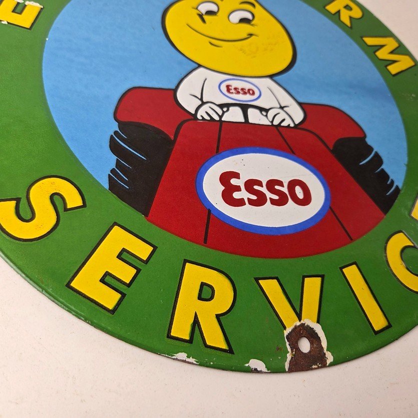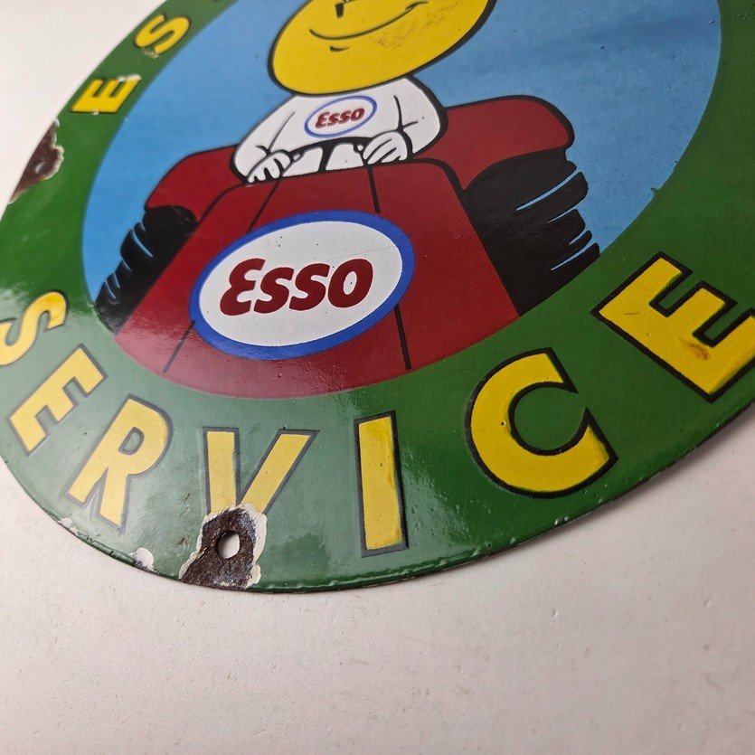 This vintage sign from Esso Gasoline features their iconic oil drop boy on a tractor and is perfect for collectors of gas and oil memorabilia. Whether you’re a fan of vintage advertising or simply appreciate the history of Esso Gasoline, this sign is sure to be a conversation starter. It’s a great addition to any man cave, garage, or collection.