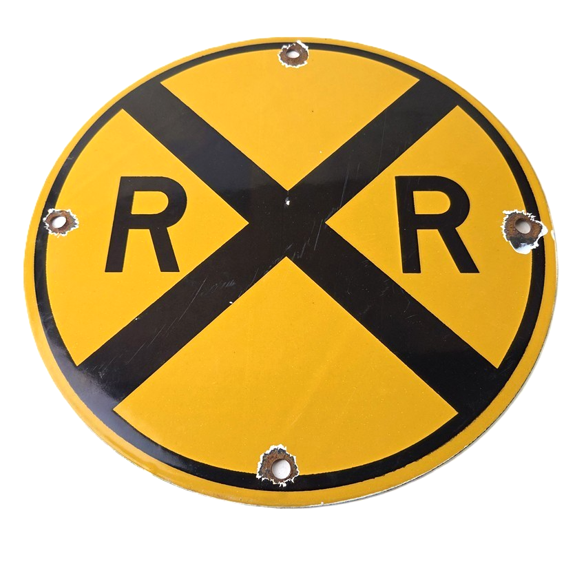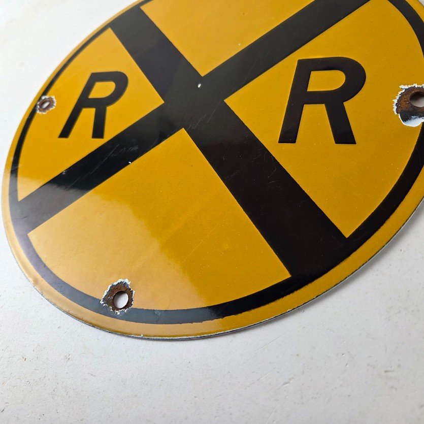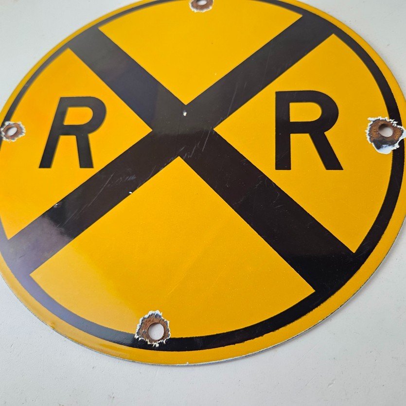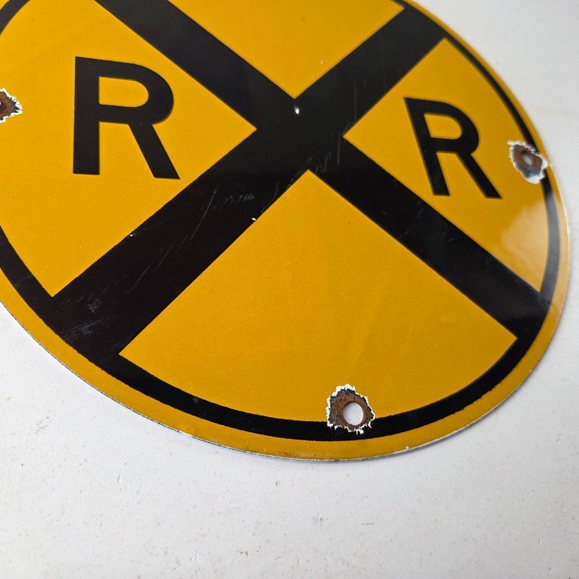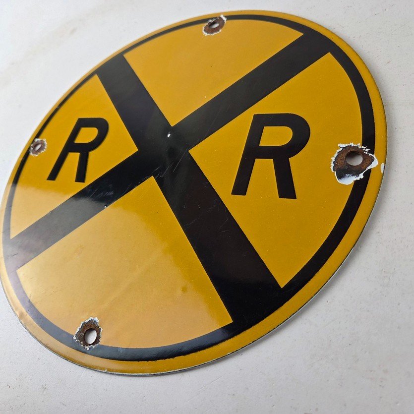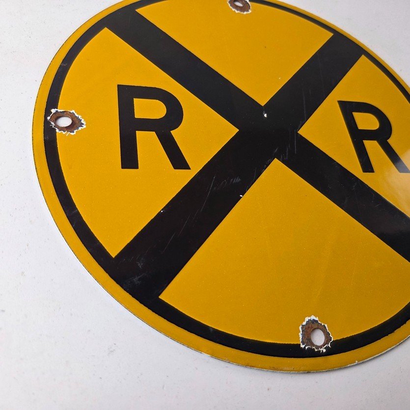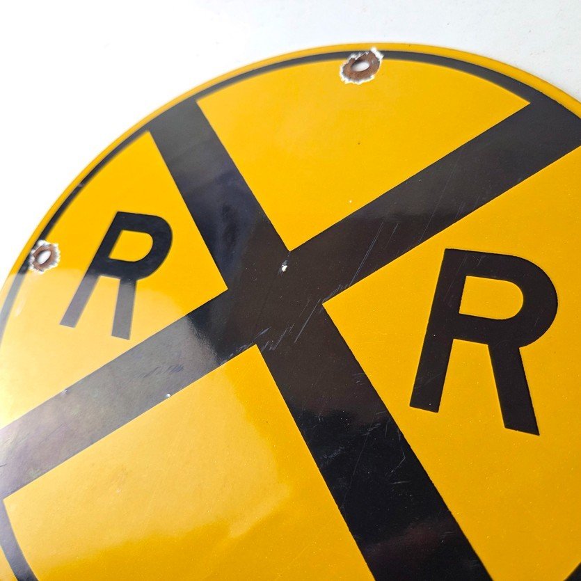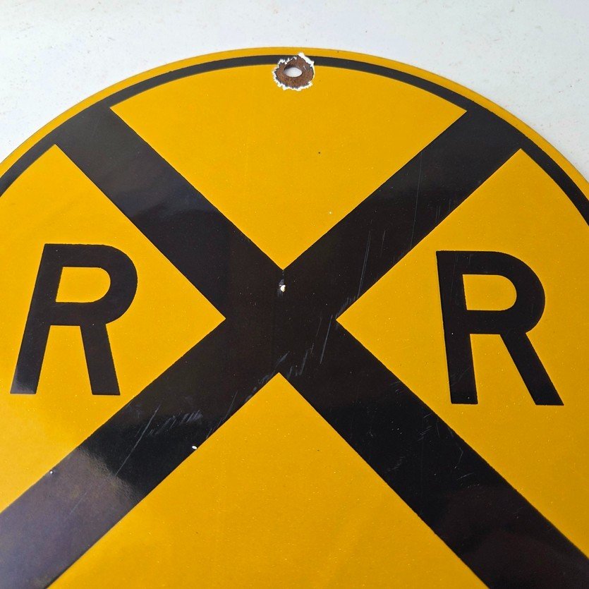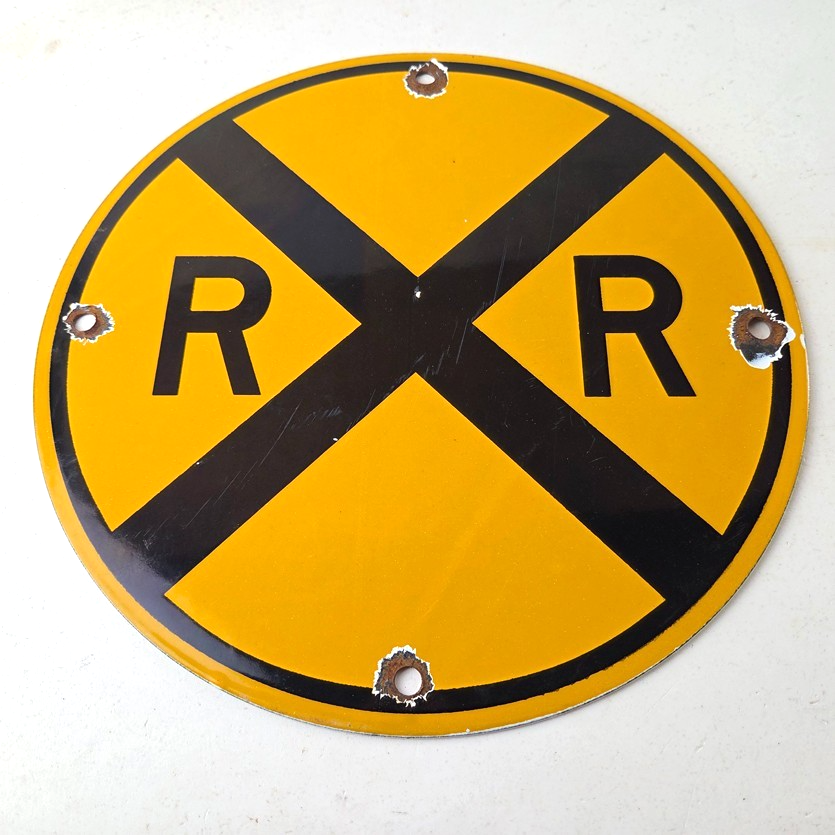 Vintage Railroad Crossing Porcelain Sign – RR X Yellow Warning Sign