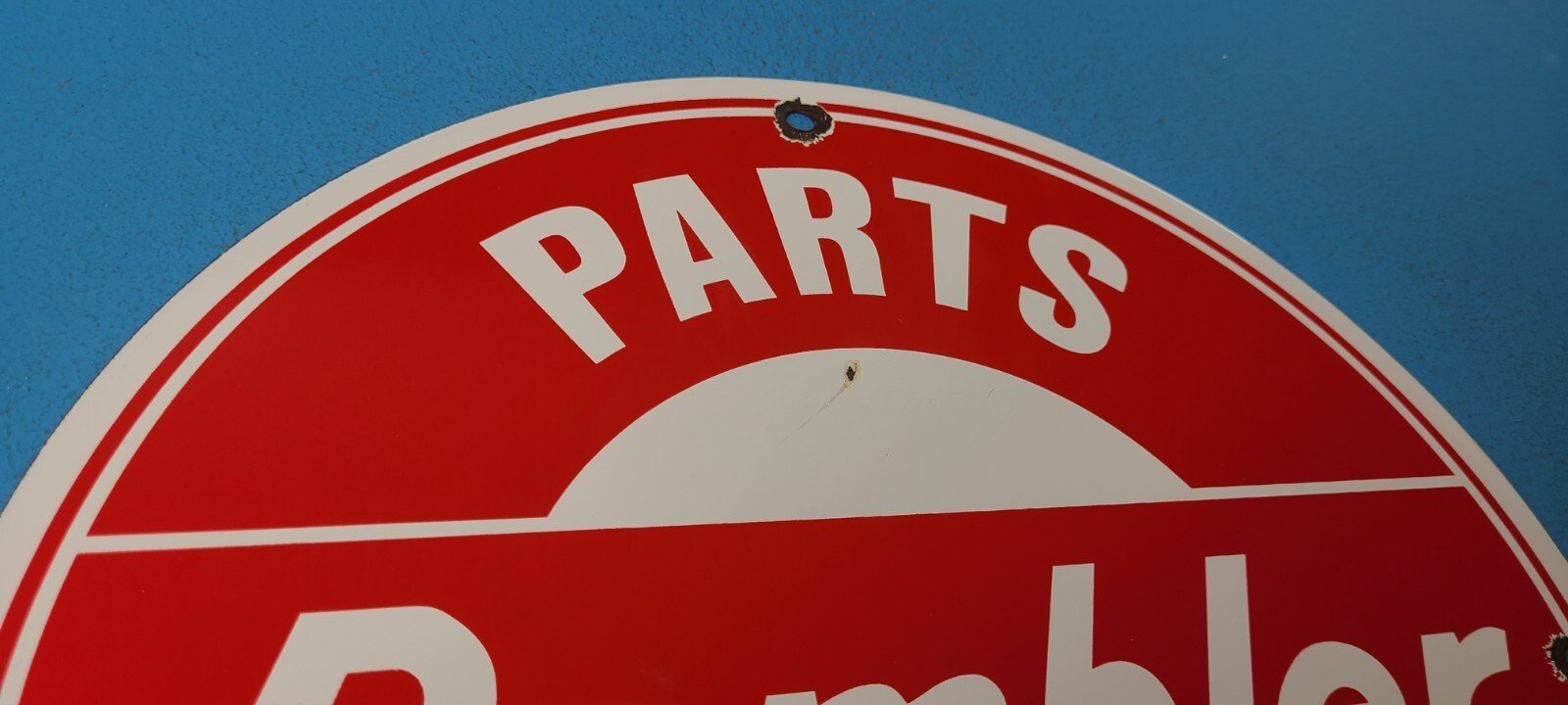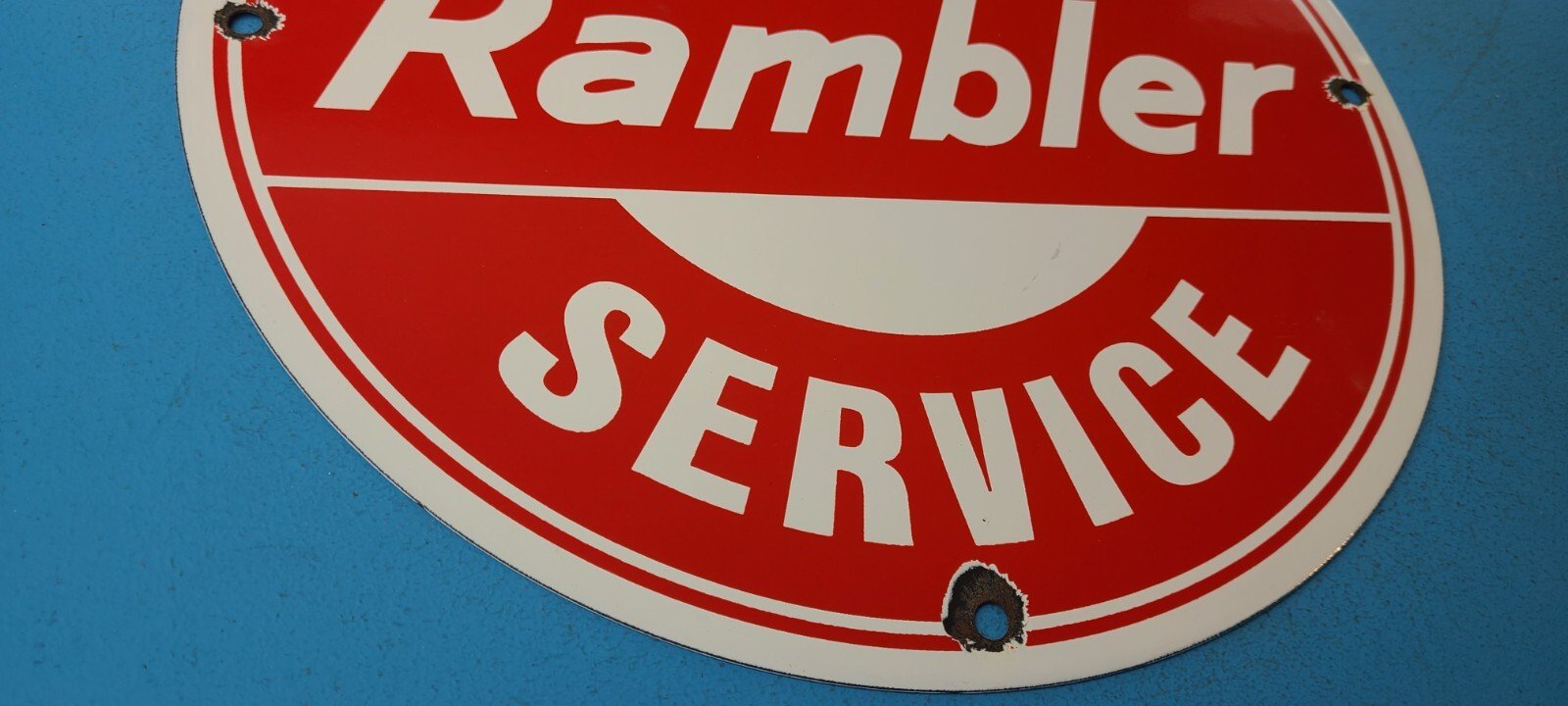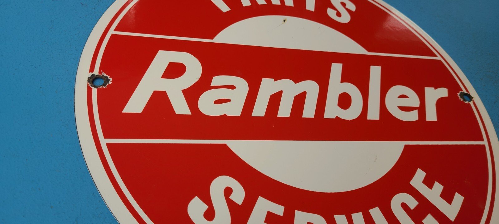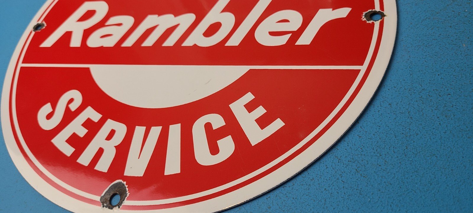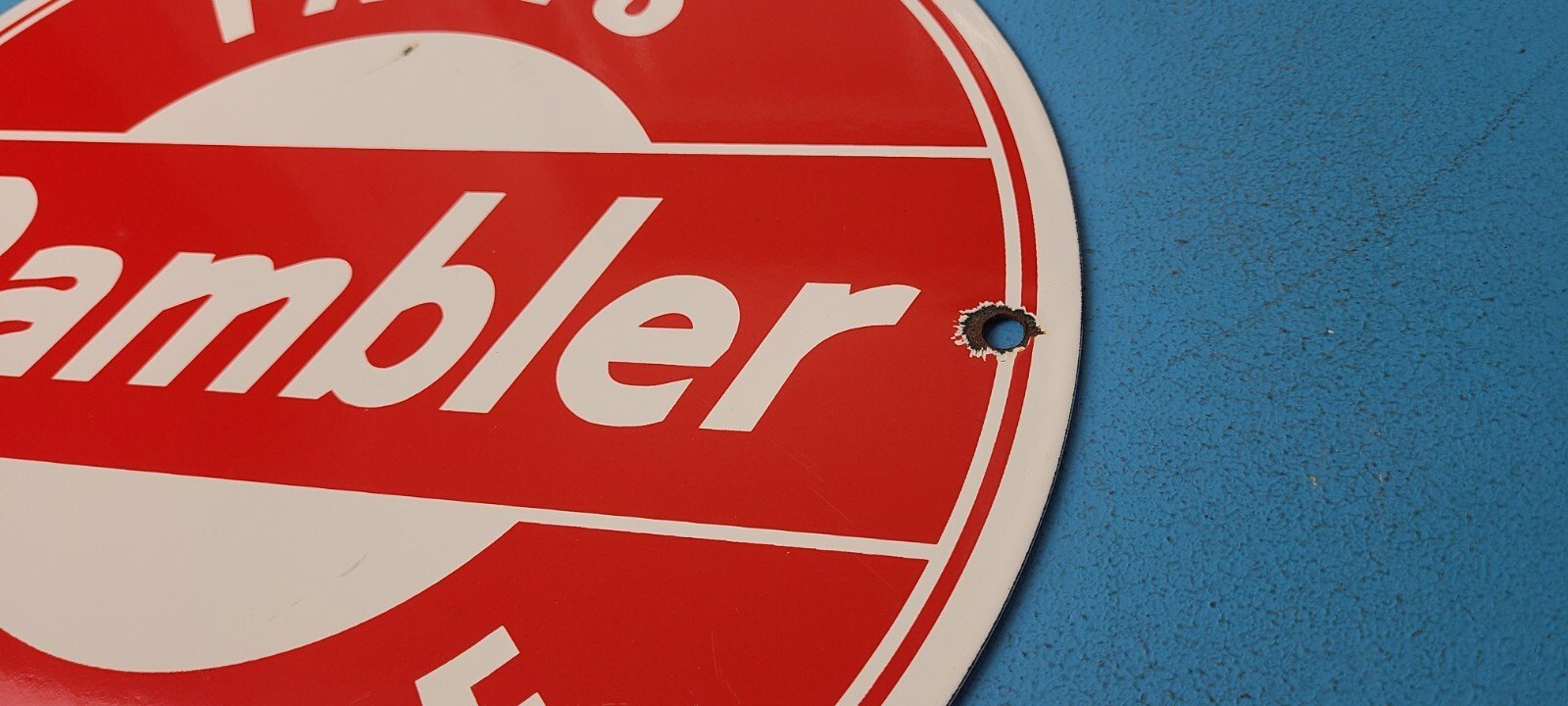 VINTAGE RAMBLER PORCELAIN GAS AUTOMOBILE SERVICE STATION DEALERSHIP SIGN