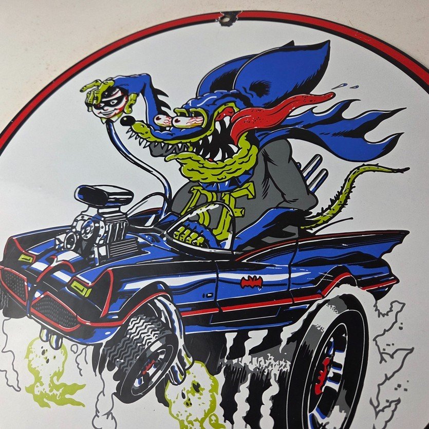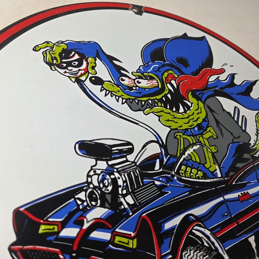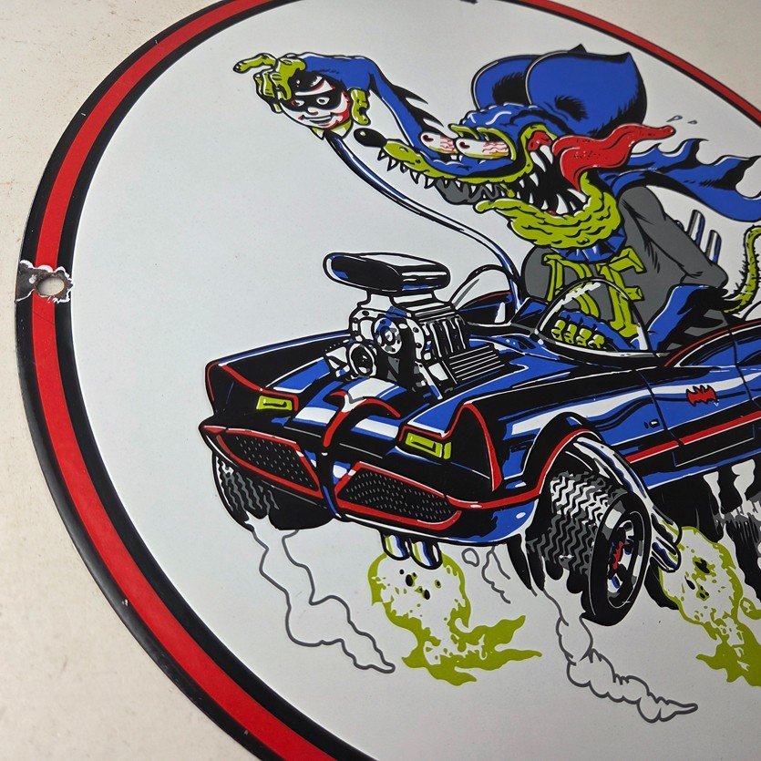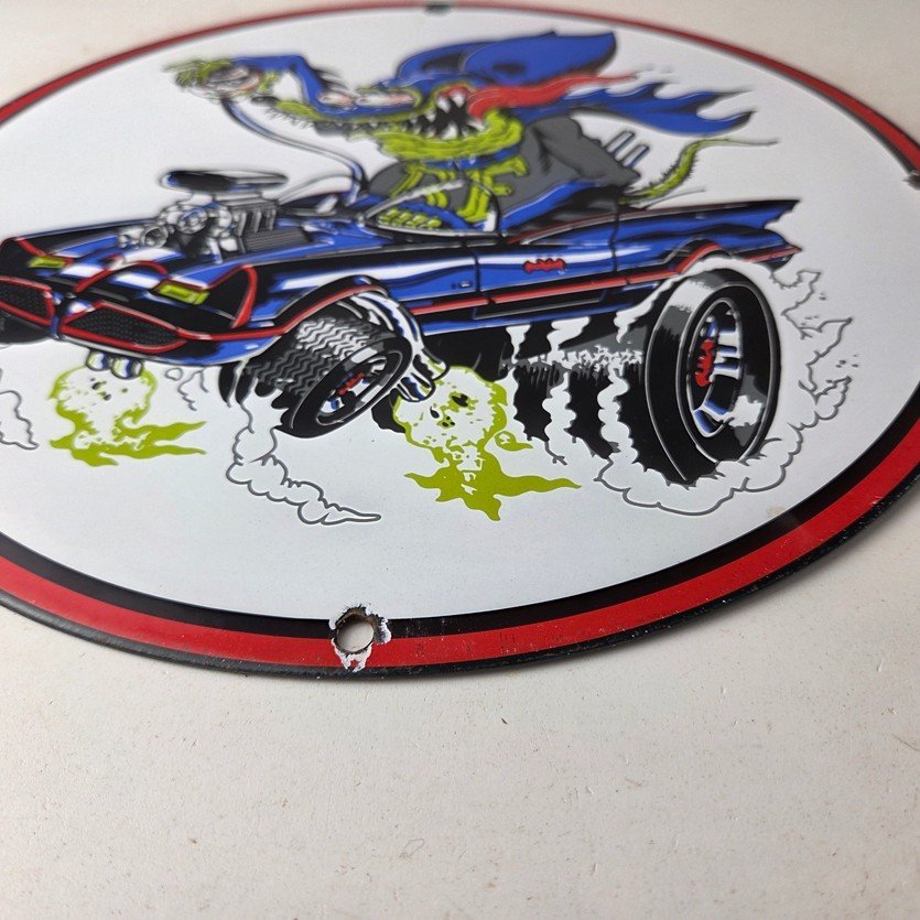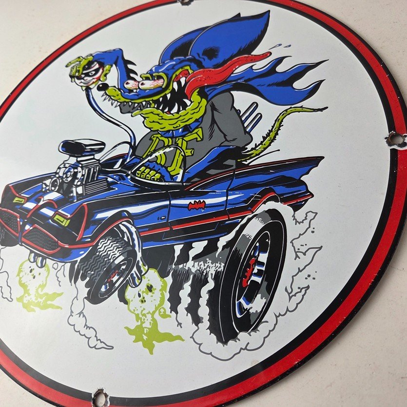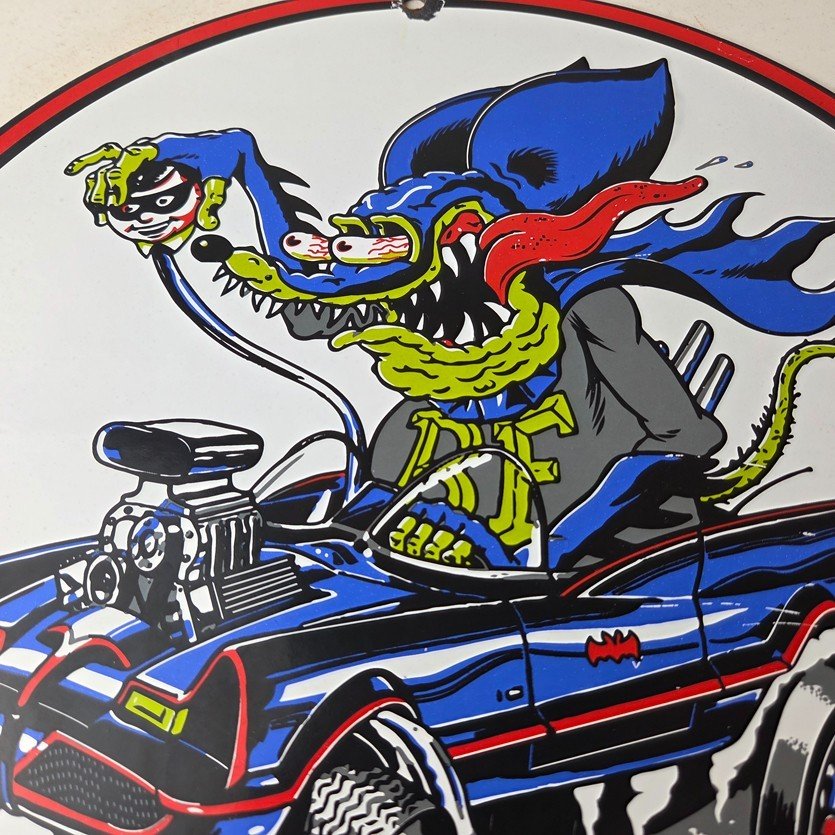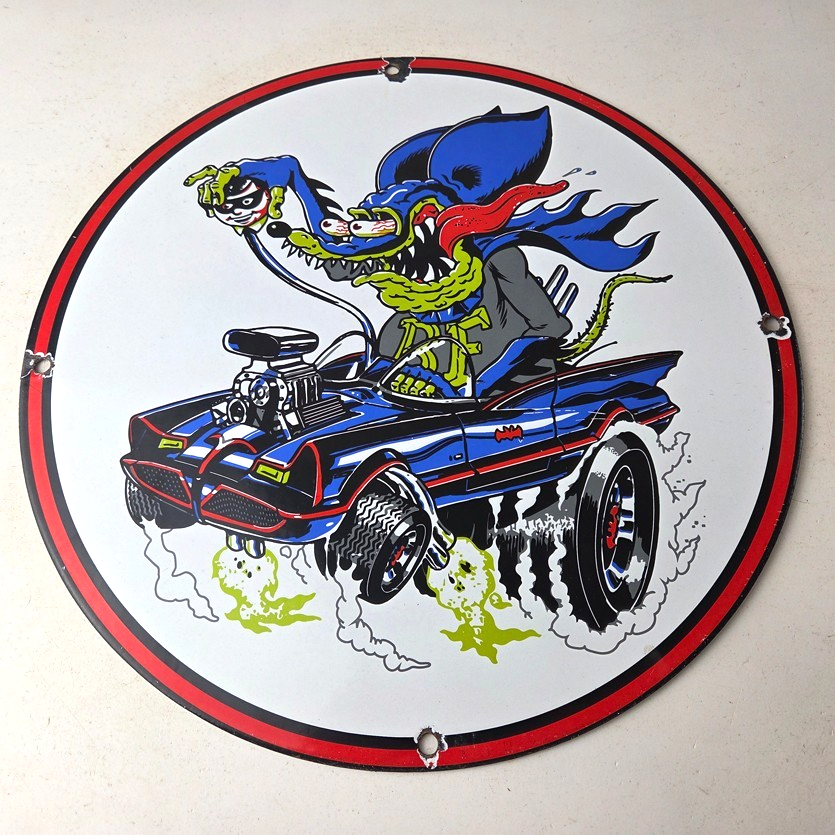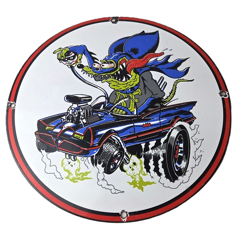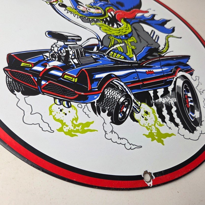 Vintage Rat Fink Hot Rod Batmobile Porcelain Sign – Kustom Fink Sign