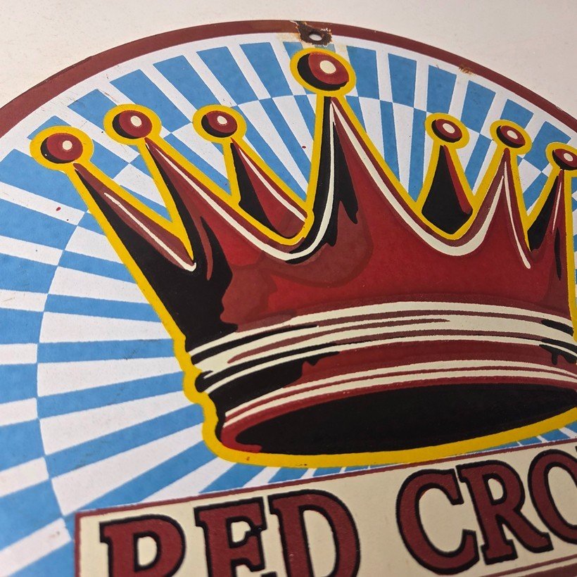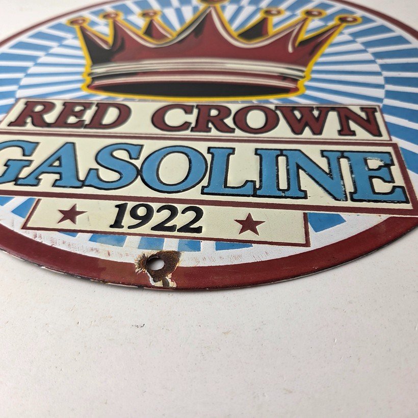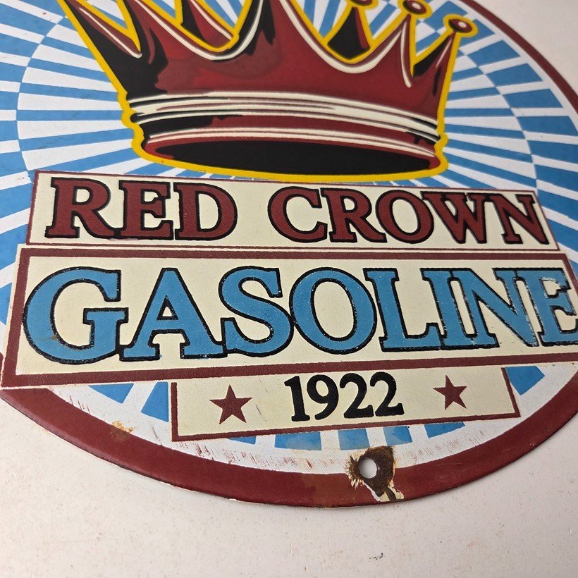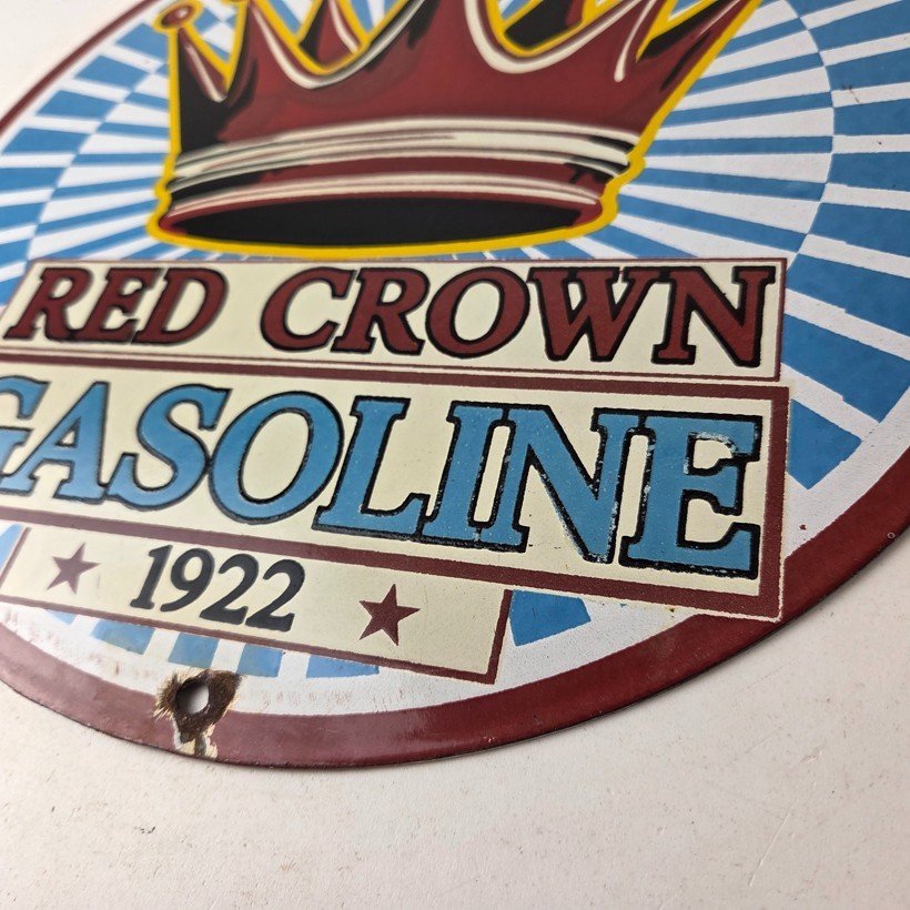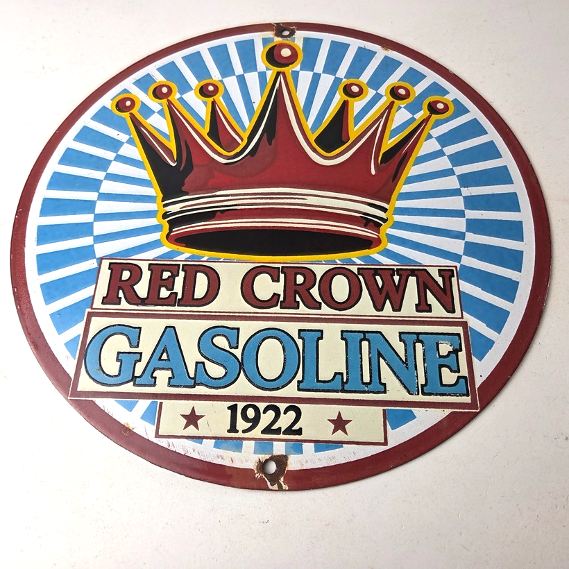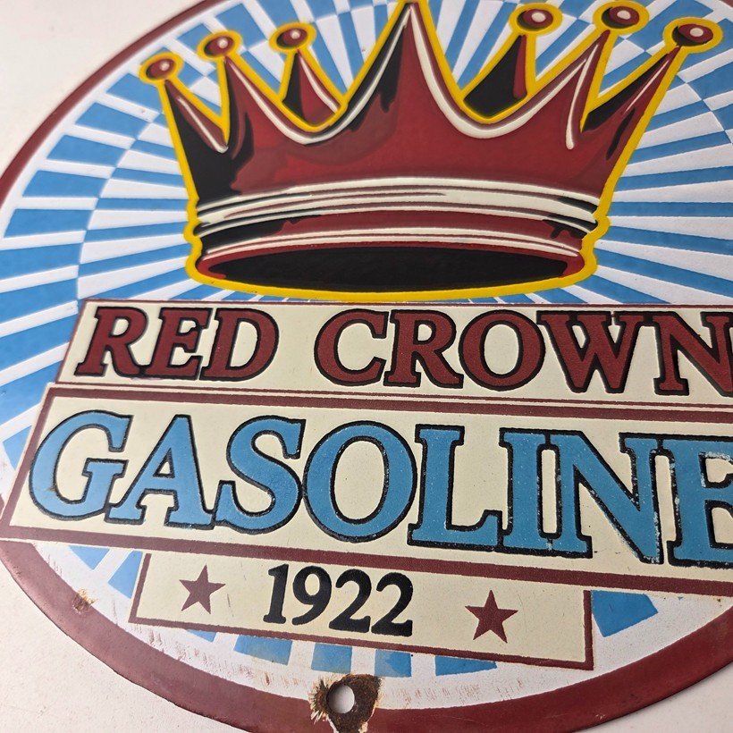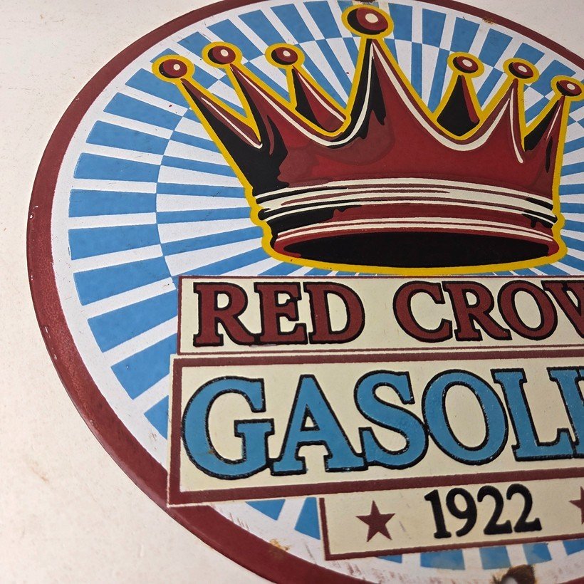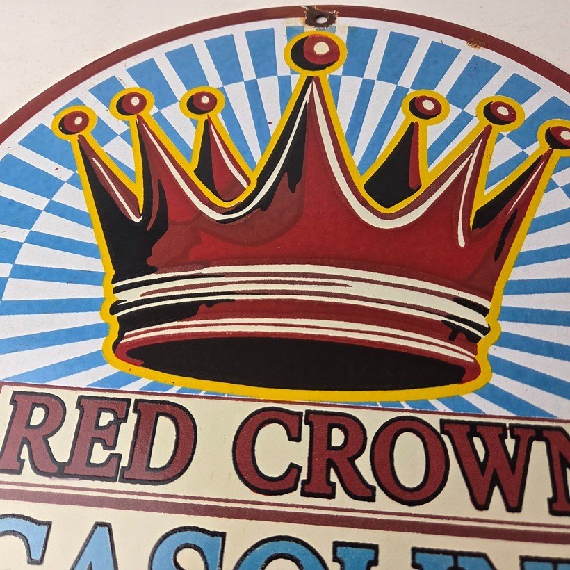 - Vintage Red Crown Gasoline porcelain sign.