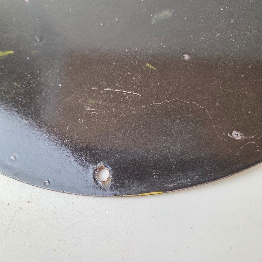This vintage Red Hat Gasoline porcelain sign is a must-have for any collector of gas and oil memorabilia.