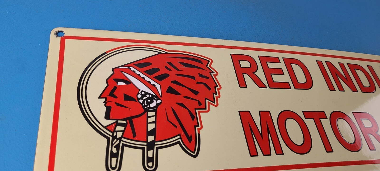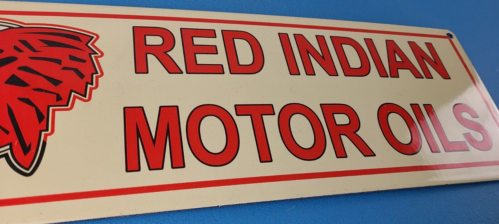 • Vintage Red Indian Gasoline porcelain sign.