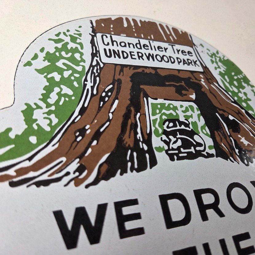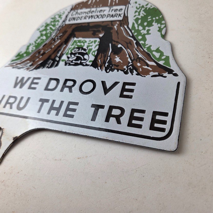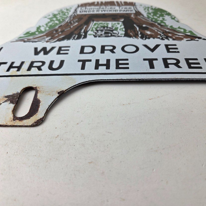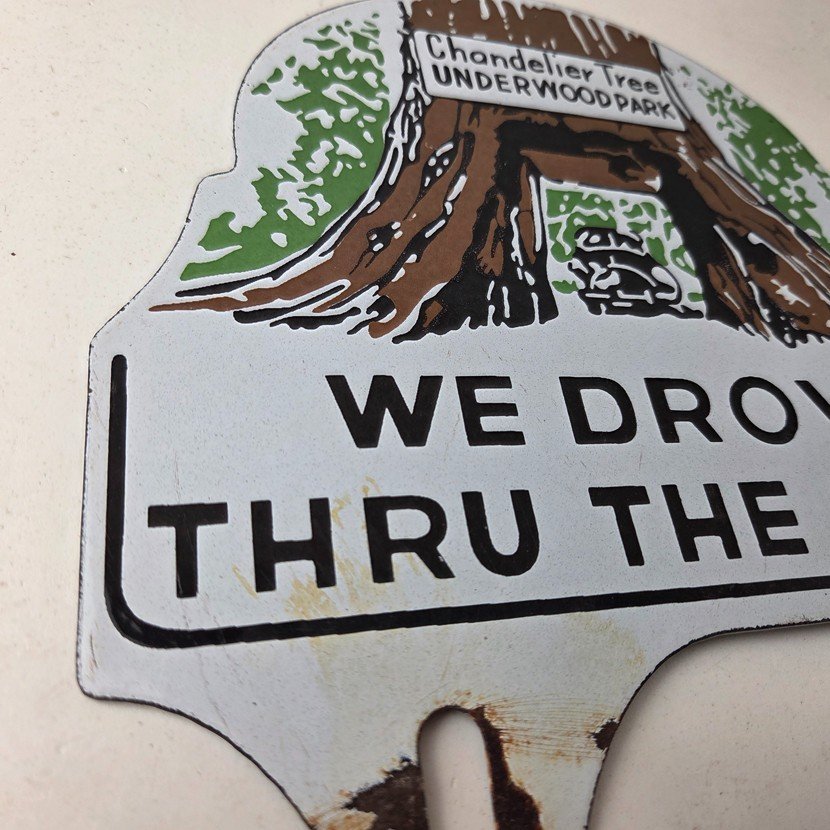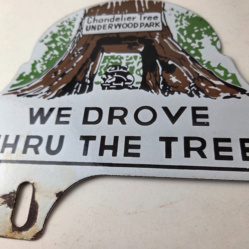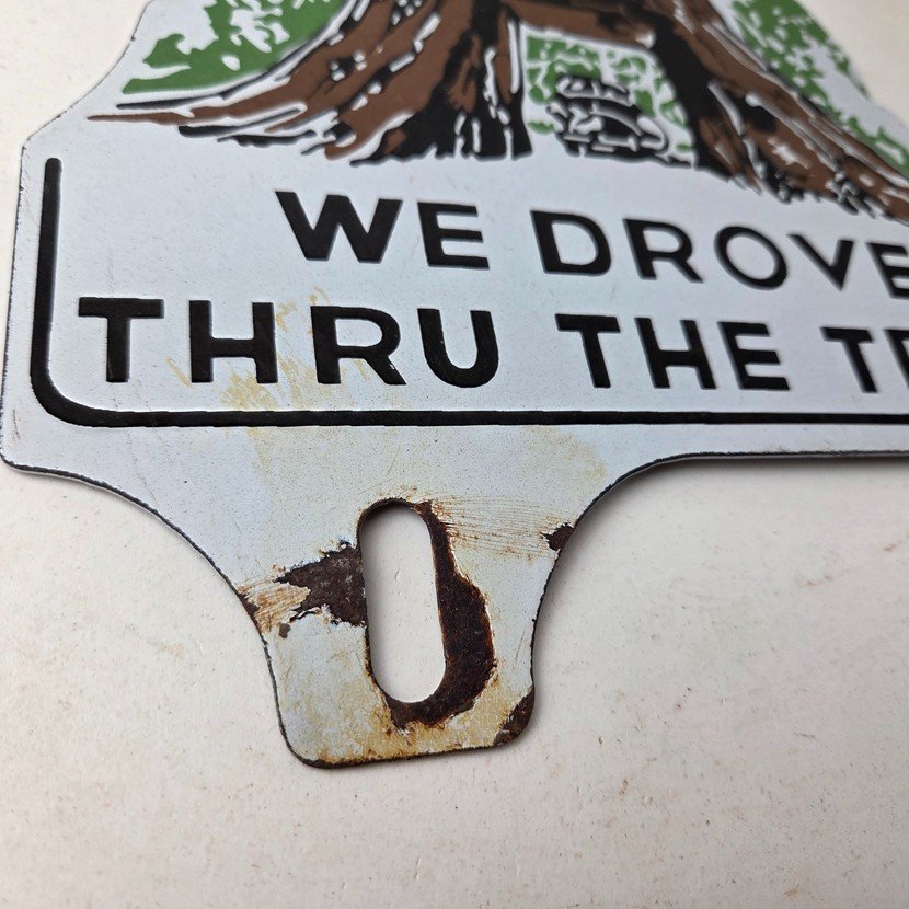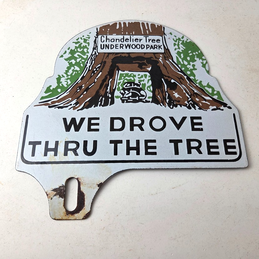 This vintage Redwood Forest US 101 California porcelain license plate topper is a must-have for any collector of gas and oil memorabilia. The 8″ by 8″ porcelain topper features a bold green and brown color with the iconic Redwood tree graphic, making it a great addition to any collection.