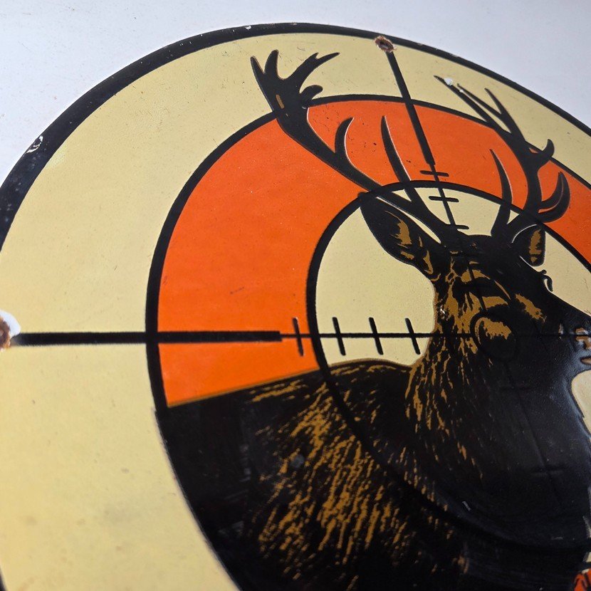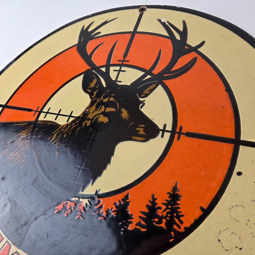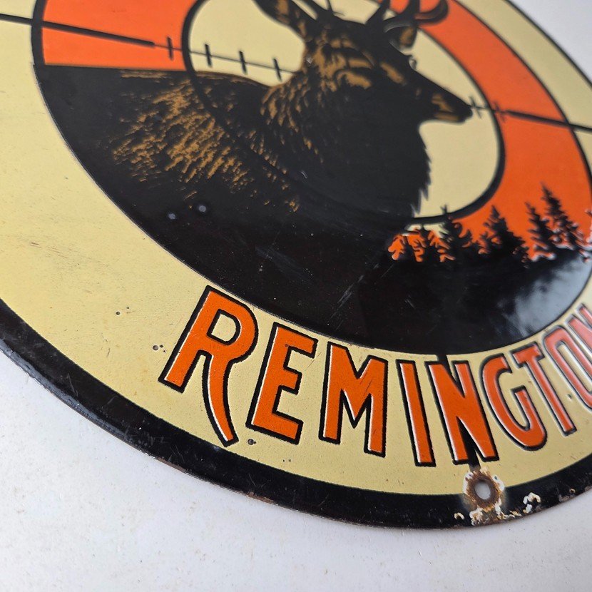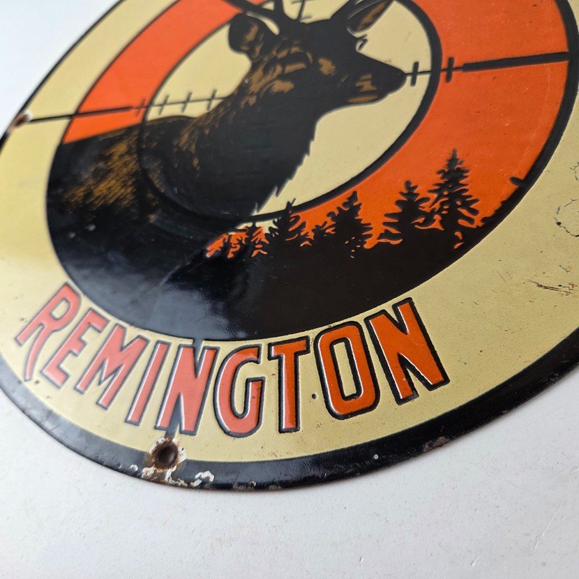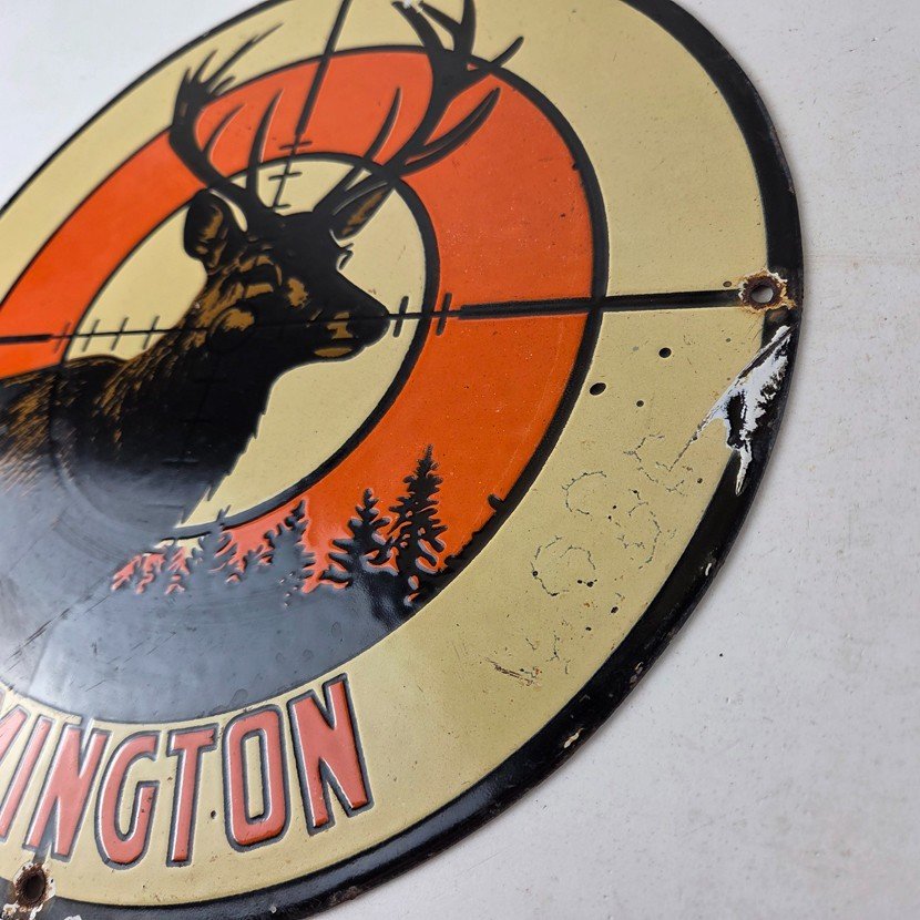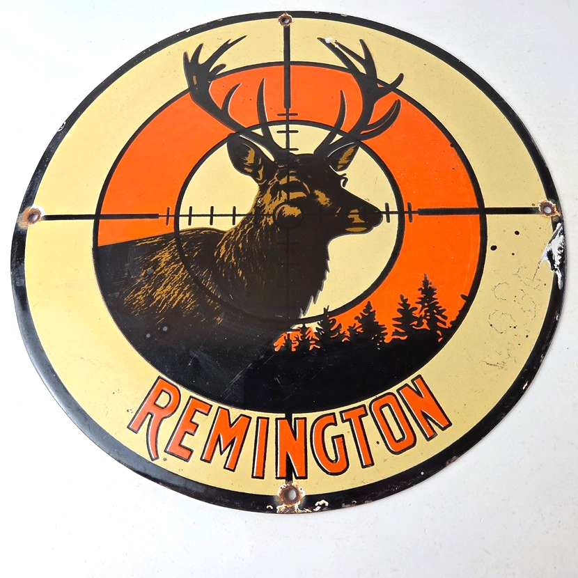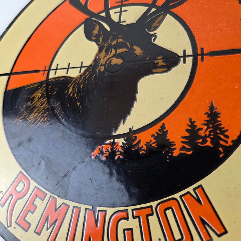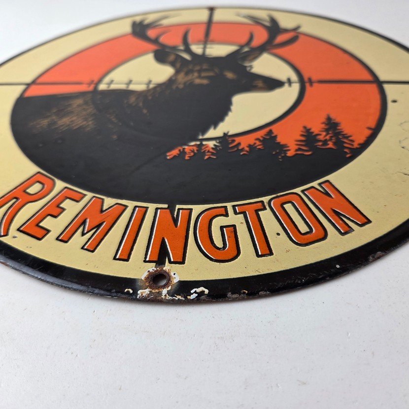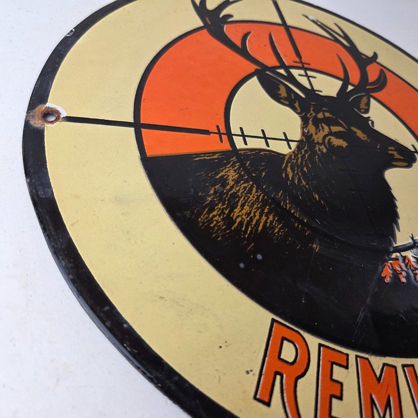 This vintage Remington sign is a must-have for any collector of gas and outdoor sports memorabilia. Made of durable porcelain, it features the iconic Remington lettering and is perfect for displaying in a garage or man cave. Measuring at 12″ inches, it is a great size for display in a service station or man cave. With its excellent colors and classic design this sign is sure to catch the eye of anyone who appreciates Remington advertising. Whether you’re a fan of shotguns, rifles or Ammo, this Remington gas service pump plate is a great addition to any collection.