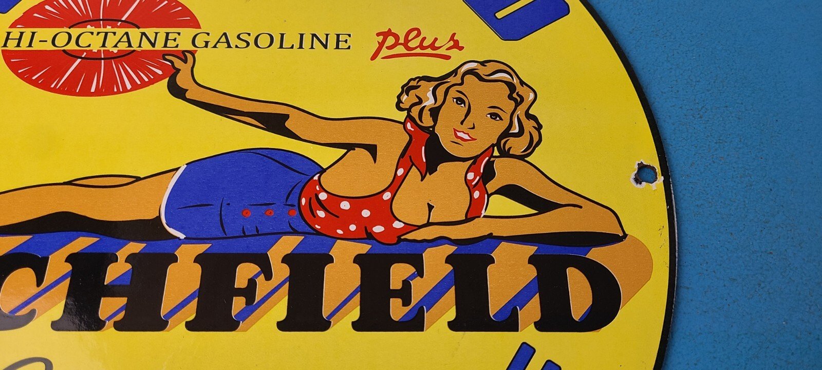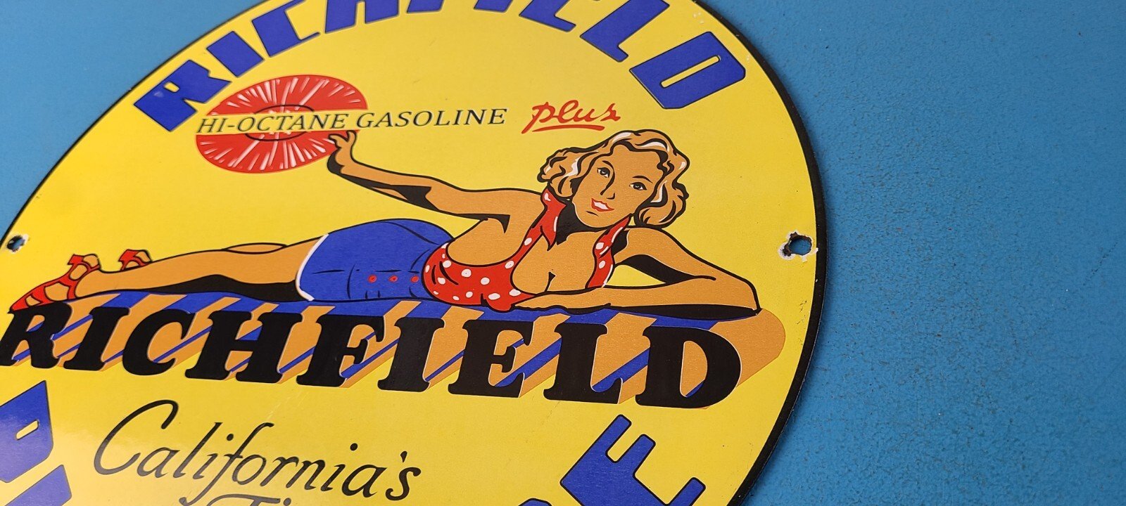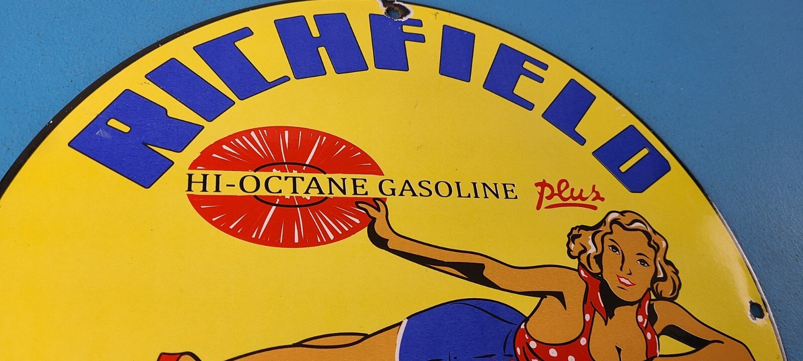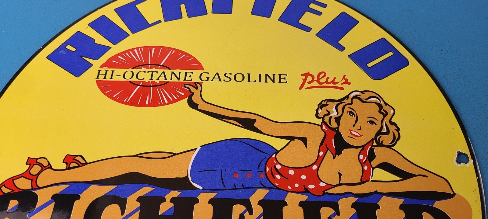 For sale is a vintage Richfield Gasoline porcelain Richlube, gas service station & motor oil sign. This sign has excellent colors and gloss. Sign measures 11 3/4″. Check out my other auctions, and feel free to ask questions. Perfect for gas collectors, automobile enthusiasts, sign collection, man cave, restaurant, bar, garage, displays anywhere. See my other gas & motor oil, aviation, automotive, soda & beverage signs. $10 for shipping anywhere in the U.S. with Priority Mail. Shipping will be $5.00 for each additional item! Thank you!