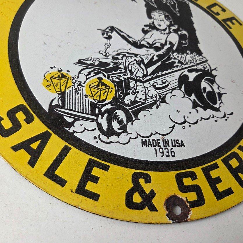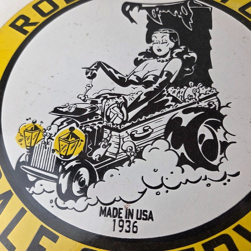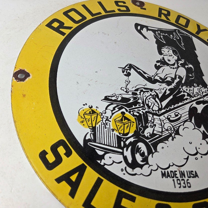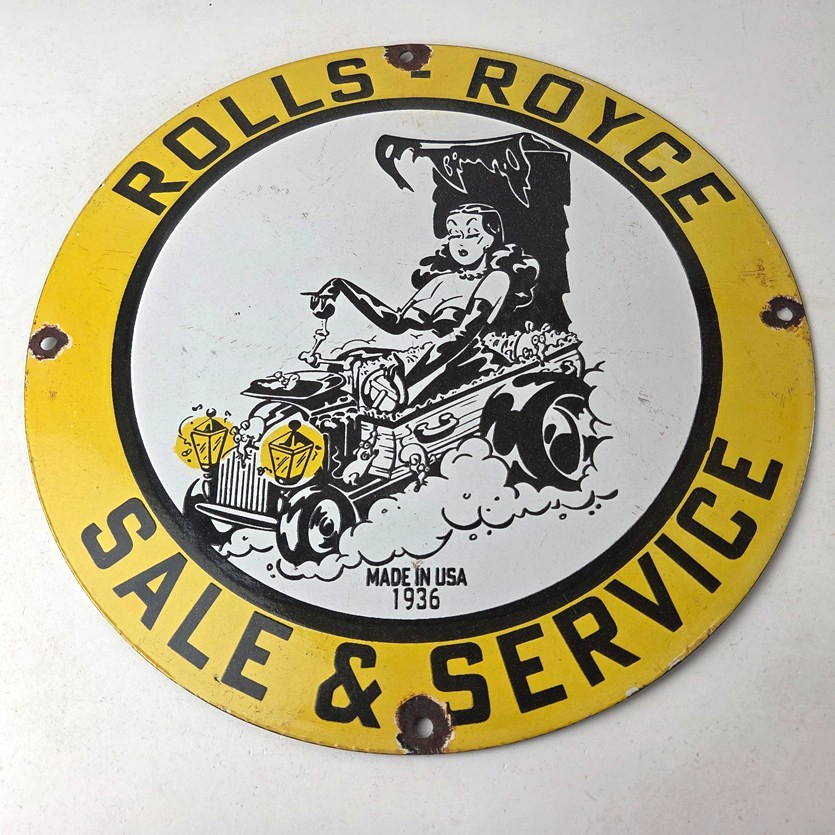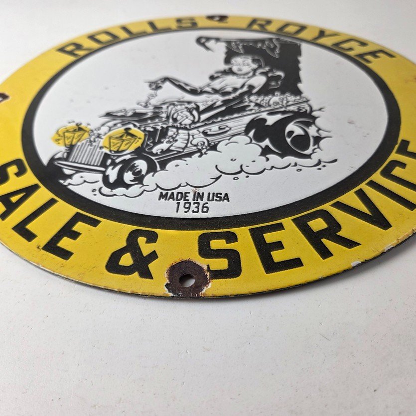This vintage Rolls Royce Automobiles porcelain sign is a must-have for any collector or enthusiast of automobile memorabilia. The sign features the iconic graphic in the center, making it a unique addition to any gas and oil themed collection. Made of porcelain, this dealership sales sign is durable and measures 12″.