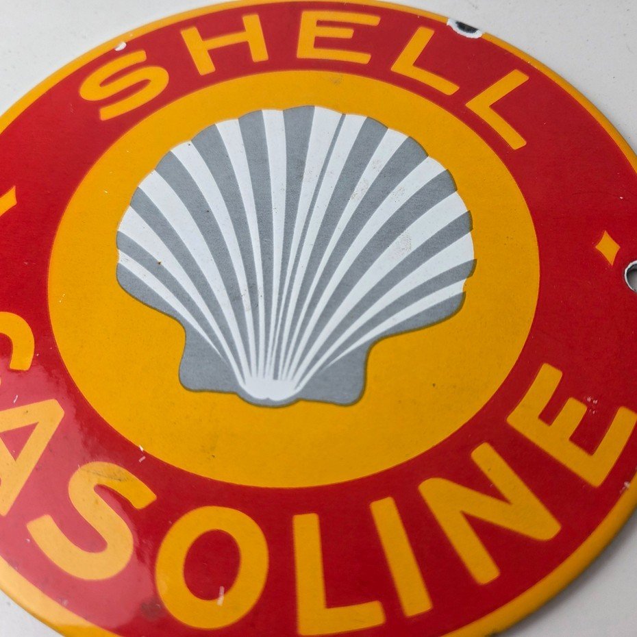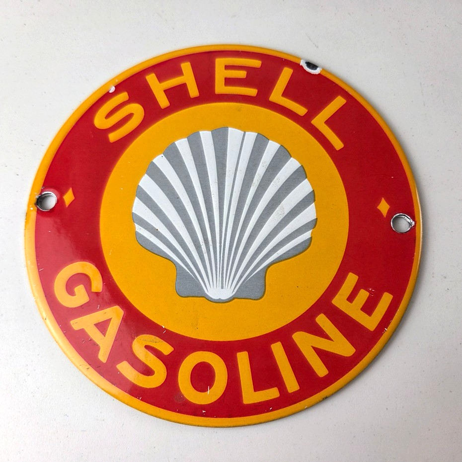 - Vintage Shell Gasoline porcelain sign.
