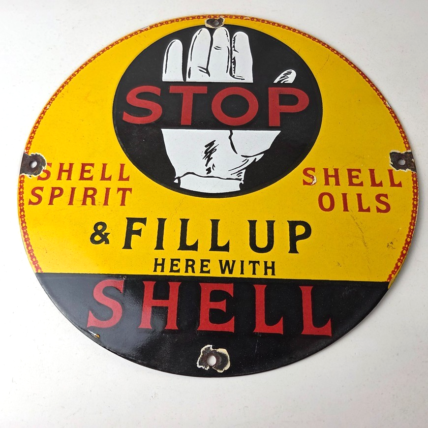 - Vintage Shell Gasoline porcelain sign.