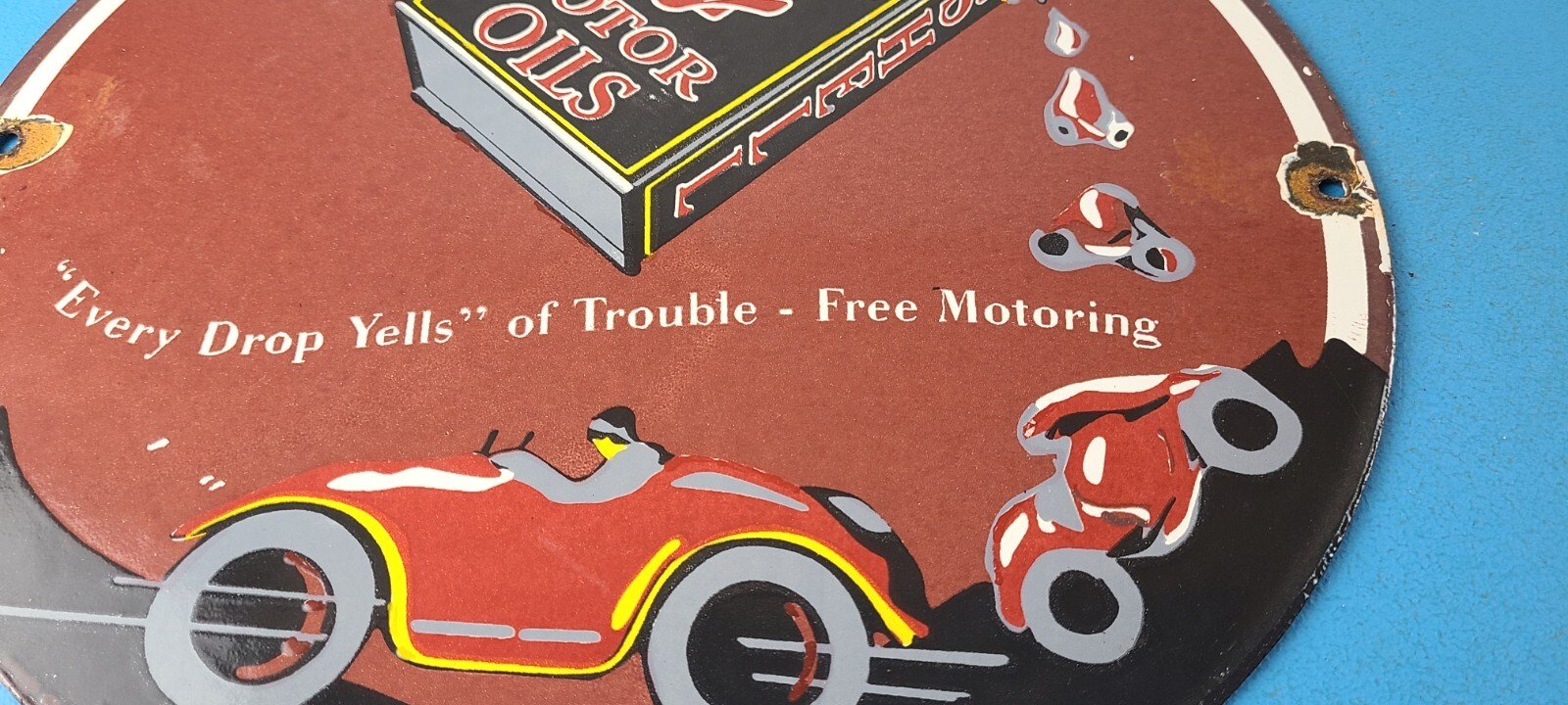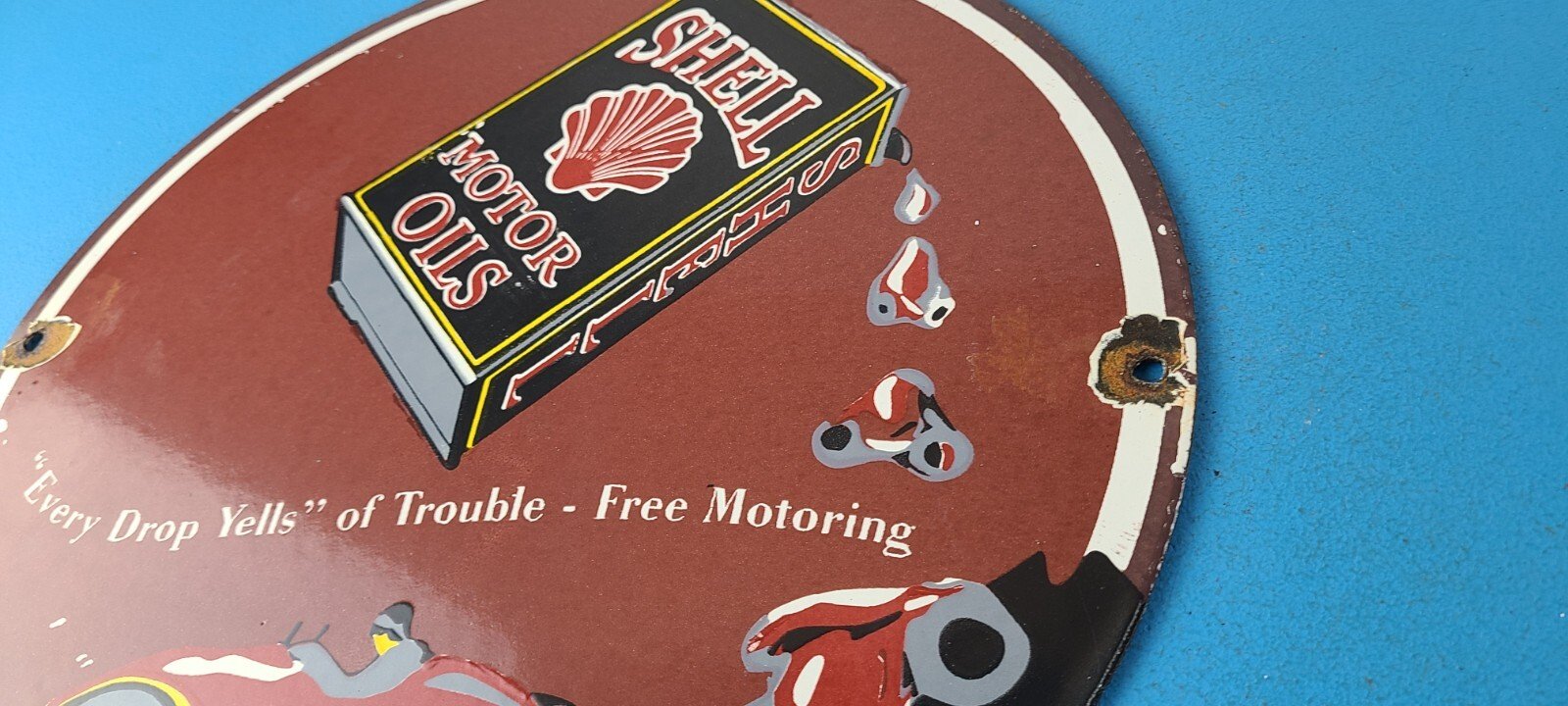 Vintage Shell Gasoline Sign – Free Motoring Gas Oil Pump Plate Porcelain Sign