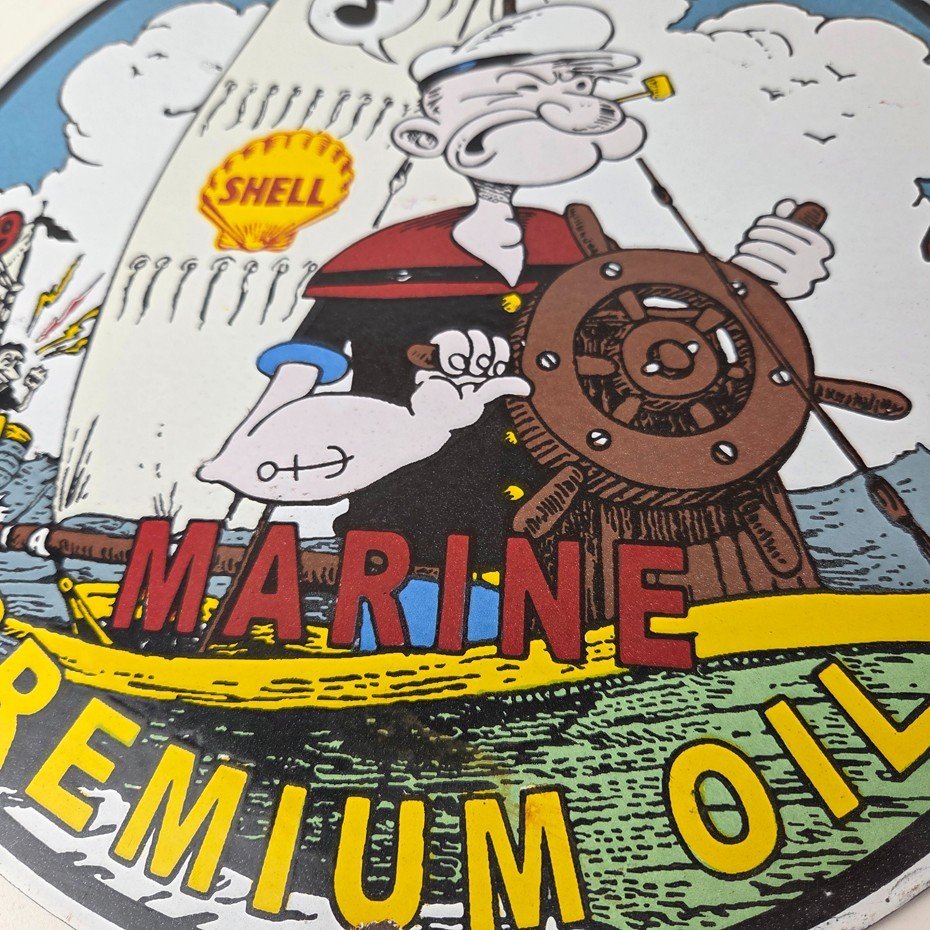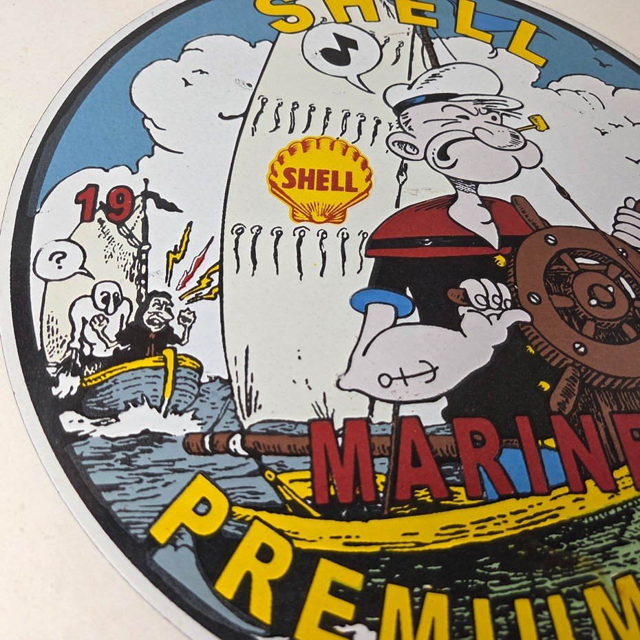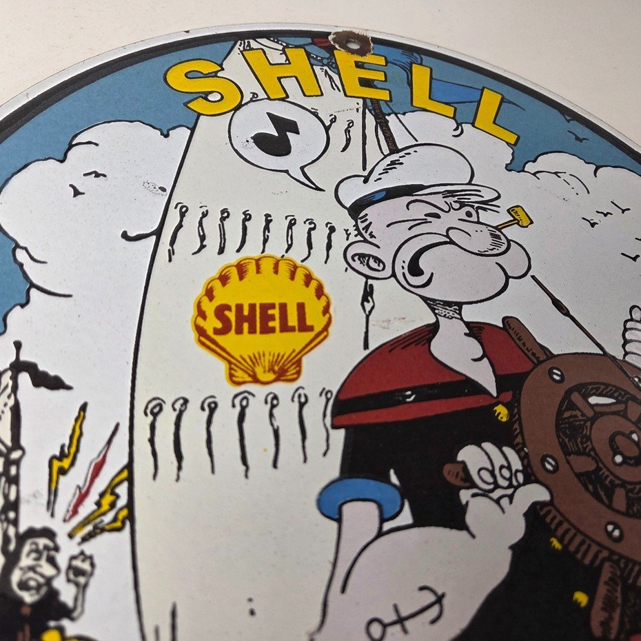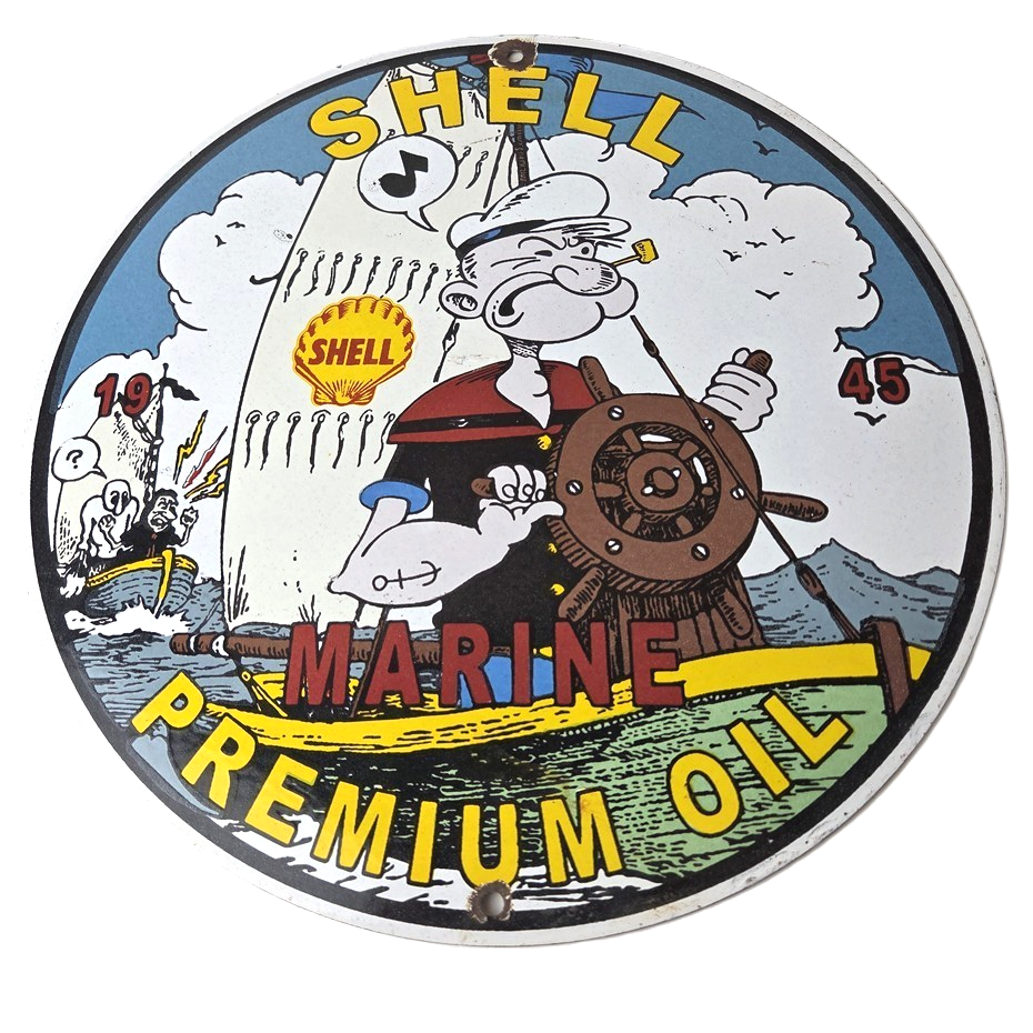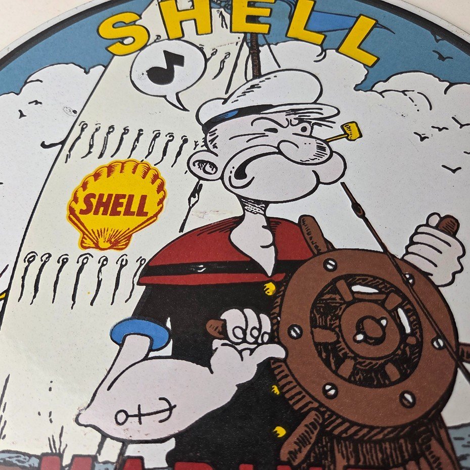 Vintage Shell Gasoline Sign – Popeye Comic Gas Service Station Porcelain Sign