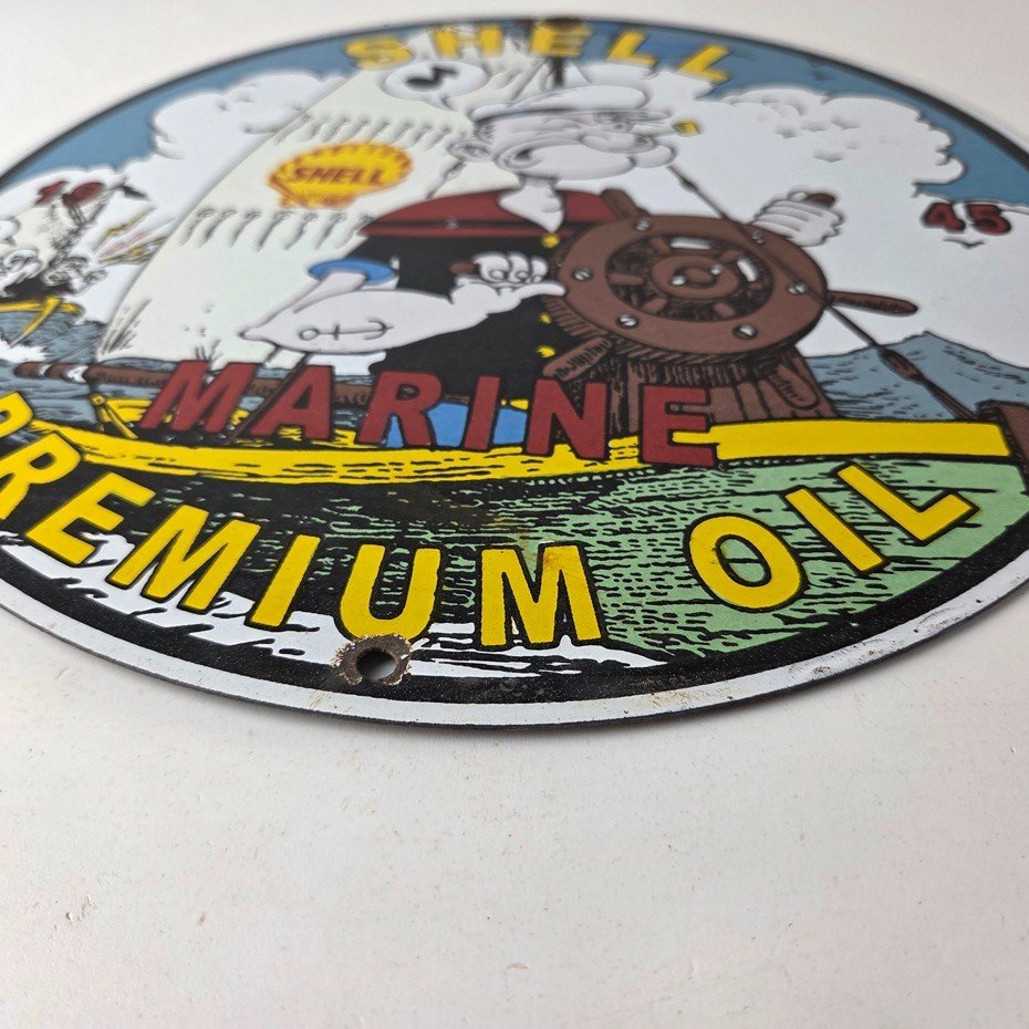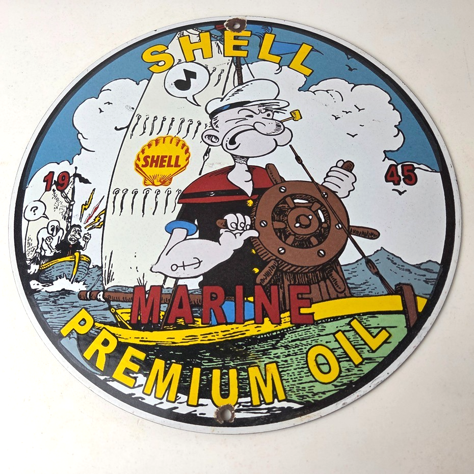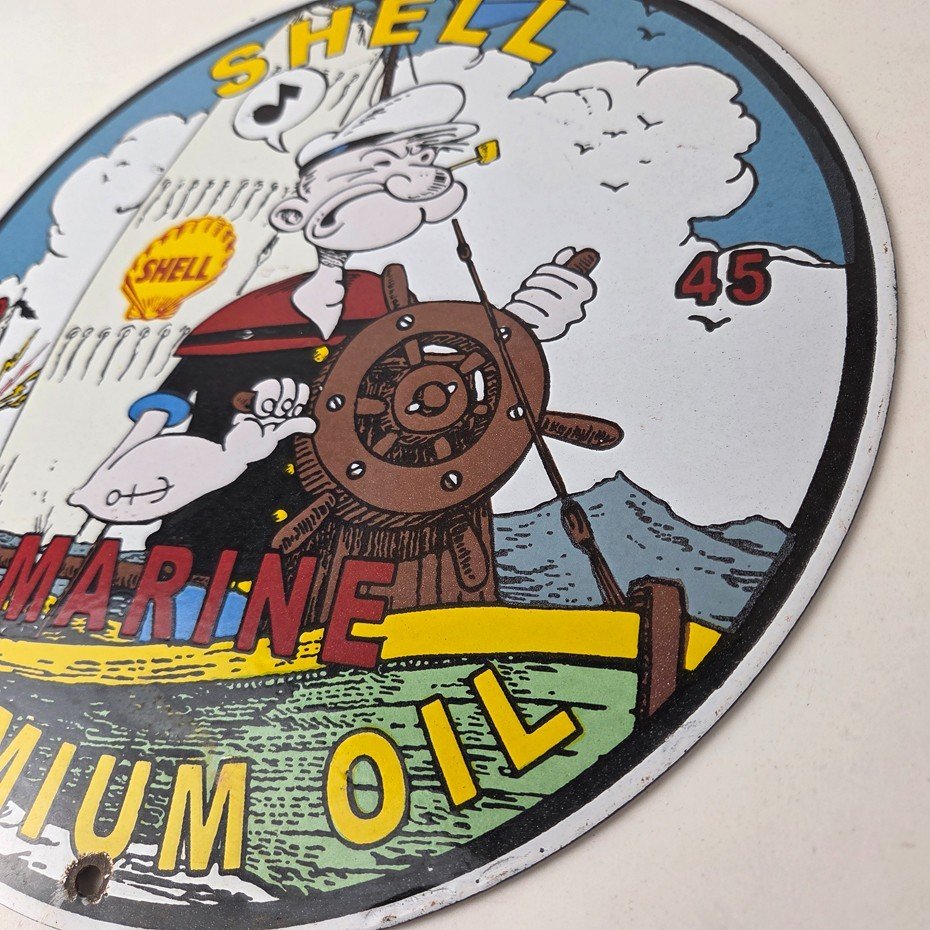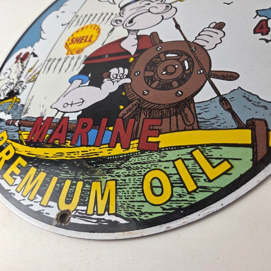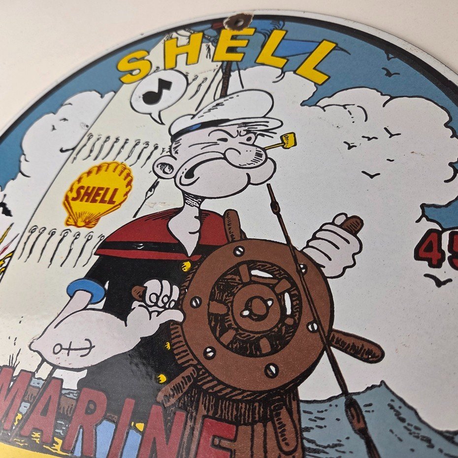Vintage Shell Gasoline Sign – Popeye Comic Gas Service Station Porcelain Sign