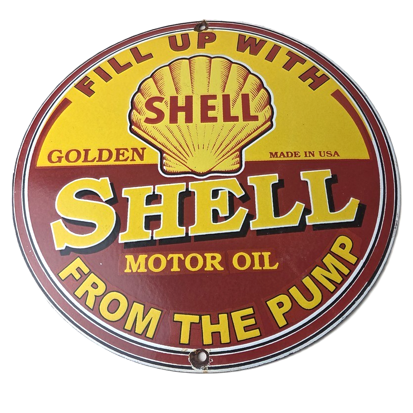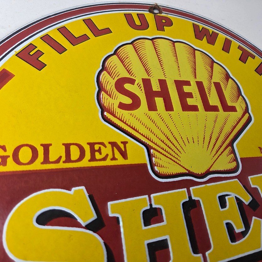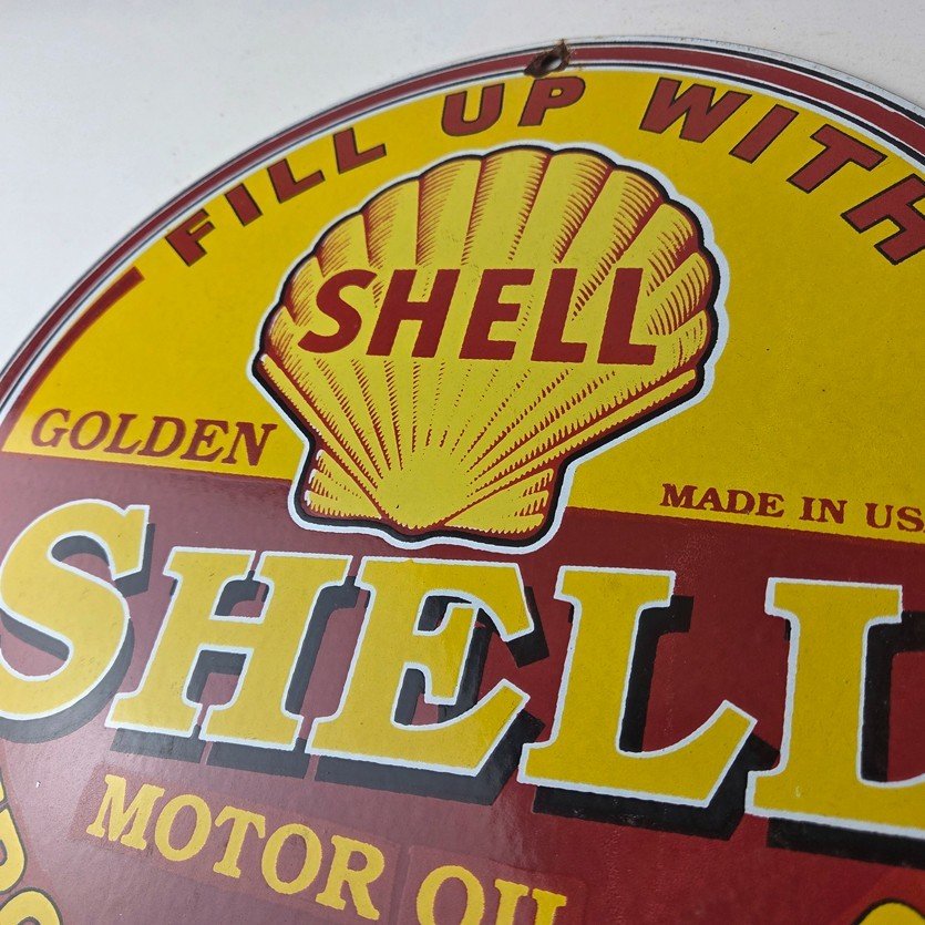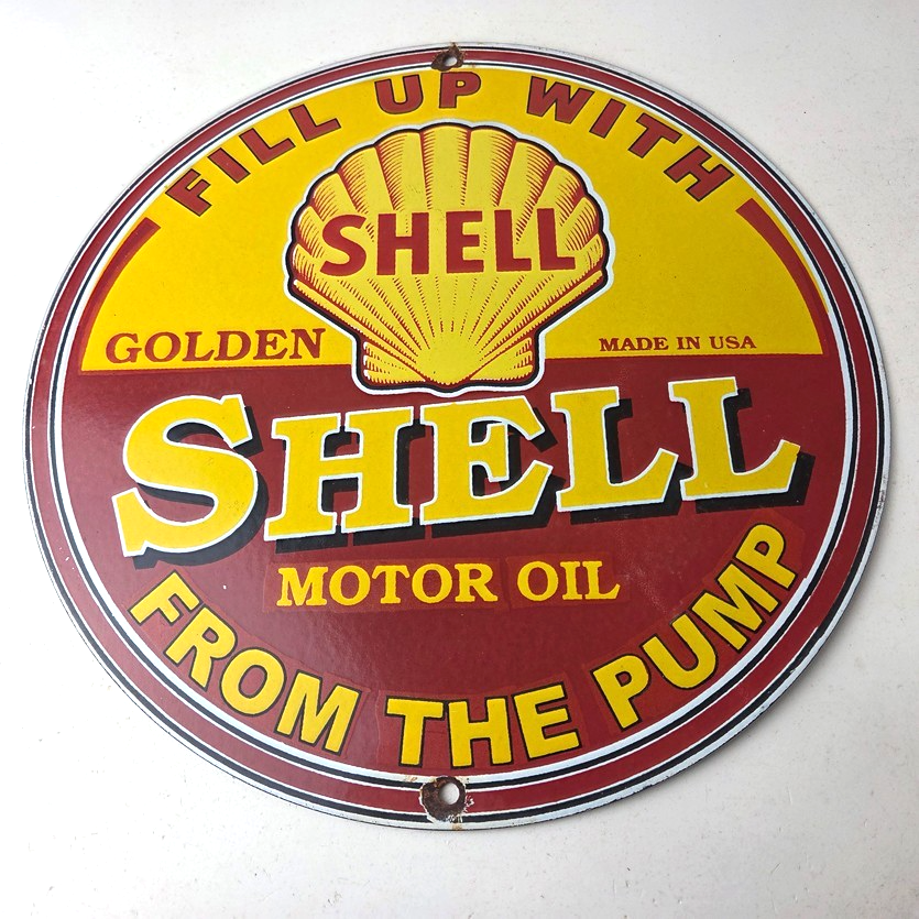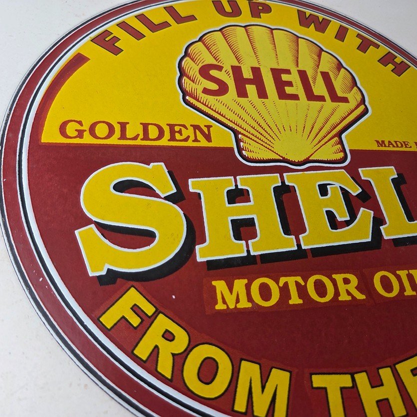 Vintage Shell Golden Gasoline Sign – Gas Pump Station Porcelain Advertising Sign